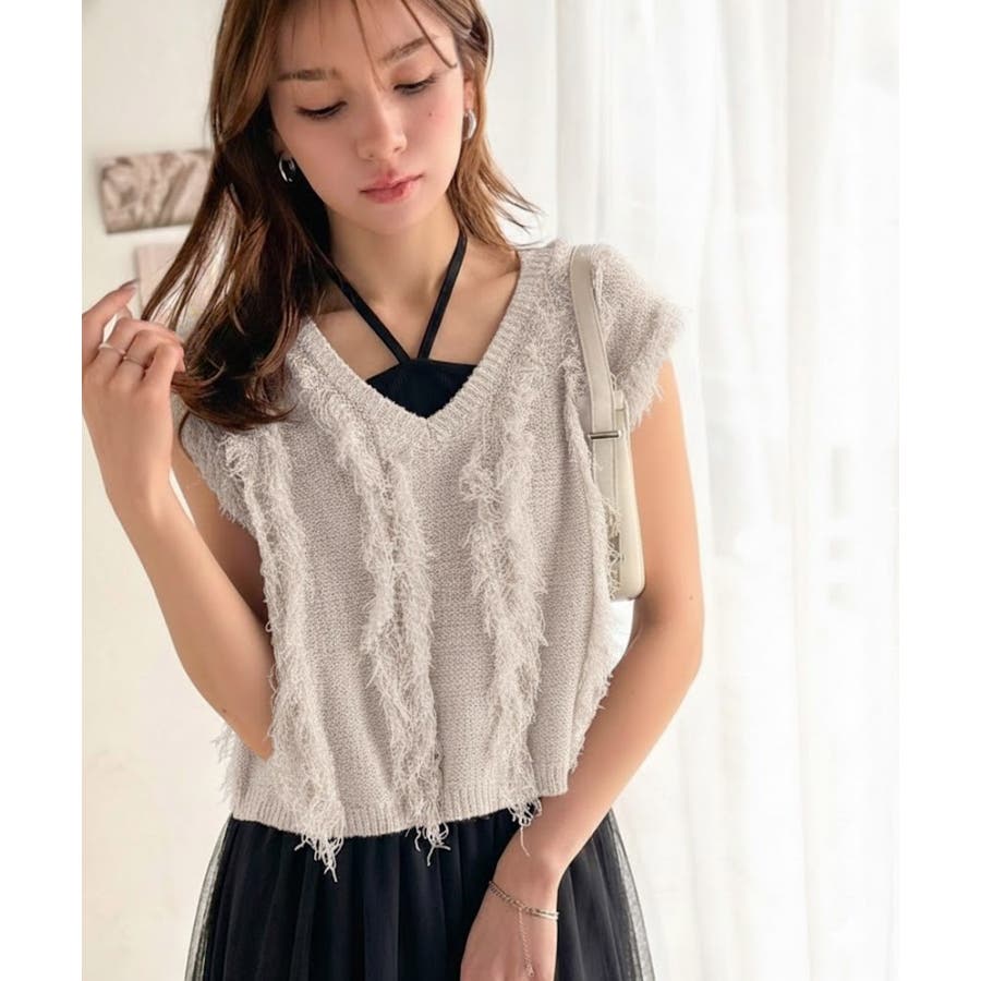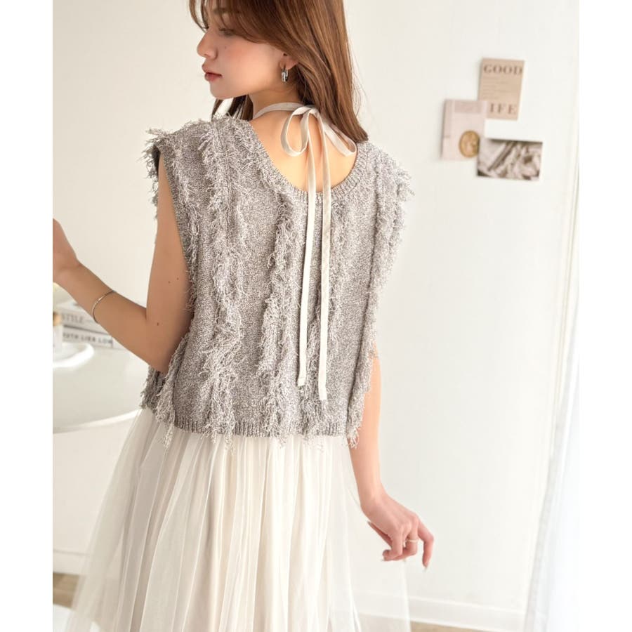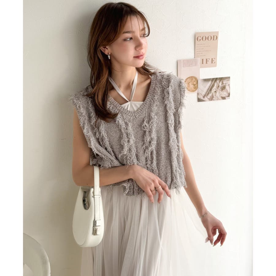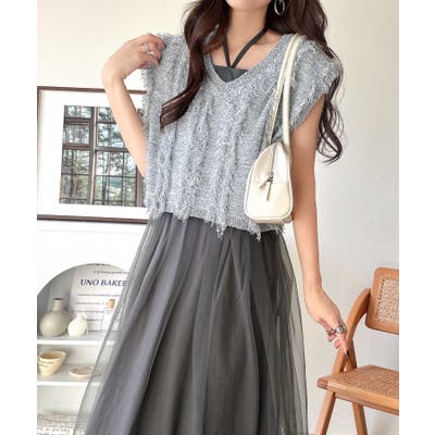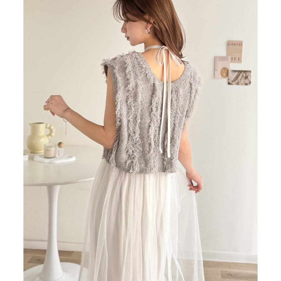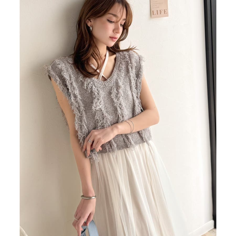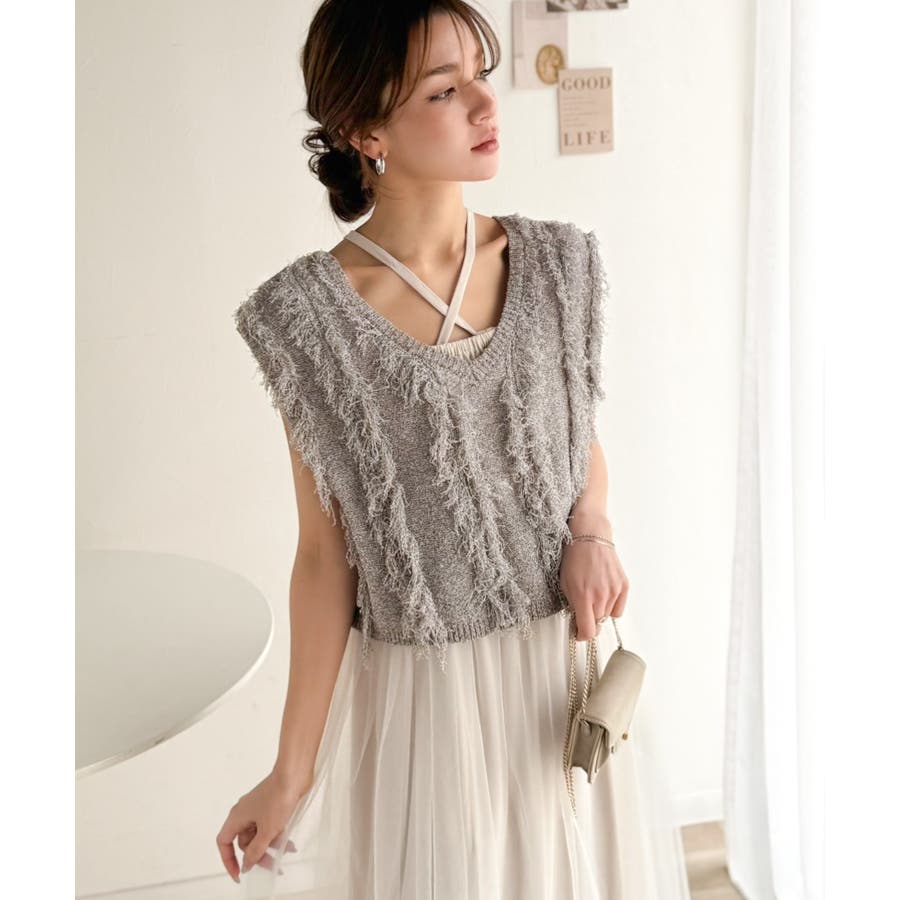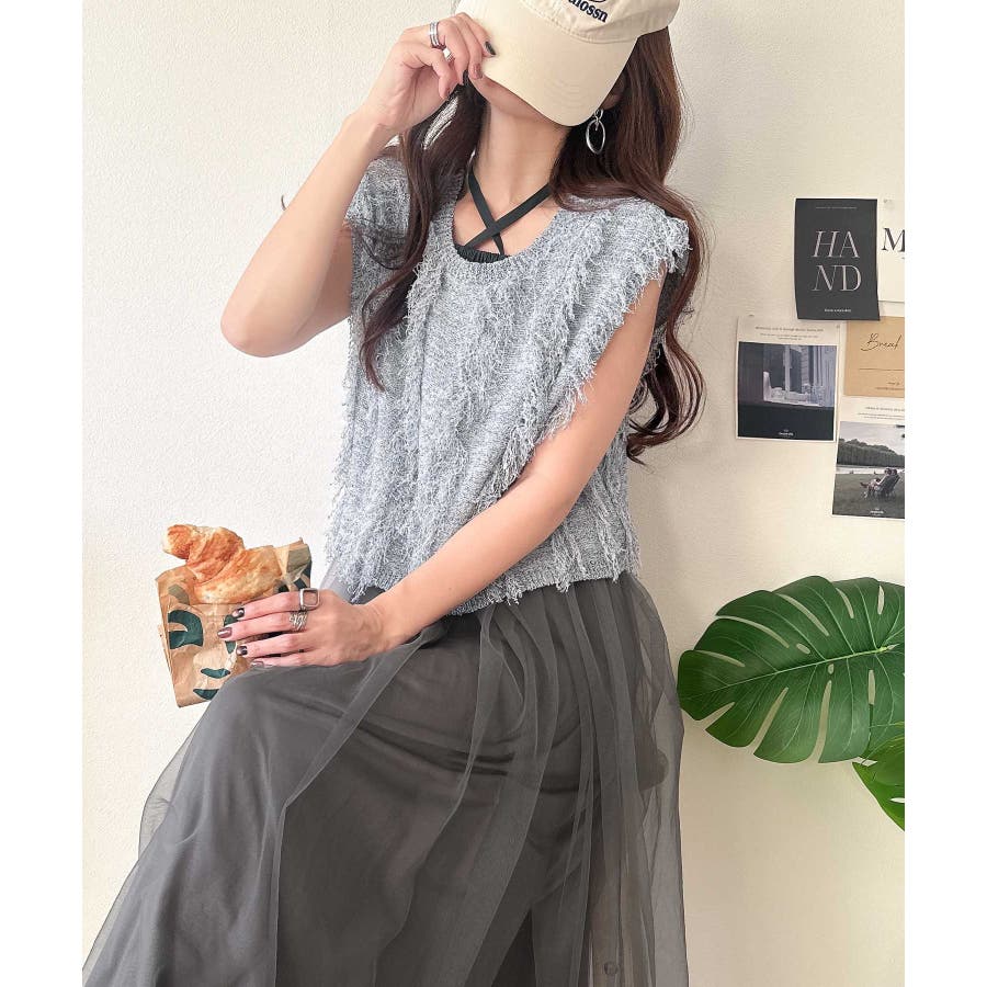 フリンジニット×フレアチュールの華やかセットアイテム。