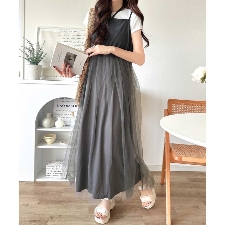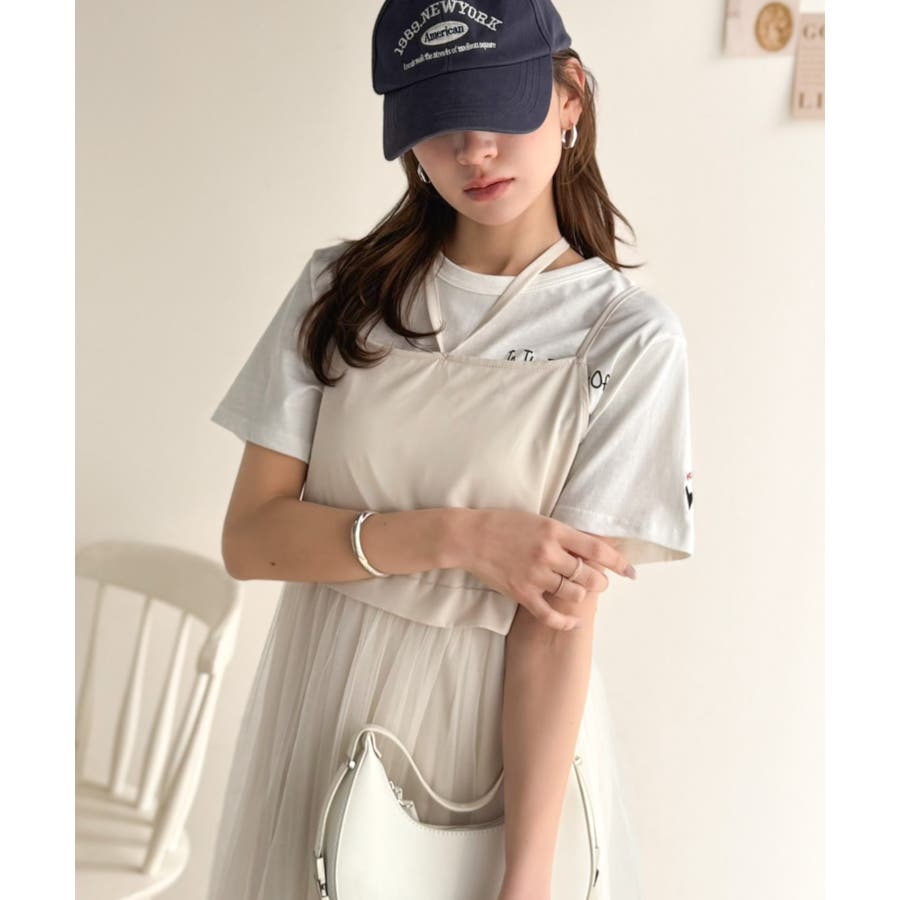 キャミワンピースは中にTシャツを合わせて休日カジュアルコーデにも