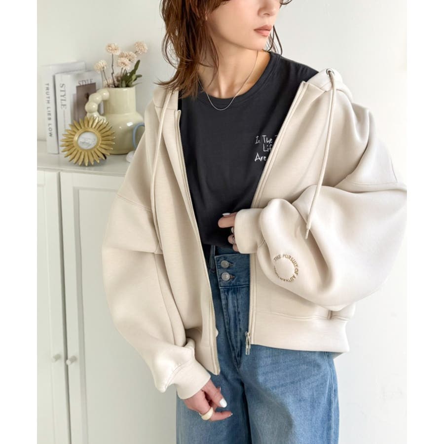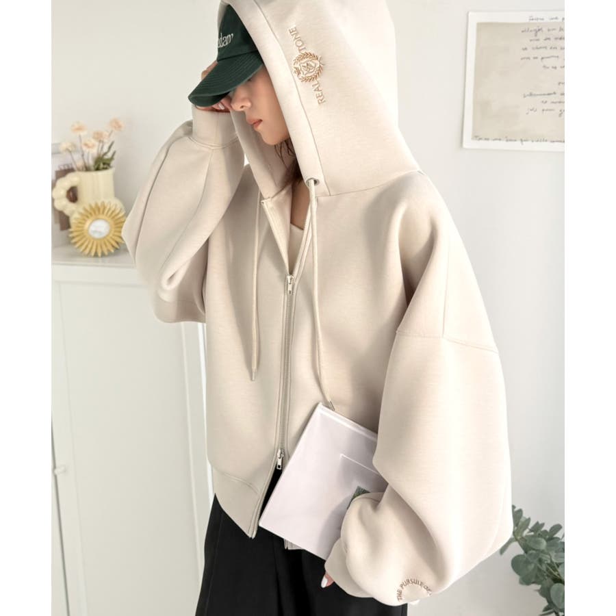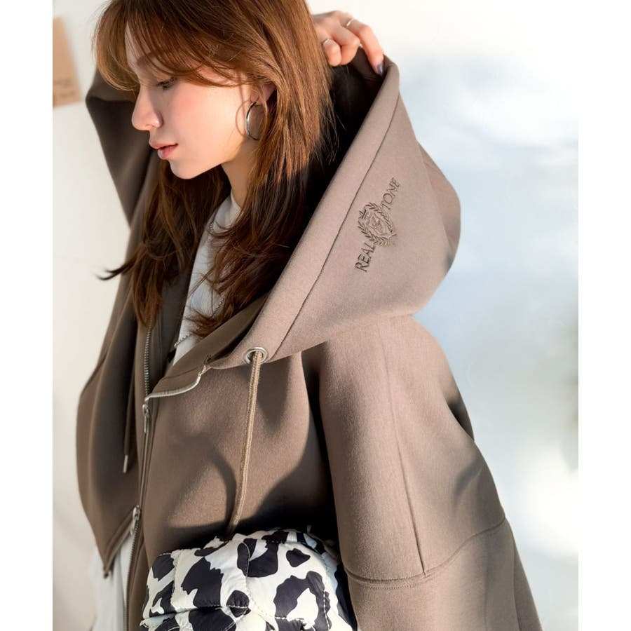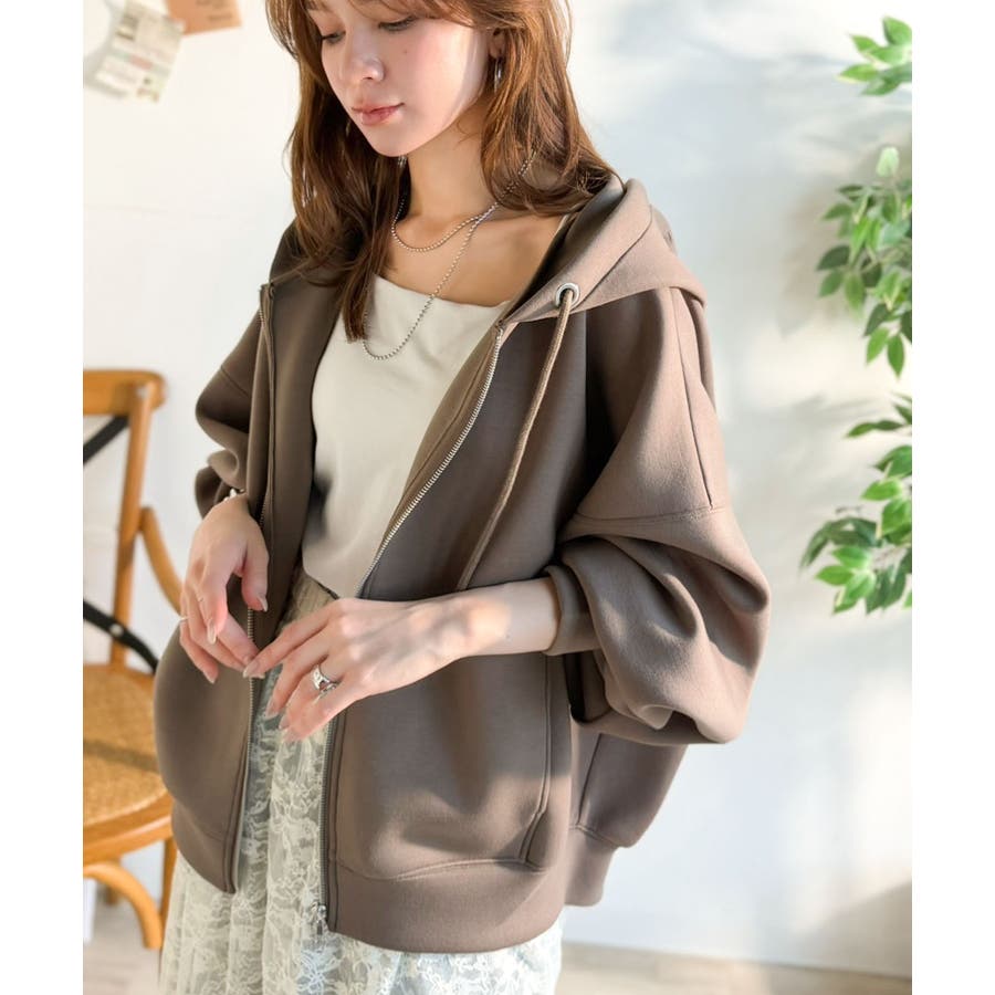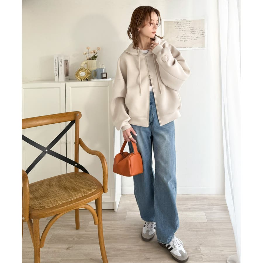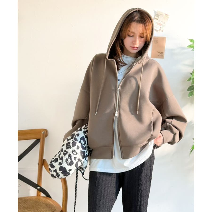 程よいハリ感と上品さのクロップドワイドダンボールパーカー。
