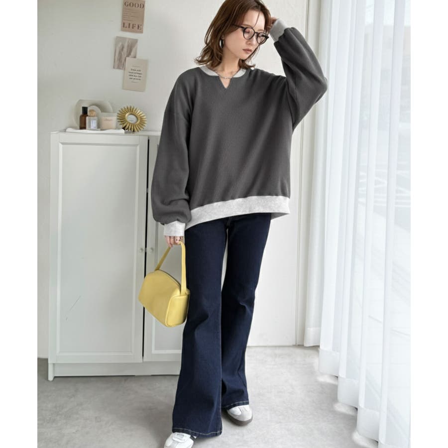 今っぽさは、色でつくる。オーバーサイズ配色ワッフルプルオーバー