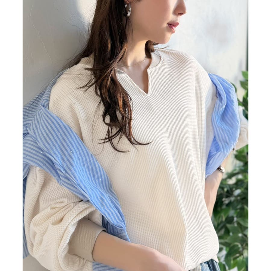 柔らかな風合いとエッジの効いた配色が魅力のワッフルトップス。