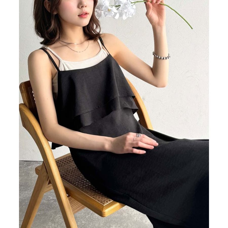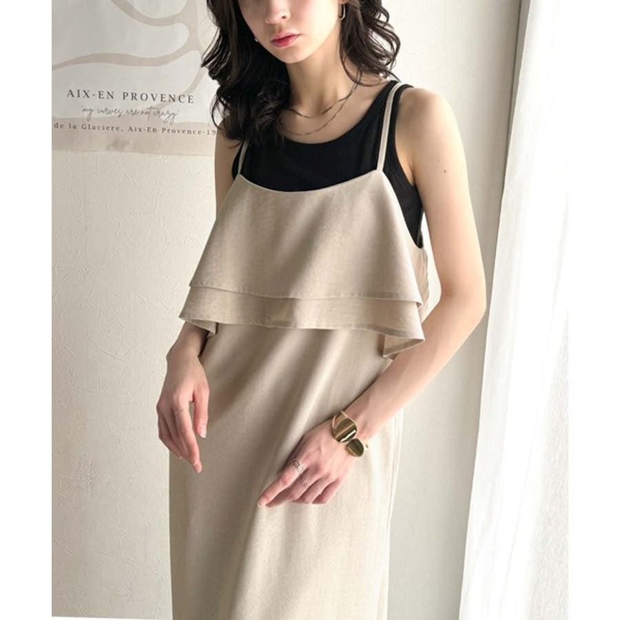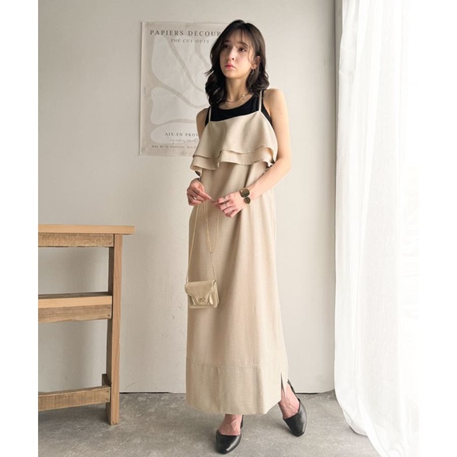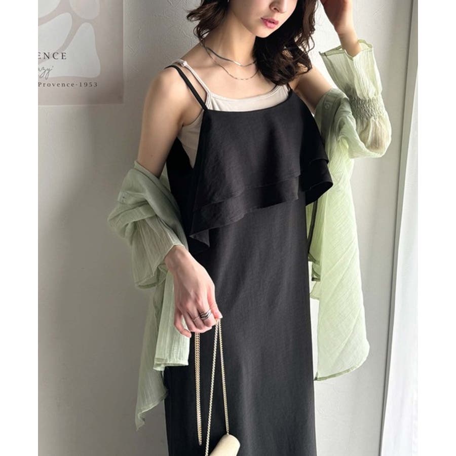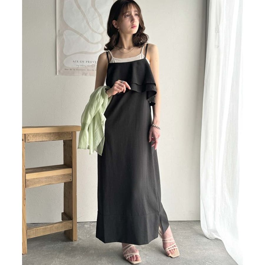 上品シルエットが大人可愛い。ダブルフリルキャミワンピース(ロング丈)