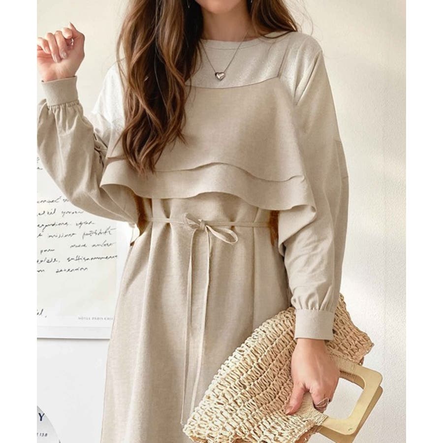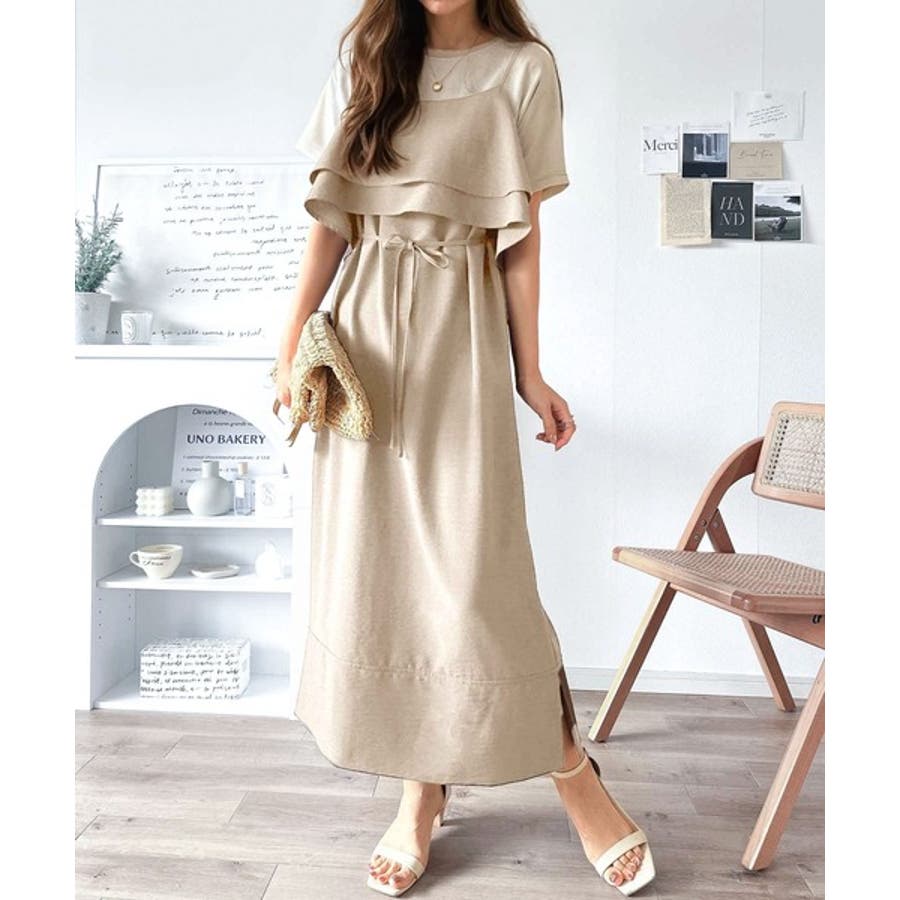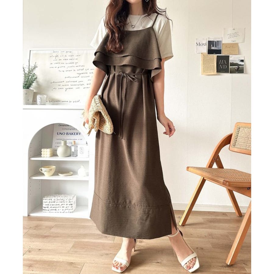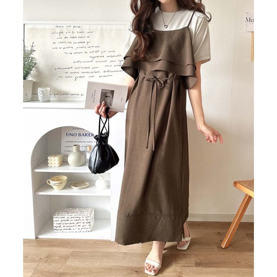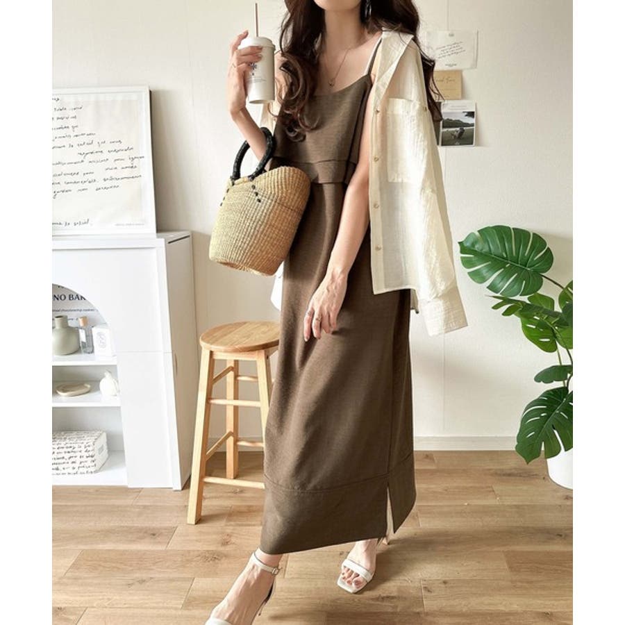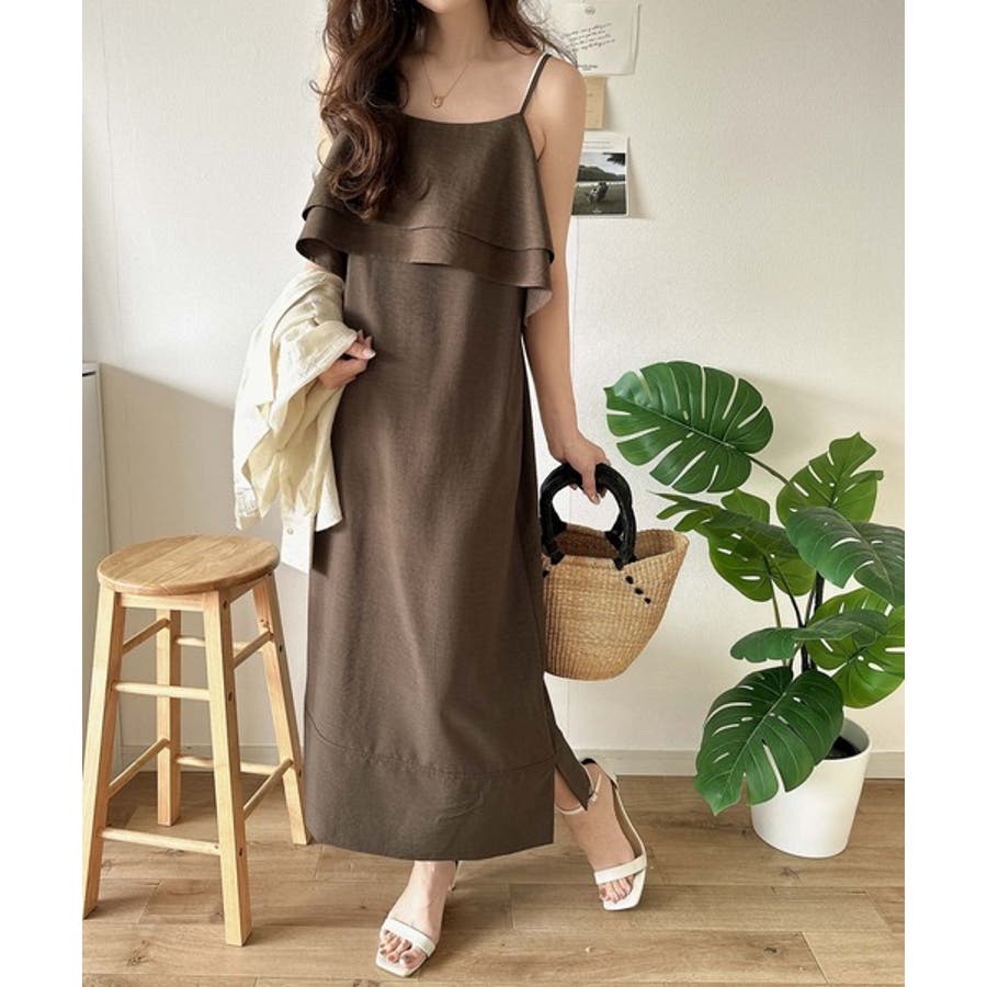 上品シルエットが大人可愛い。ダブルフリルキャミワンピース(ロング丈)