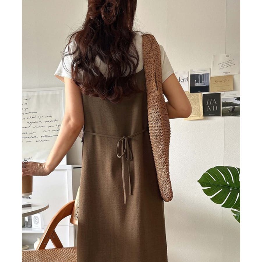 ウエストのヒモでウエストラインを絞ってより女性らしい雰囲気に。