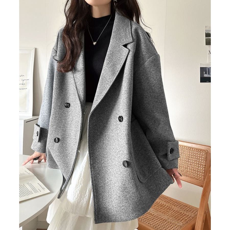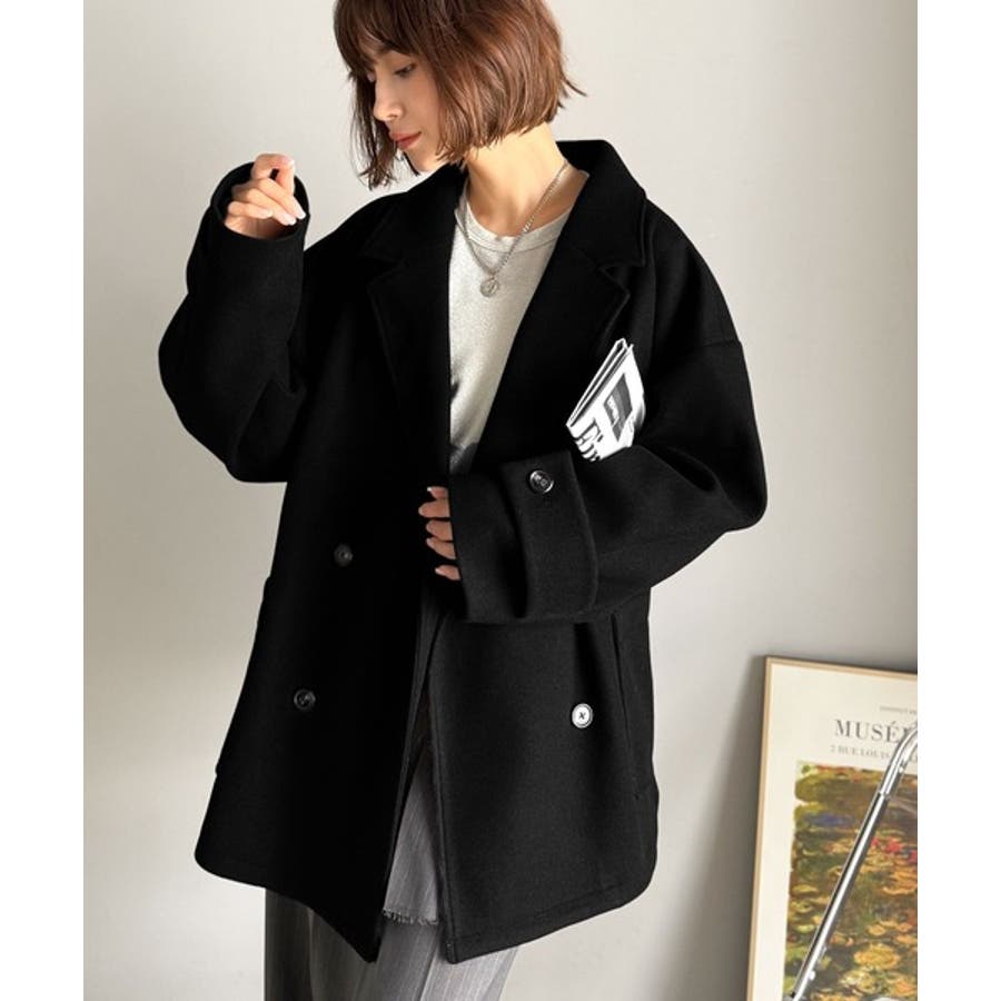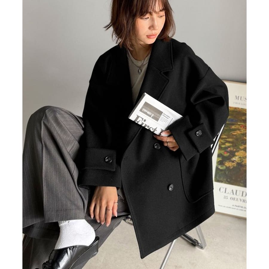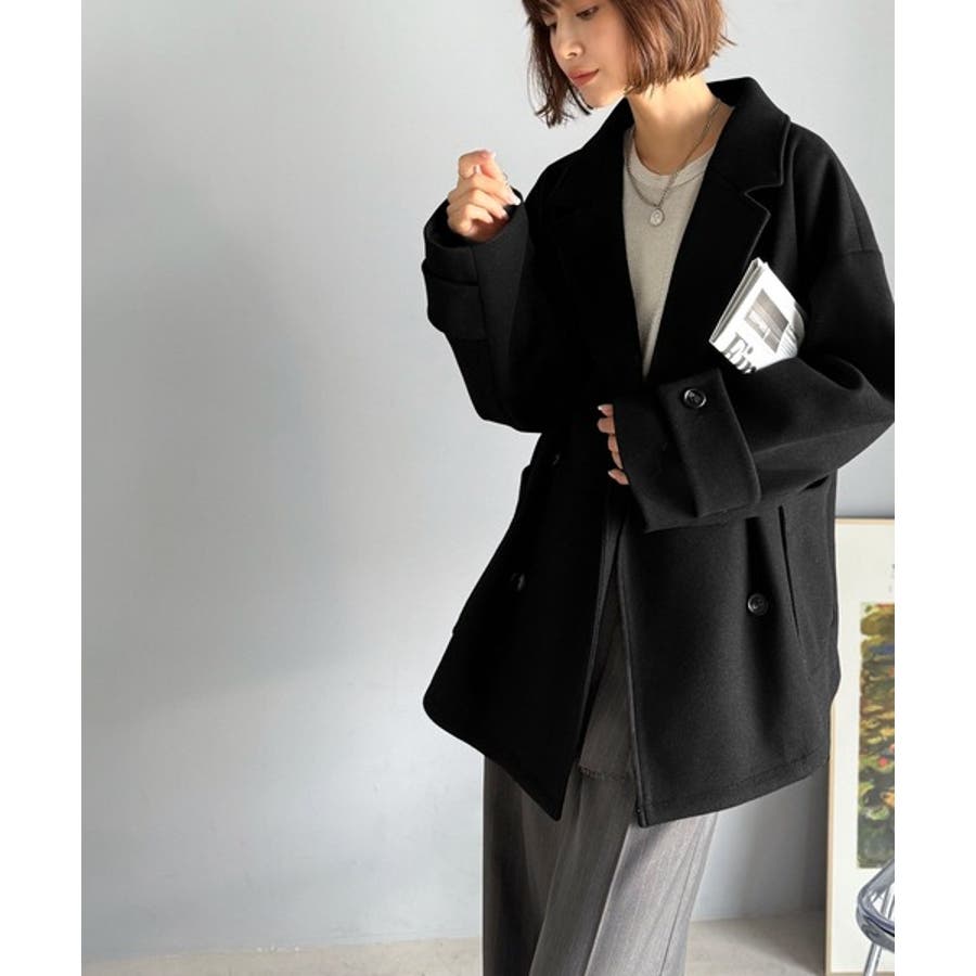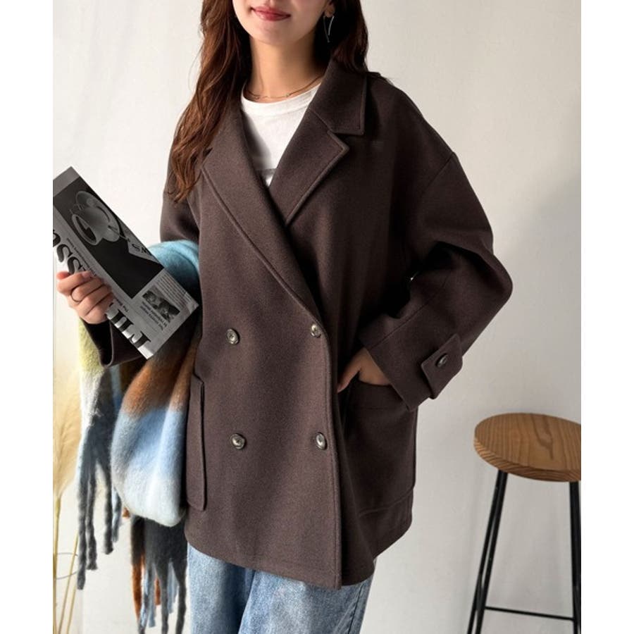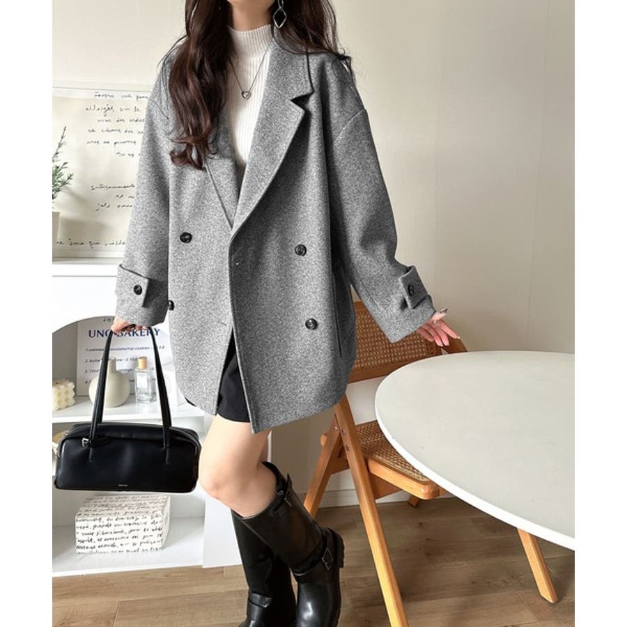 トレンドを先取り♪こなれ感UP、ダブルボタンジャケットメルトンコート(ミドル丈)