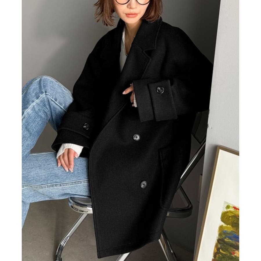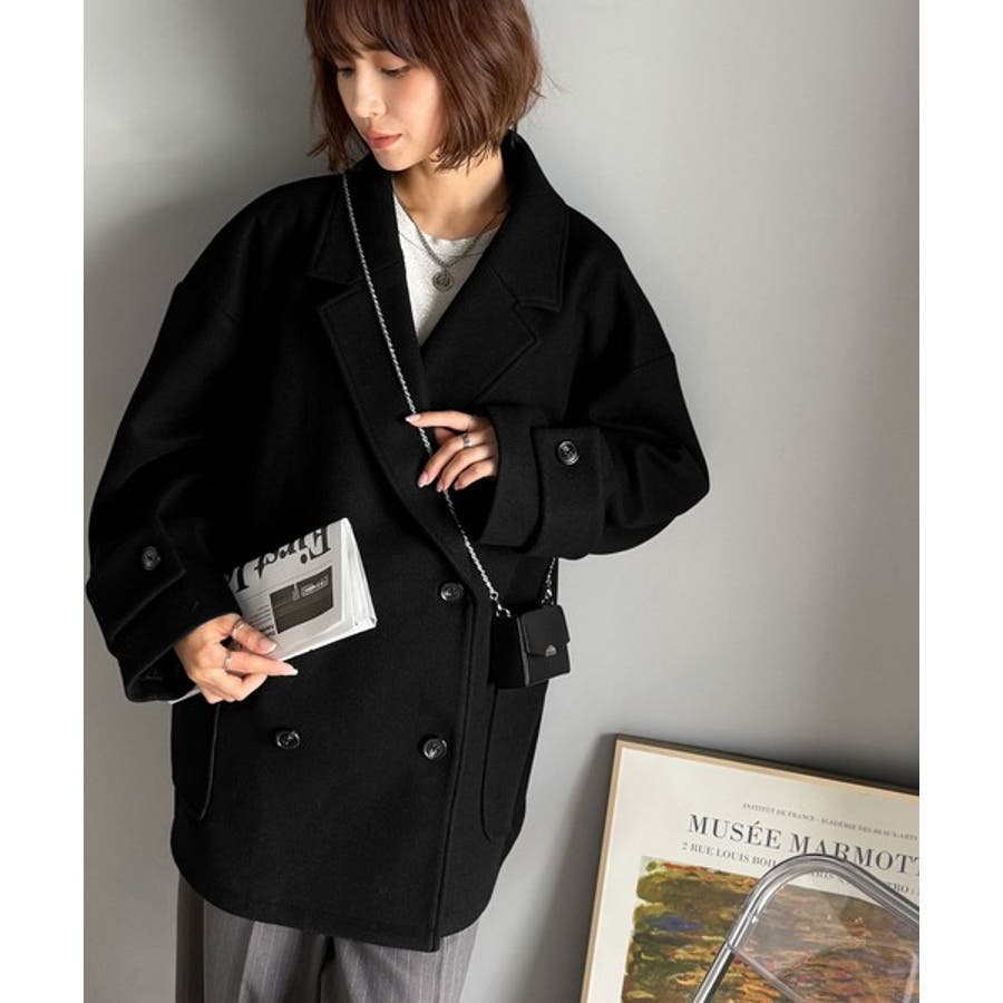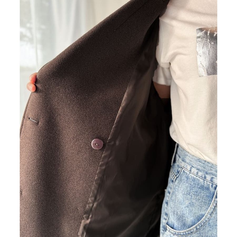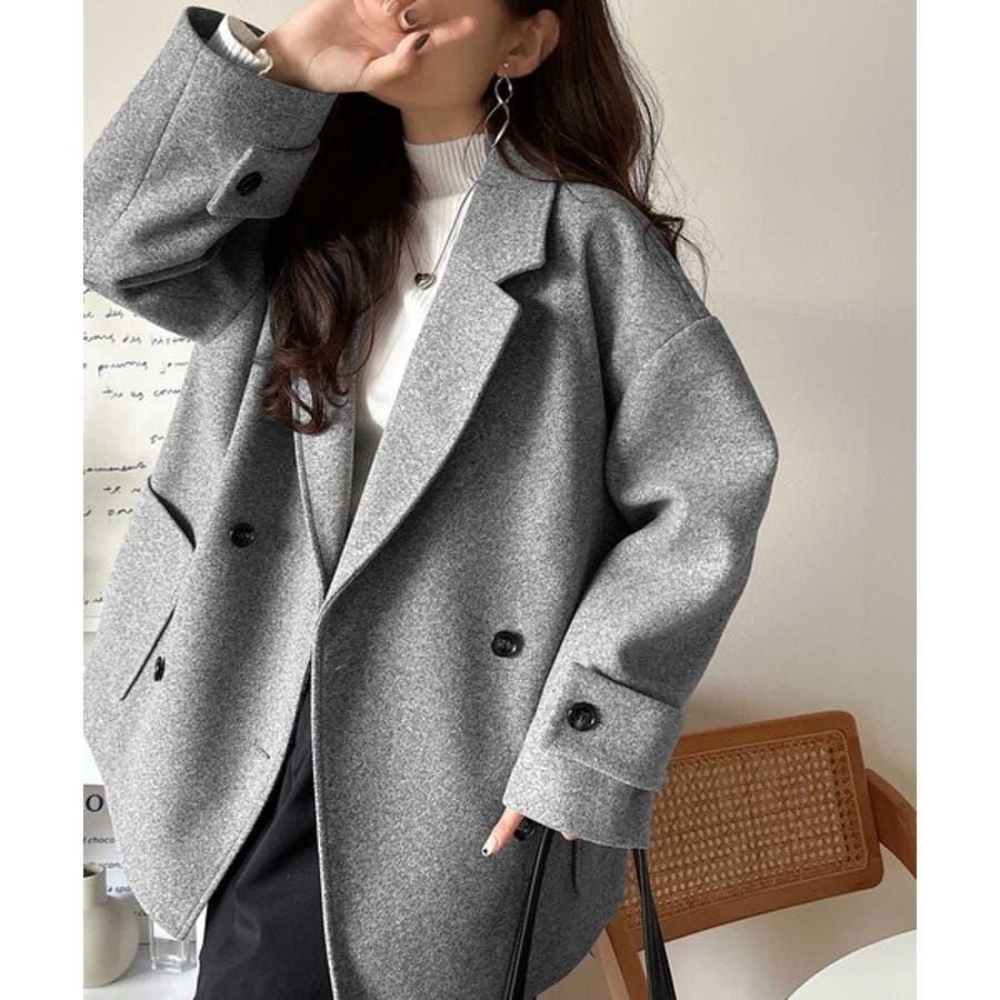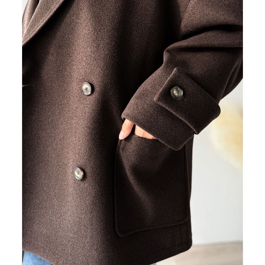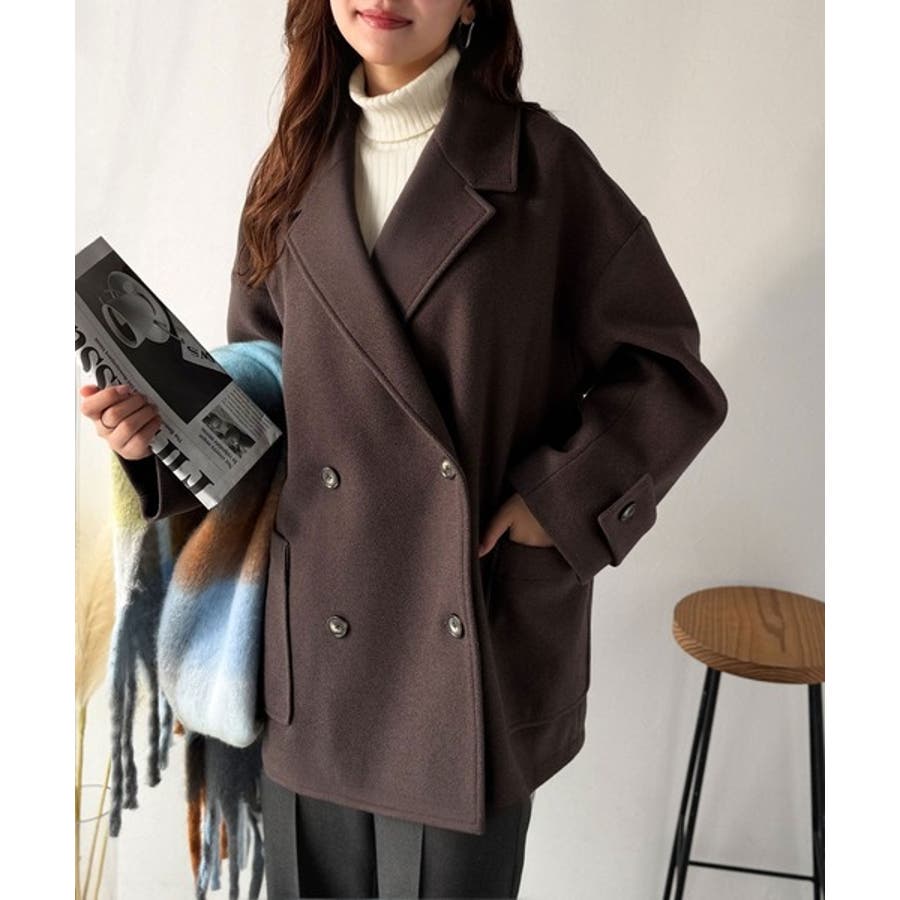 トレンドを先取り♪こなれ感UP、ダブルボタンジャケットメルトンコート(ミドル丈)