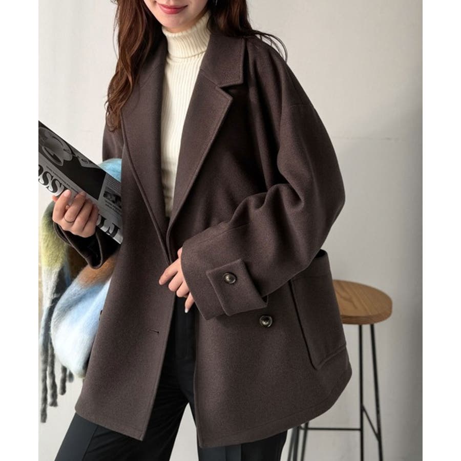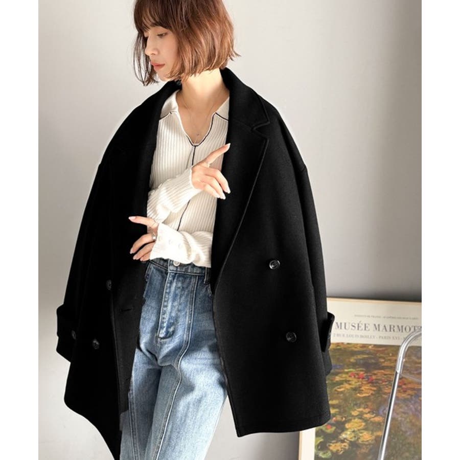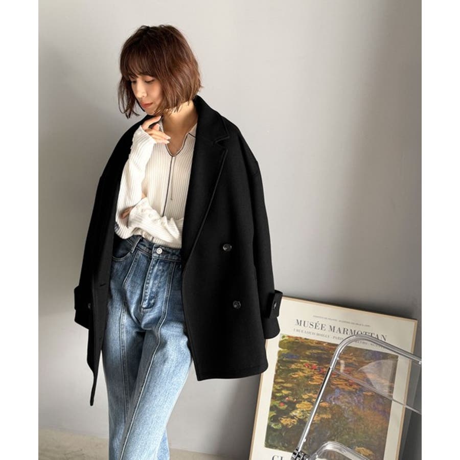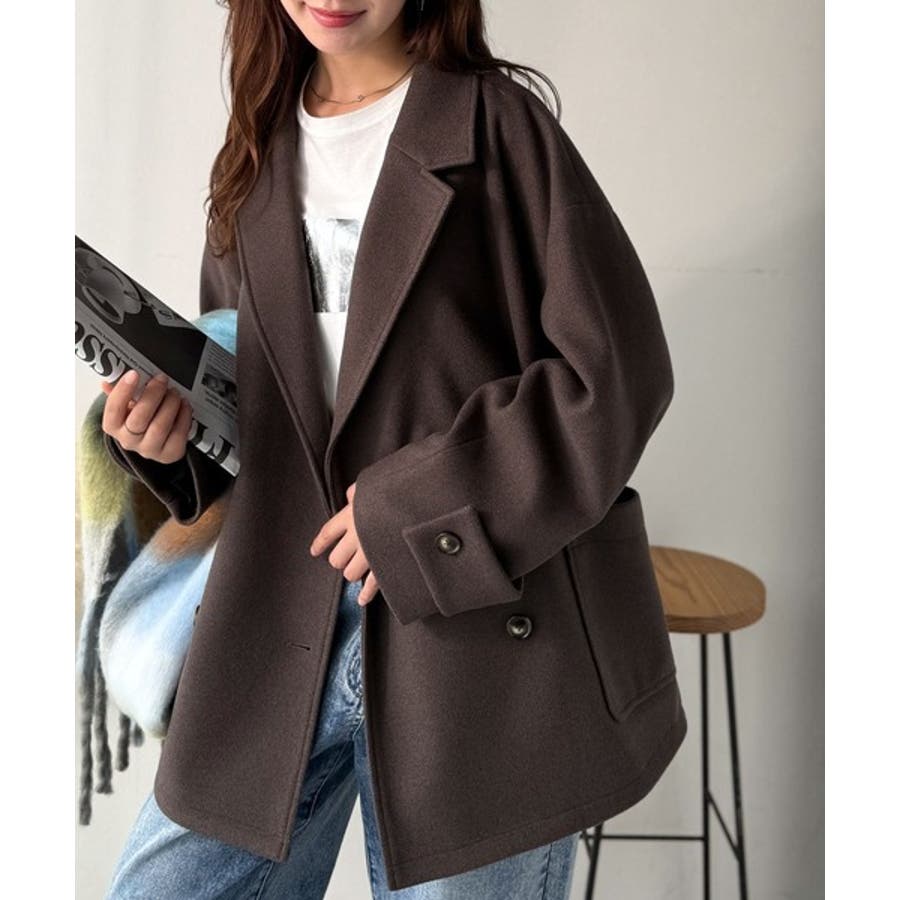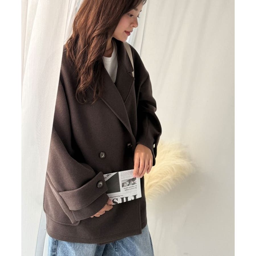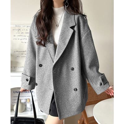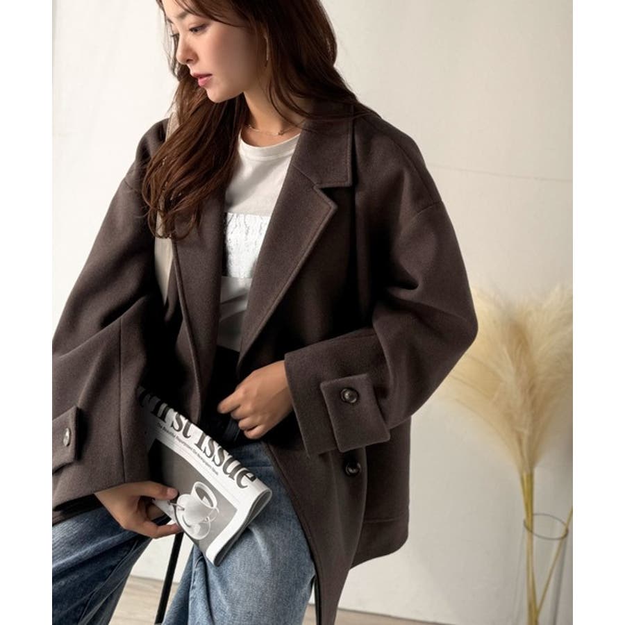 トレンドを先取り♪こなれ感UP、ダブルボタンジャケットメルトンコート(ミドル丈)