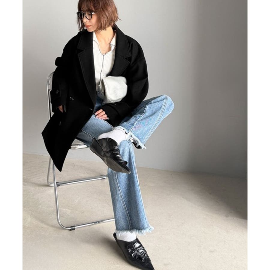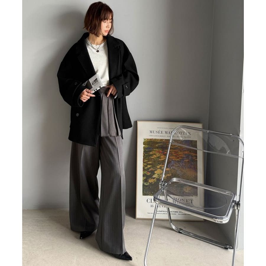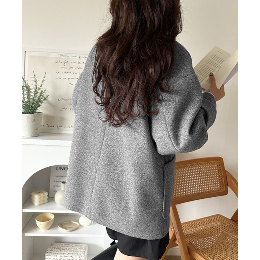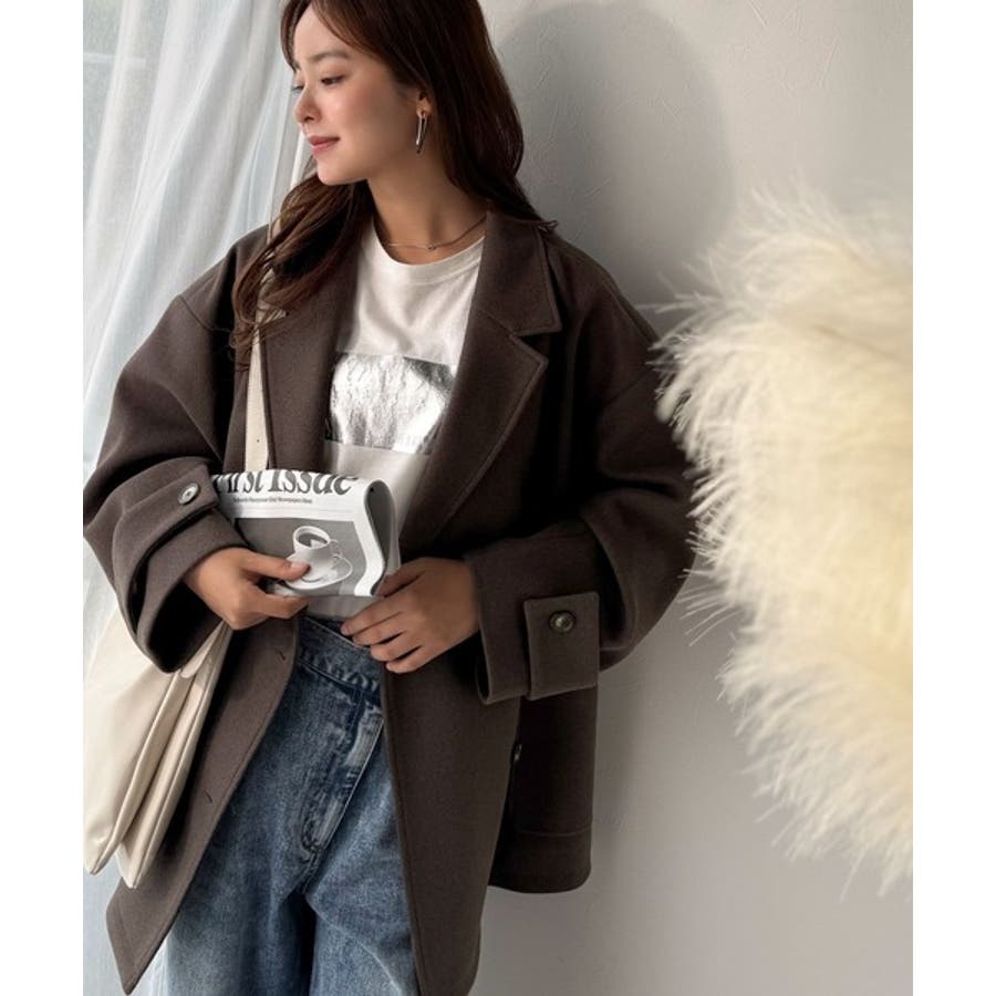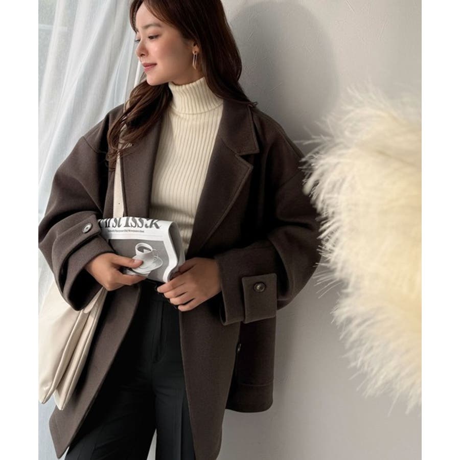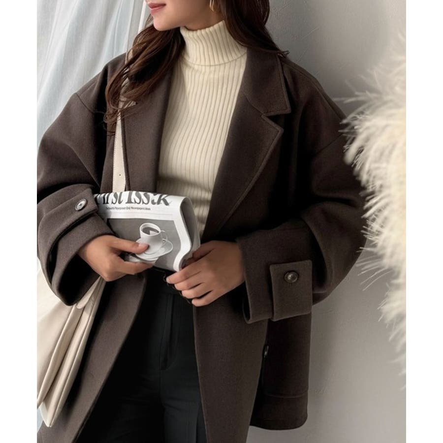トレンドを先取り♪こなれ感UP、ダブルボタンジャケットメルトンコート(ミドル丈)
