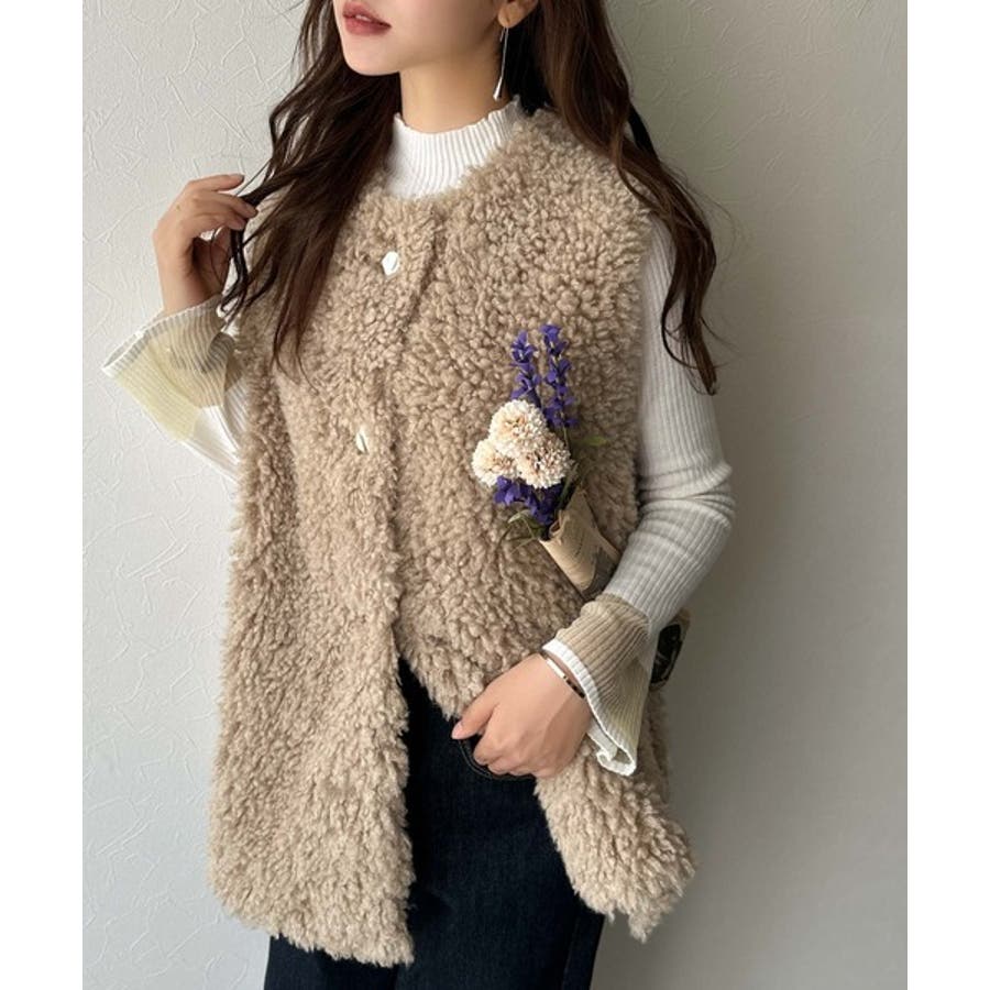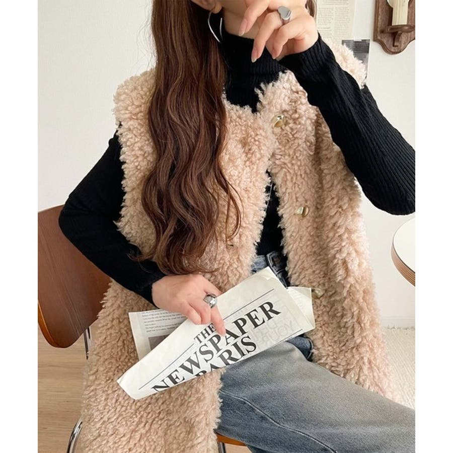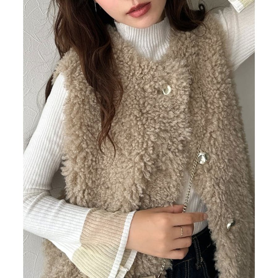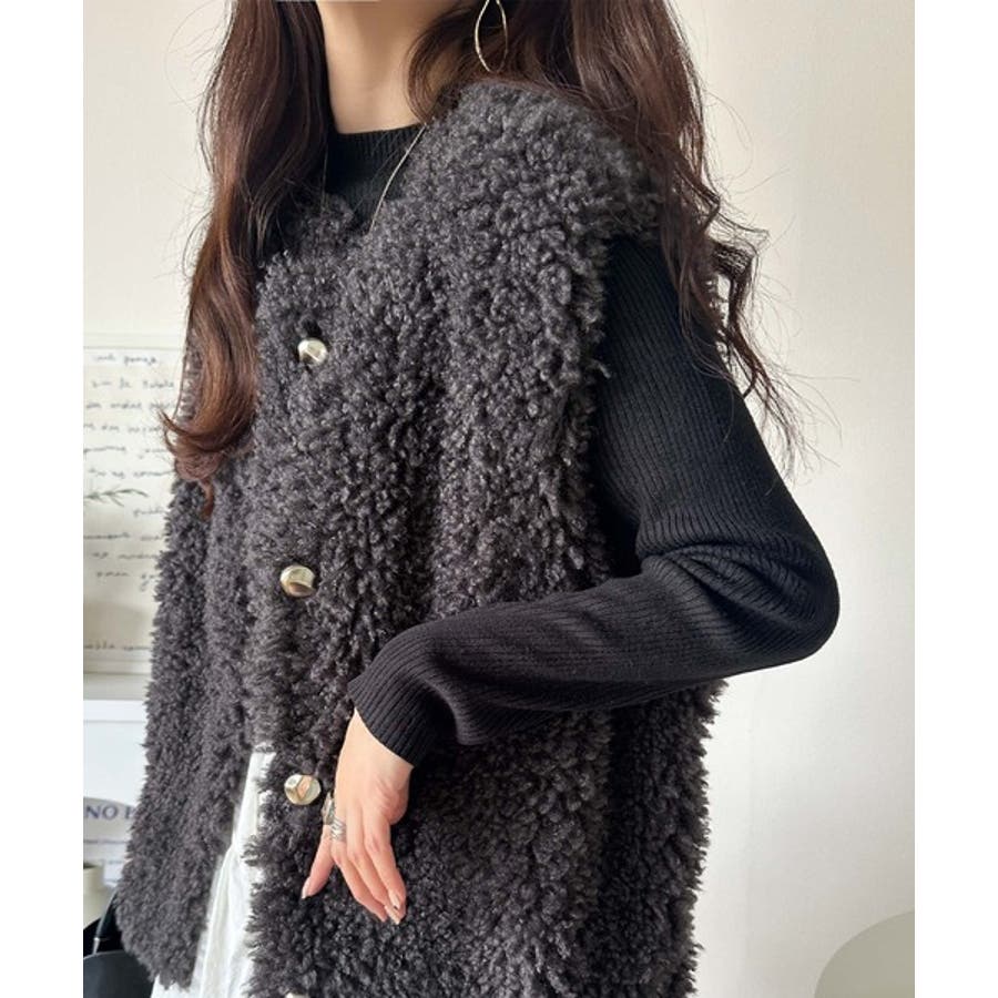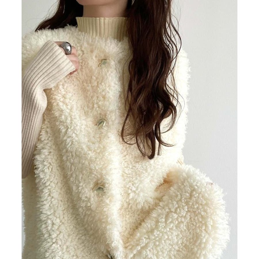 ふわふわのプードルボア素材で仕立てた、見た目も暖かさも文句なしの2wayベスト。前後どちらでも着られるデザインで気分やコーデに合わせて印象チェンジが楽しめます。ゴールドボタンが上品な華やかさを添え、ほどよくきちんと感のある大人コーデに。スリット入りで抜け感と動きやすさはもちろん、リブニットやワンピとレイヤードが出来て着回し力も抜群。パンツ合わせでラフに、スカートやブーツと合わせてフェミニンにも振れる万能アイテムです。