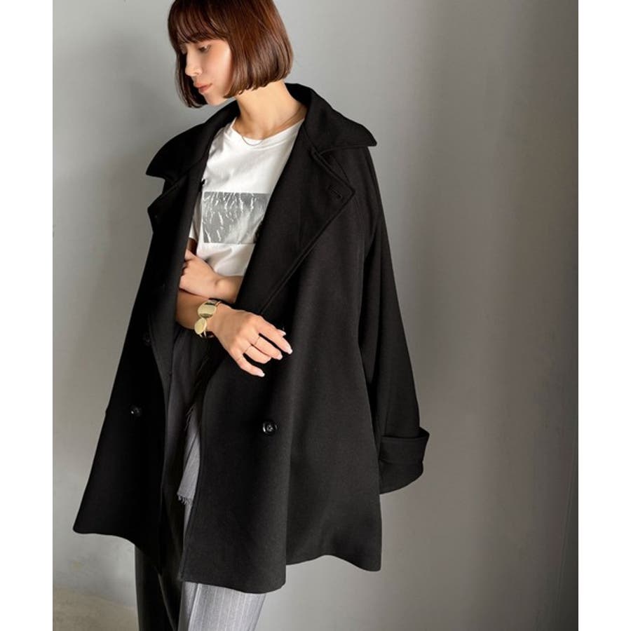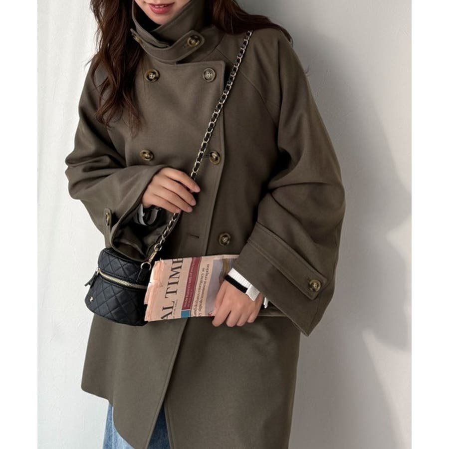 瞬間、きちんと見え。1枚あれば着回し自由自在。ケープ付きスタンドカラーミドル丈コ…