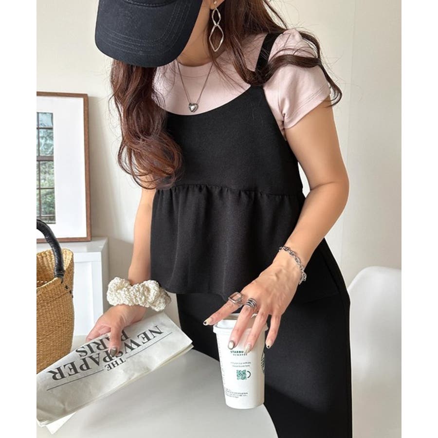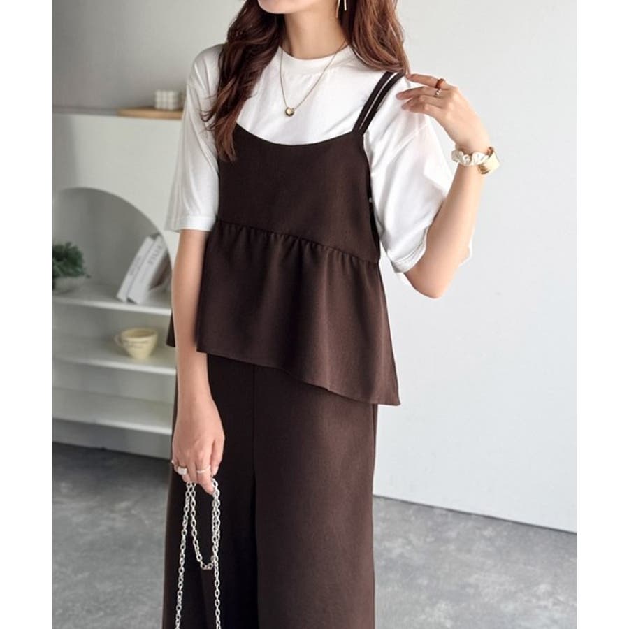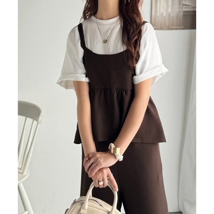1枚で華奢見え華やか◎ダブルストラップペプラムサロペット