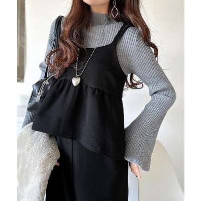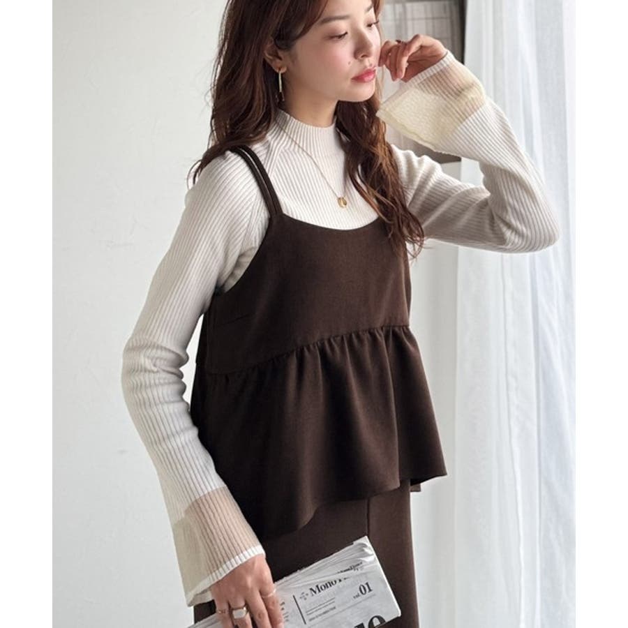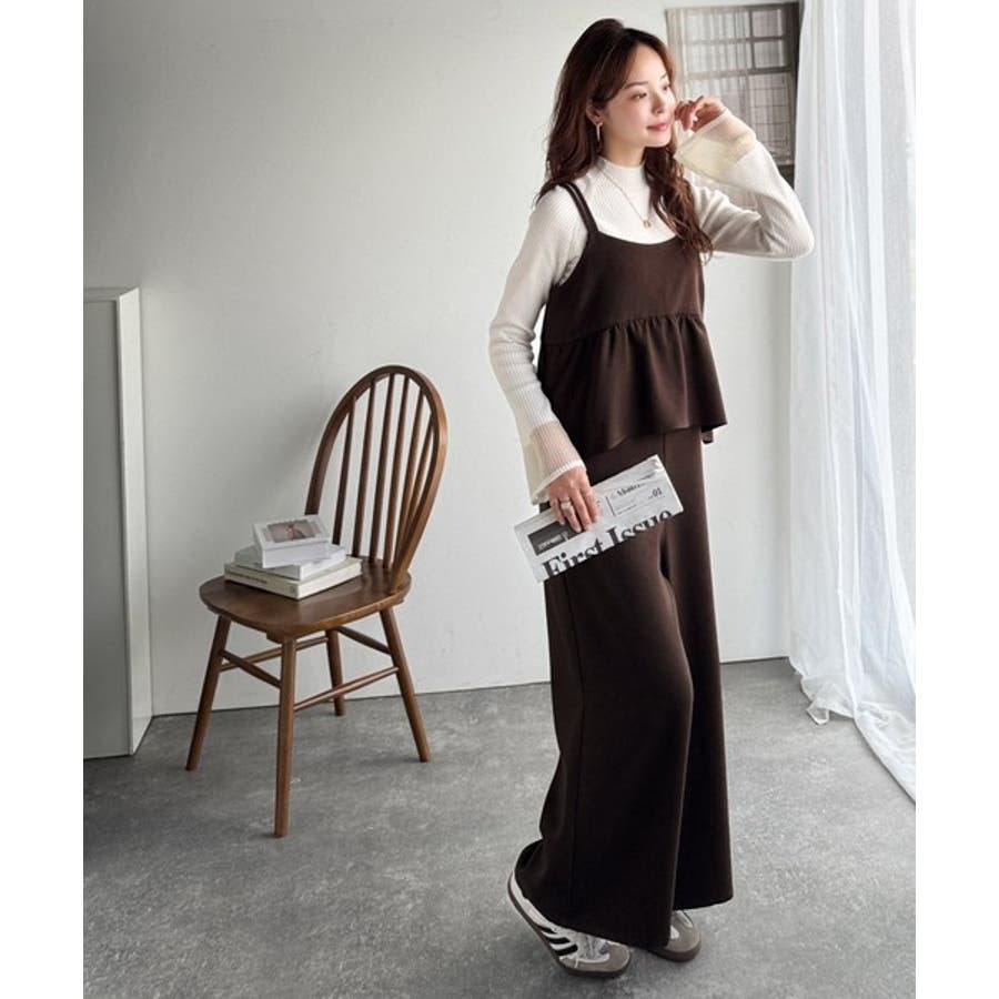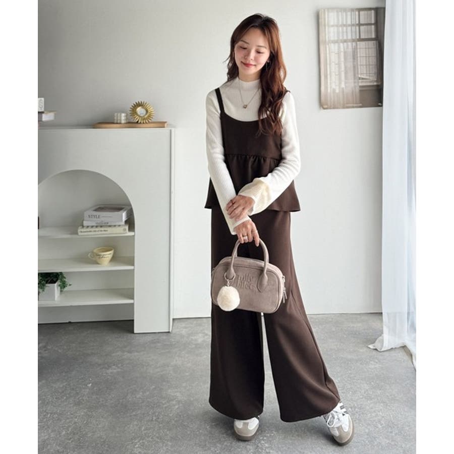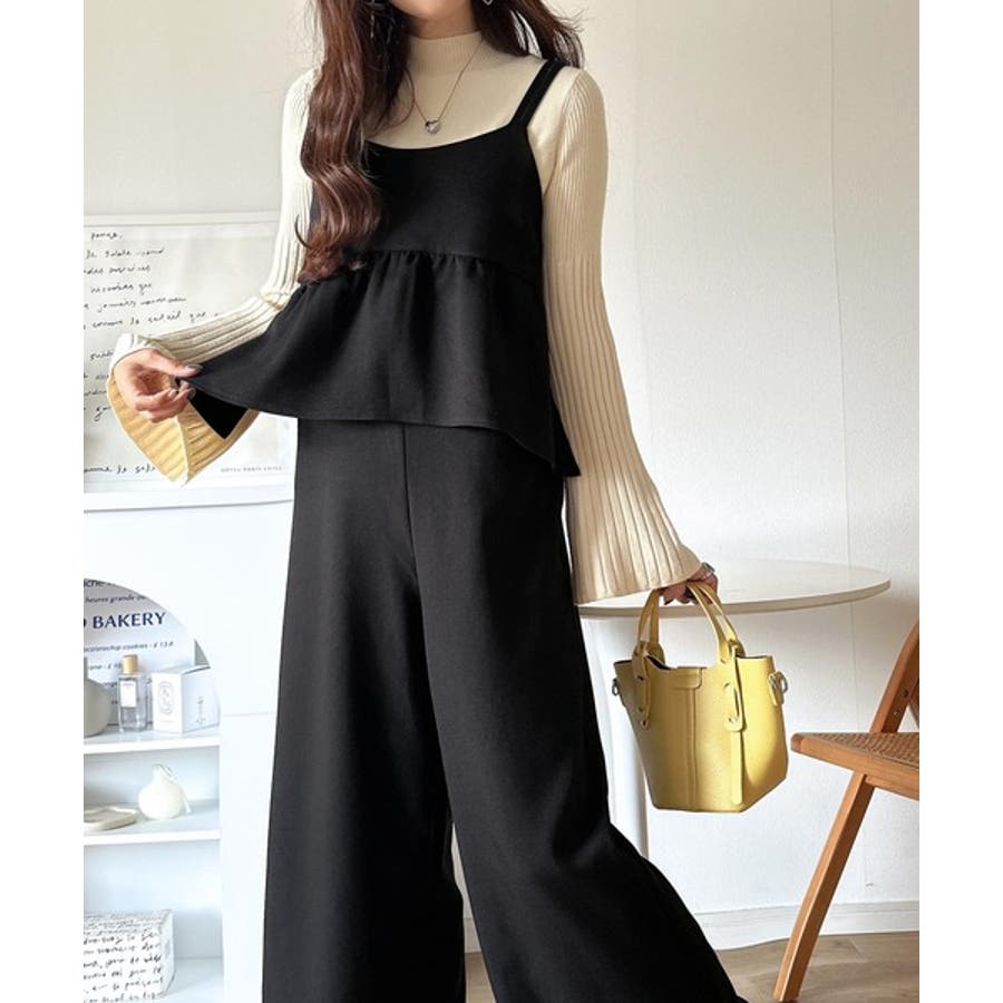 ビスチェ風のフリルデザインがポイントのペプラムサロペット。