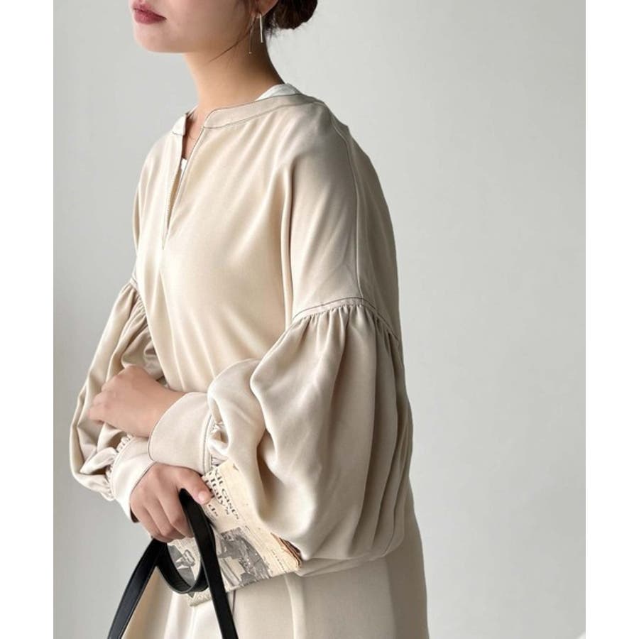 フロントのキーネックが顔まわりをすっきり見せてくれるのがポイント。