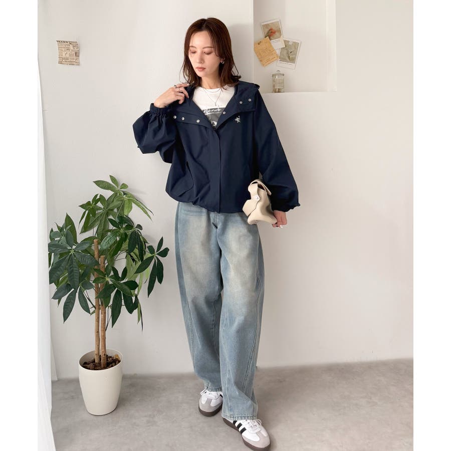 ゆったりしたサイジングでニットやパーカーも中に合わせやすいのが魅力!