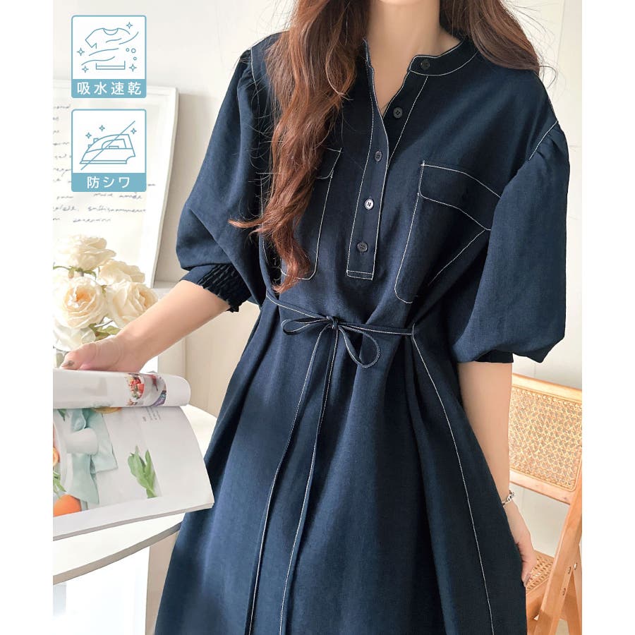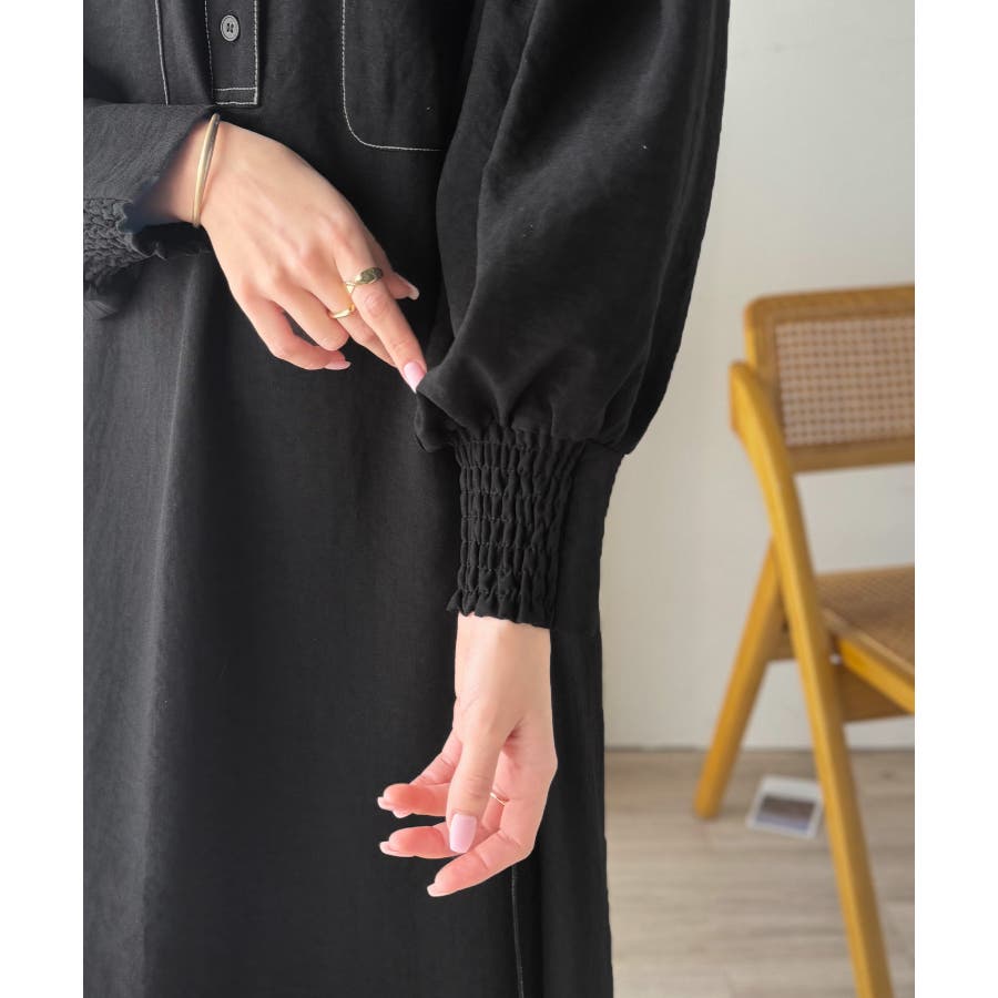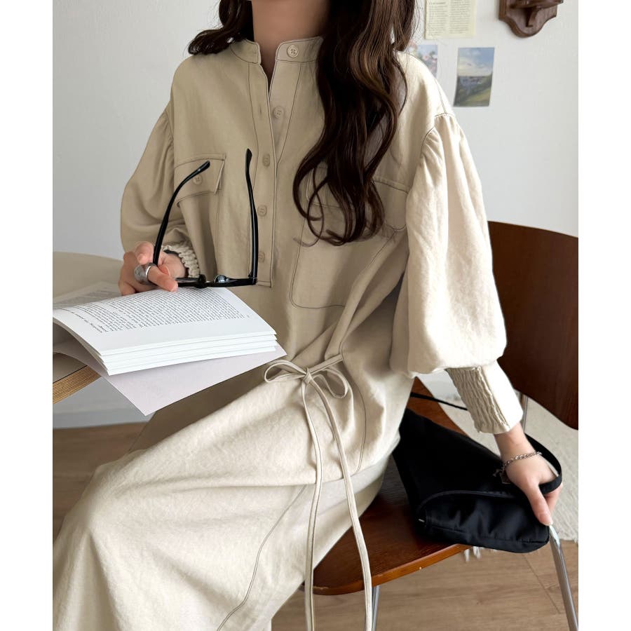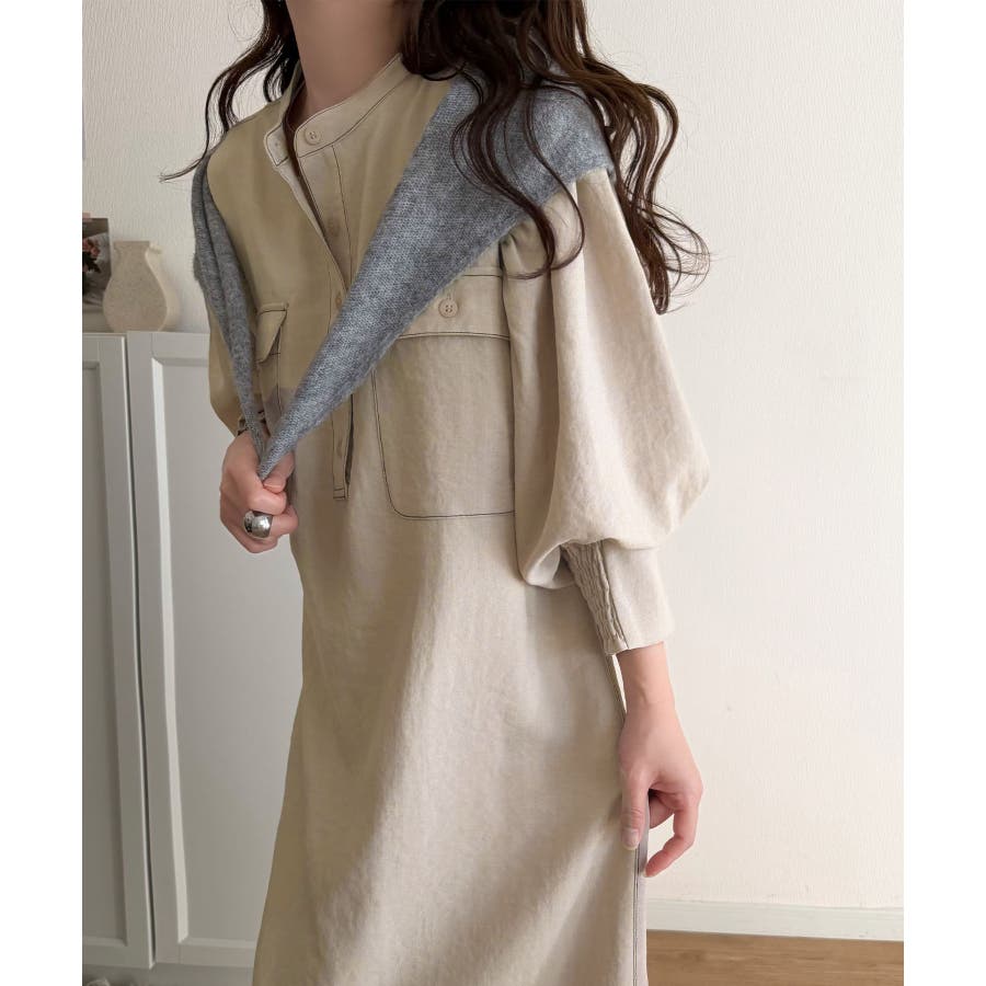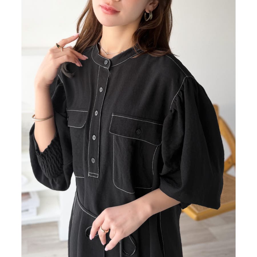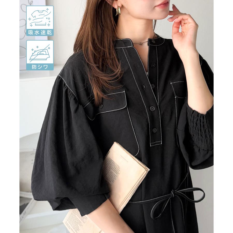 【防シワ機能付き】主役級!さらりと着られるシンプル派のためのノーカラー袖ボリュー…