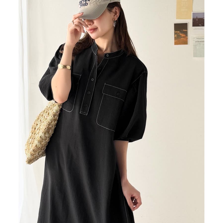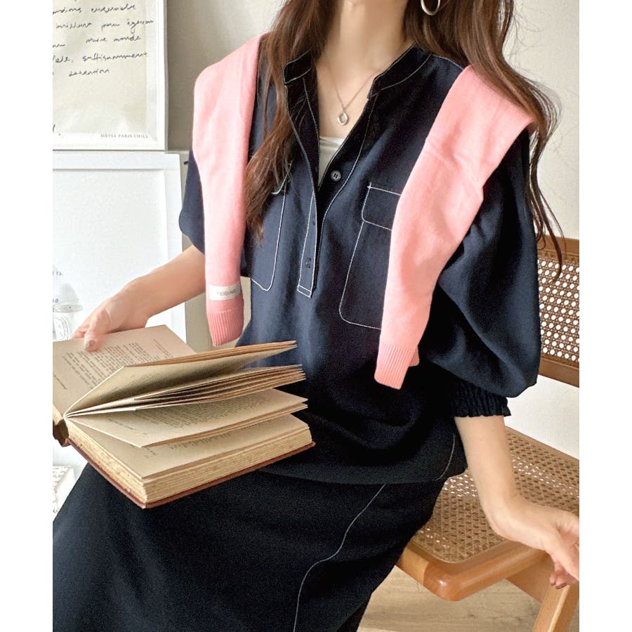 ノーカラーとお袖のふんわり感が大人のカジュアルスタイルを格上げ!