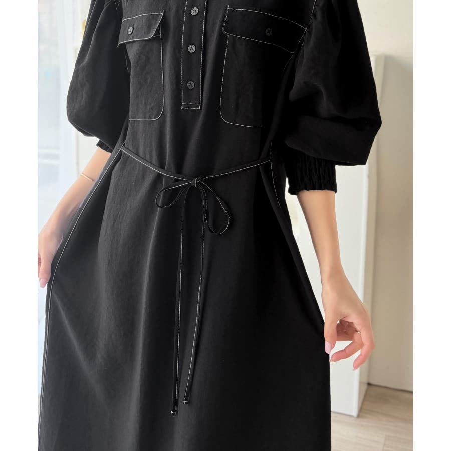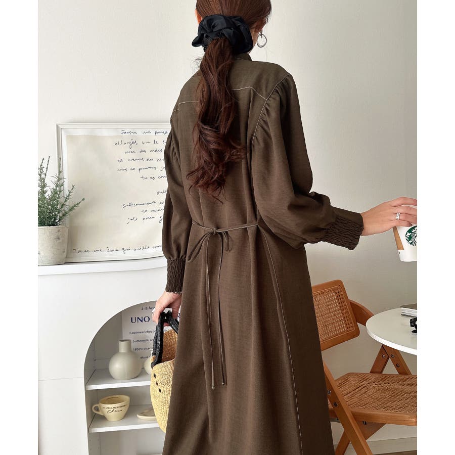 ウエストリボンでラインを引き締めるデザイン。ウエストリボンは前後2Way対応可能で、