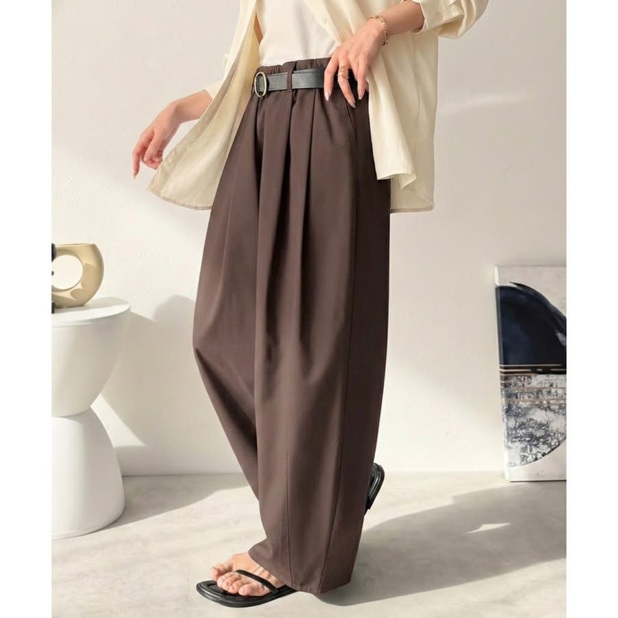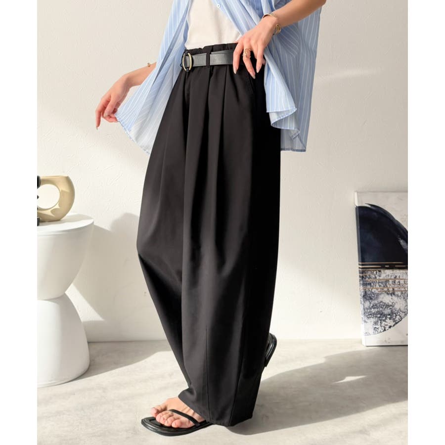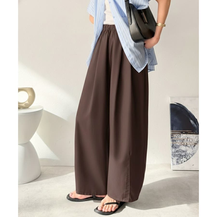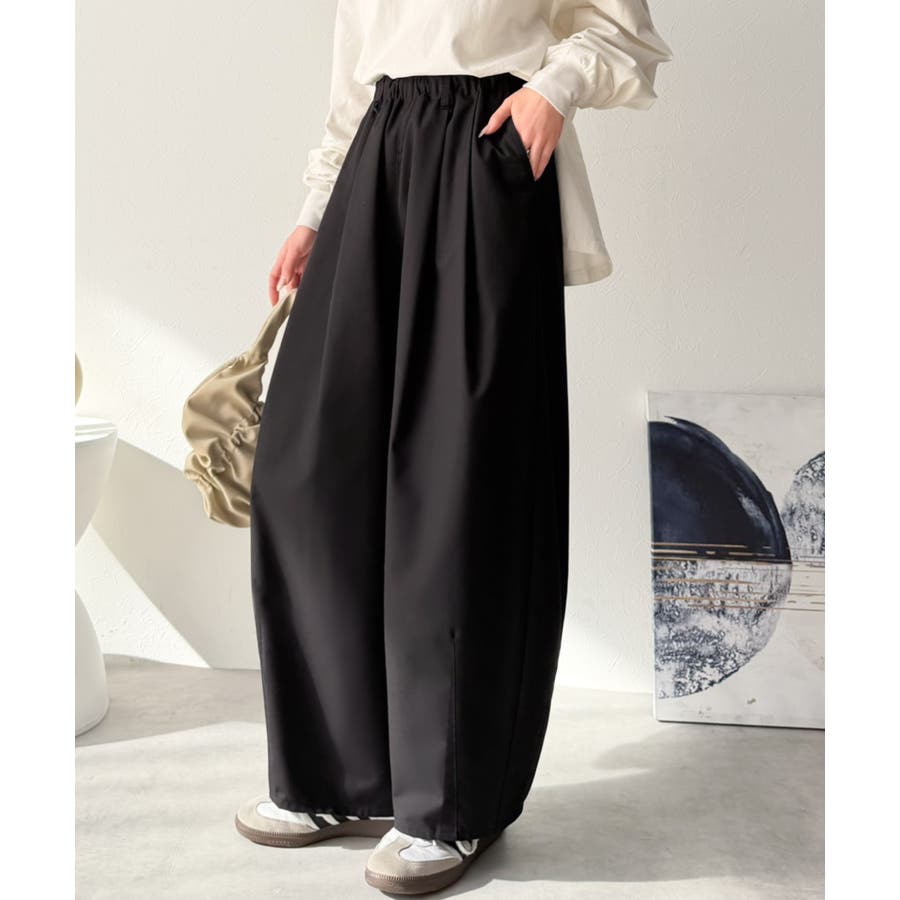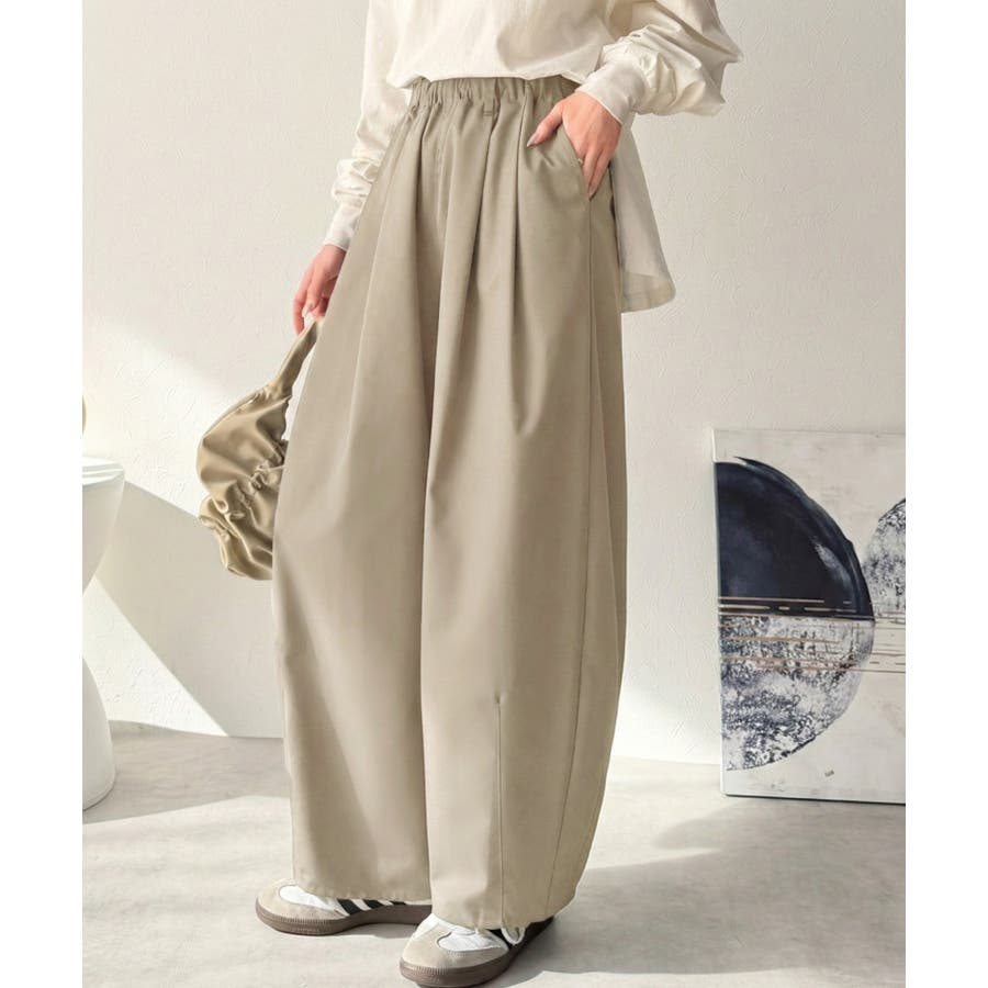 ゆるく、美しく、すらり整う。ボリュームギャザーイージータックパンツ(ウエストゴム…