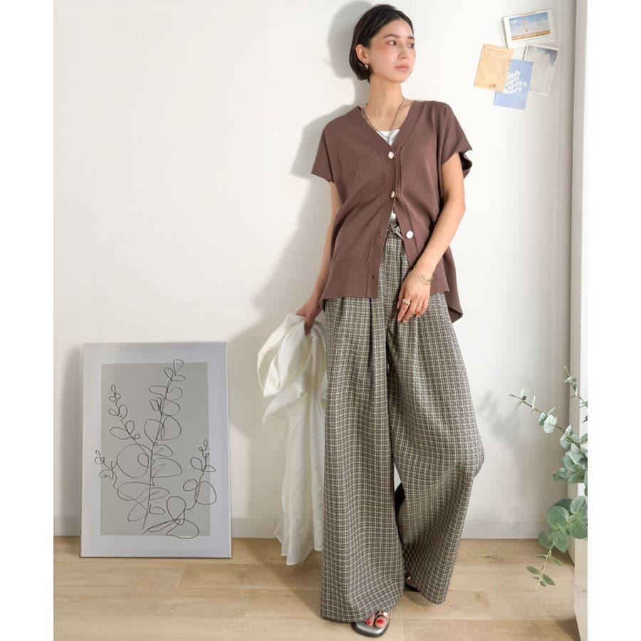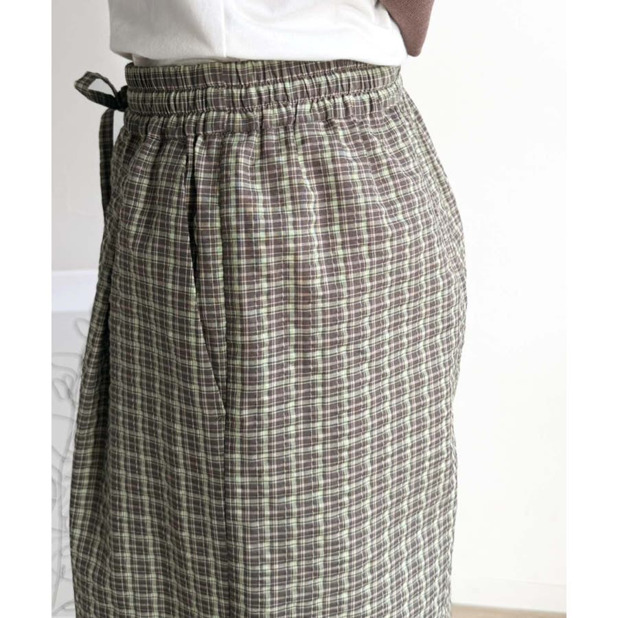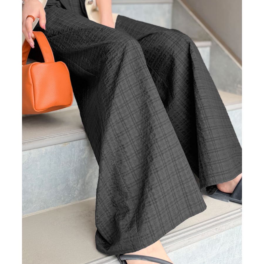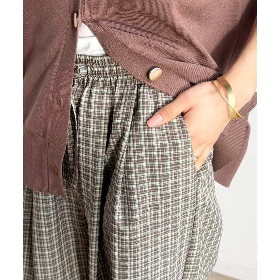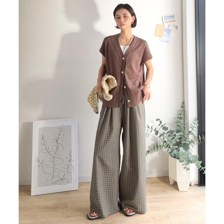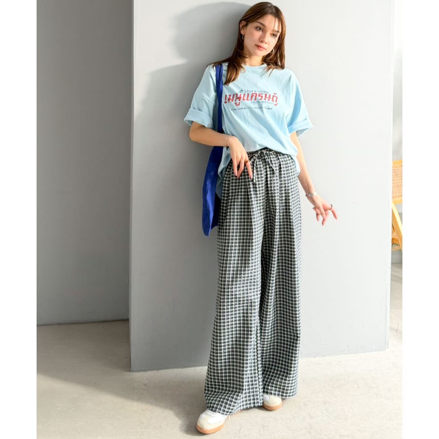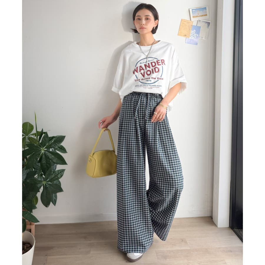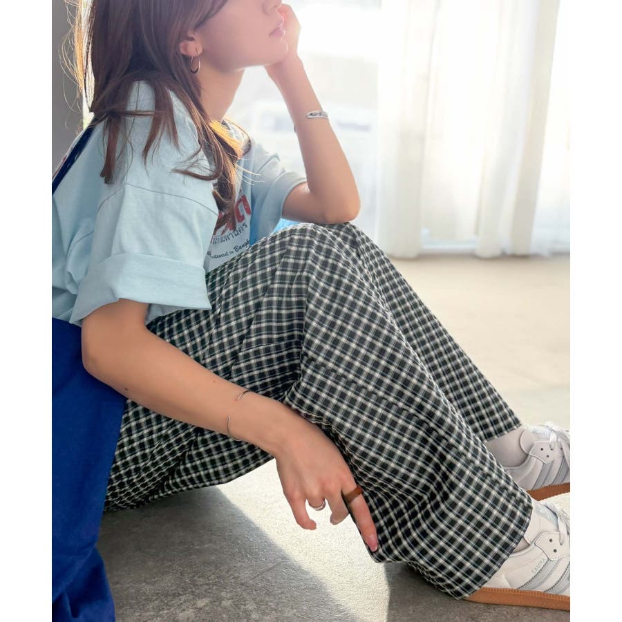 履くだけでお洒落見え。涼しげ素材で魅せる。サッカーチェックタックワイドパンツ