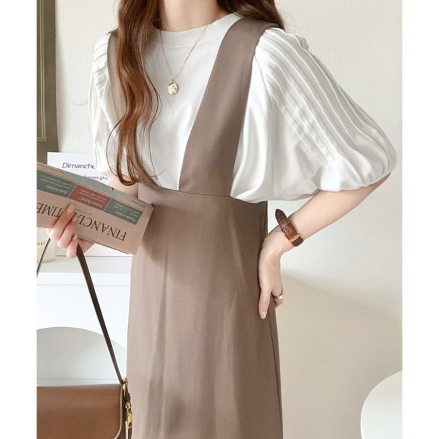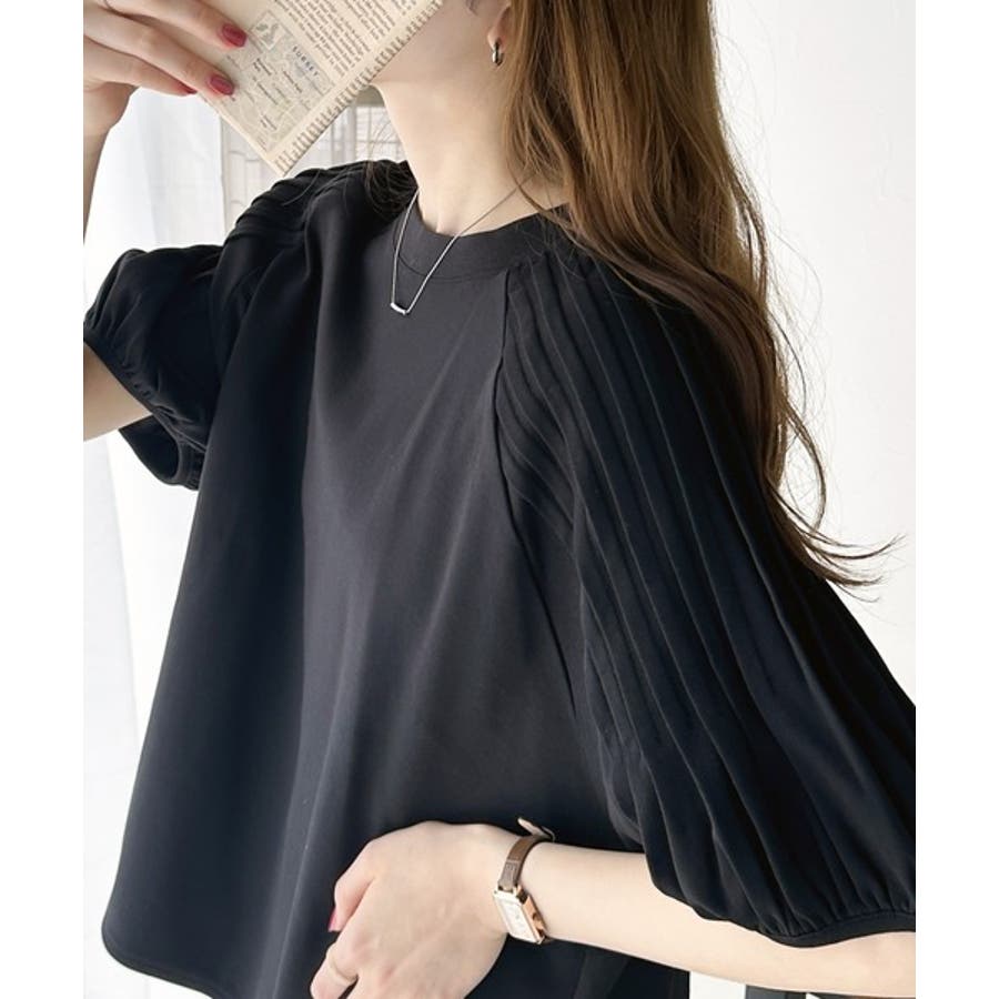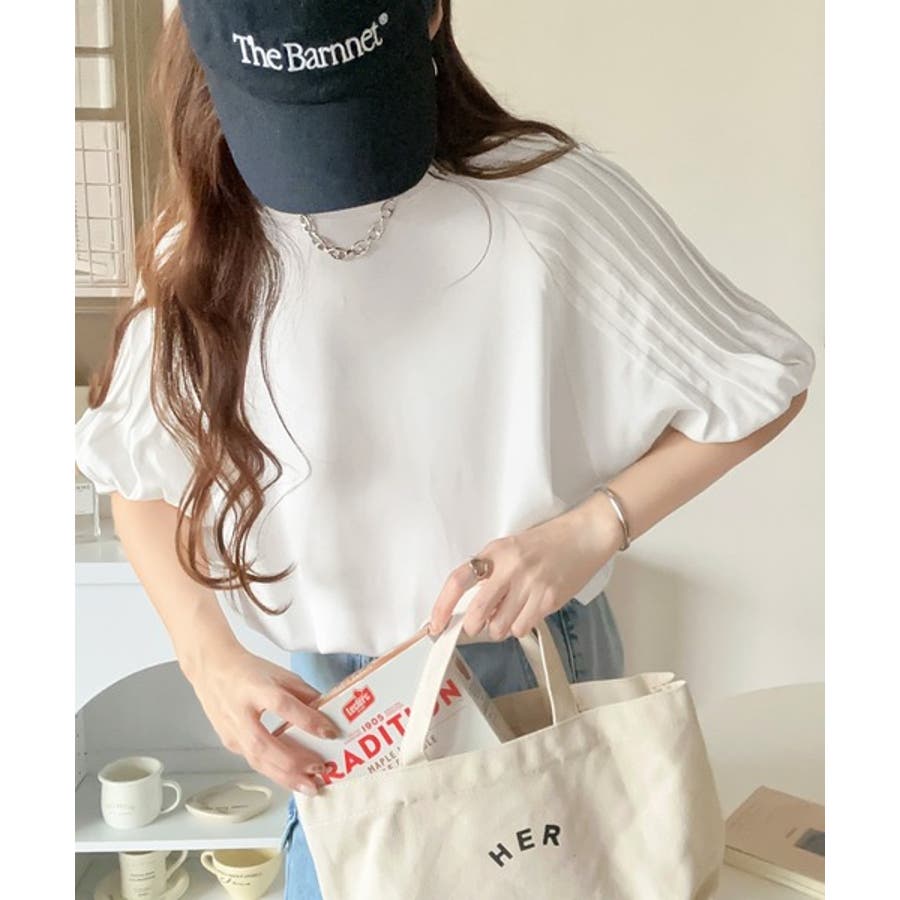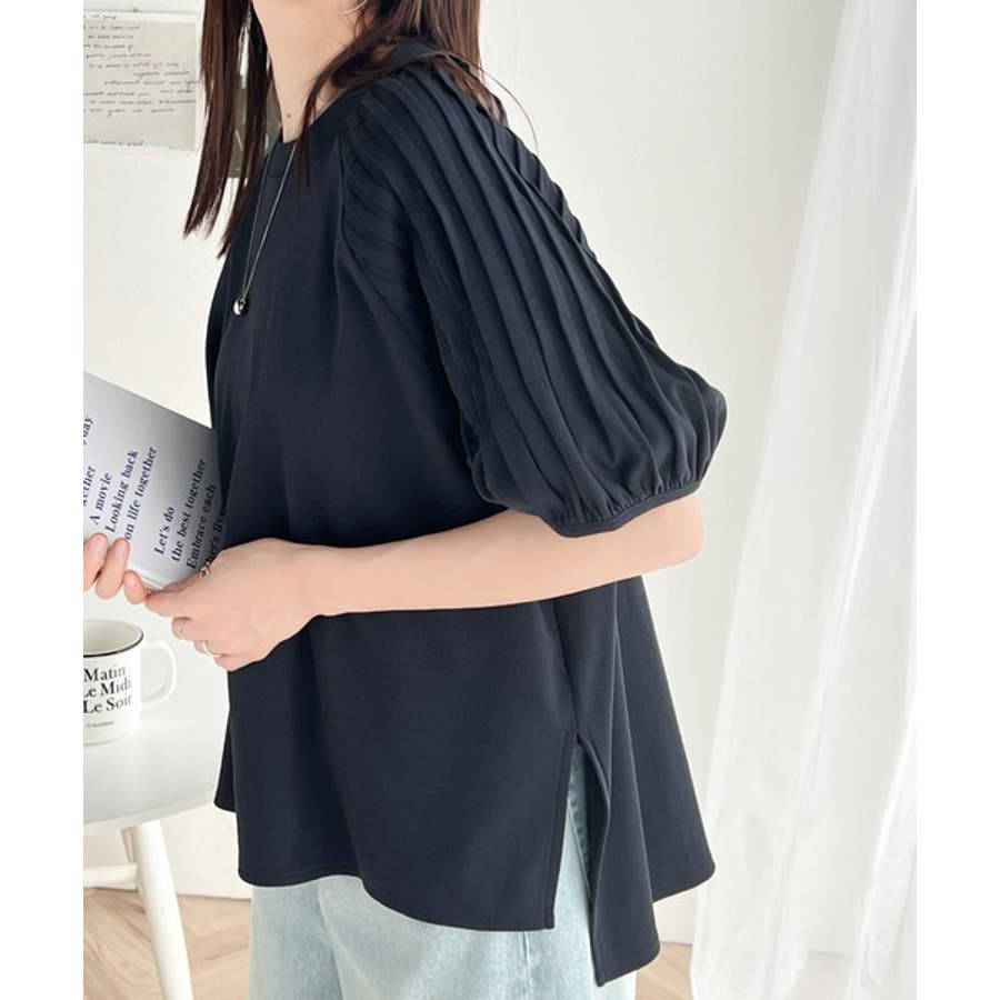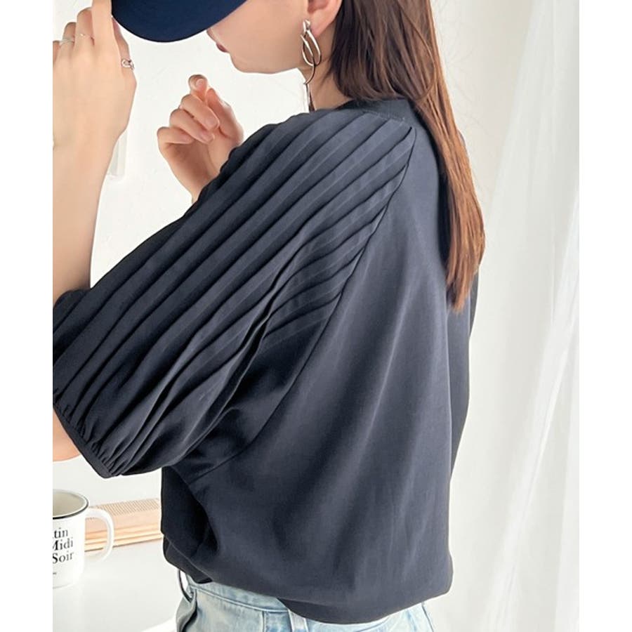 タックの入ったバルーンスリーブが特徴的なTシャツ。