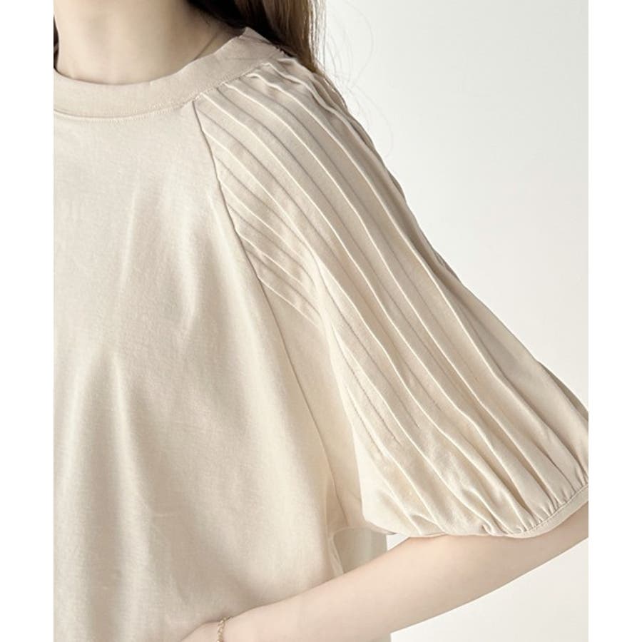 カジュアルな中にも上品さを。綿100% 袖山タックラグラン半袖Tシャツ
