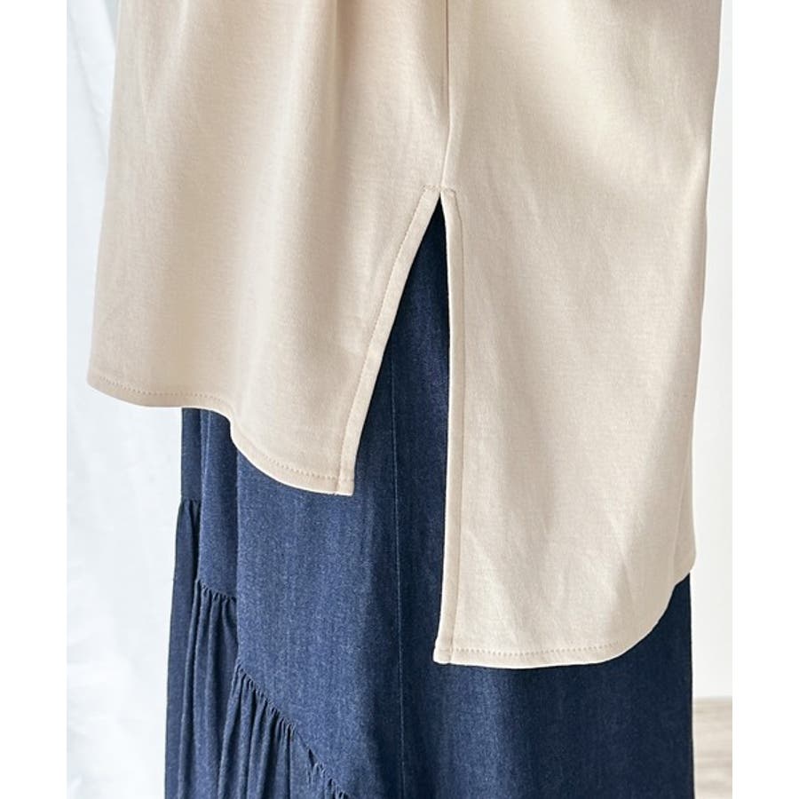 着丈は前後差をつけ、サイドにはスリットも入っているので、