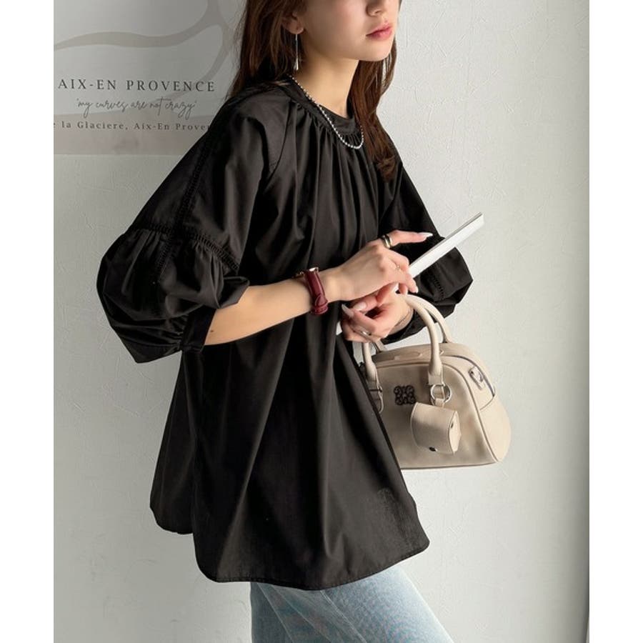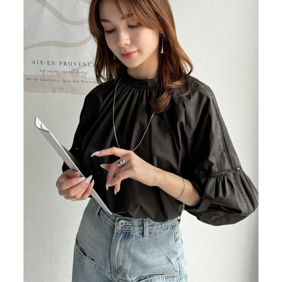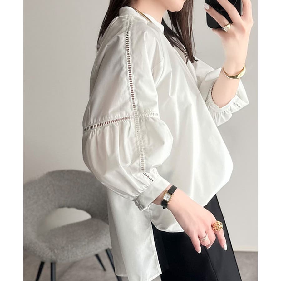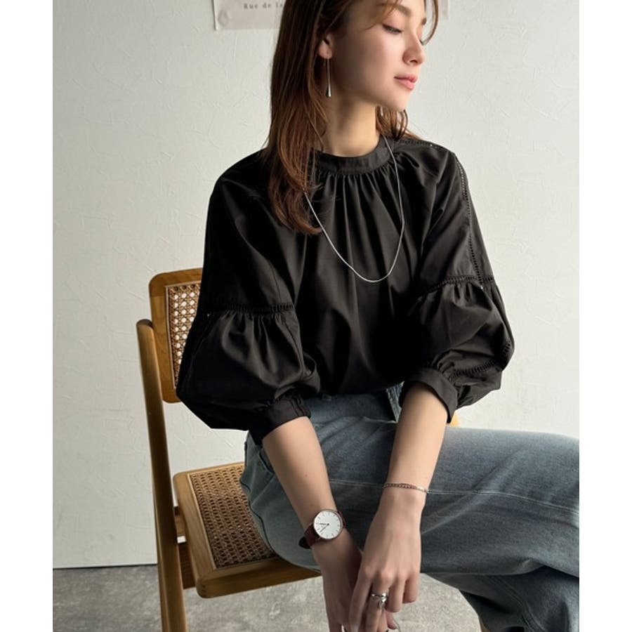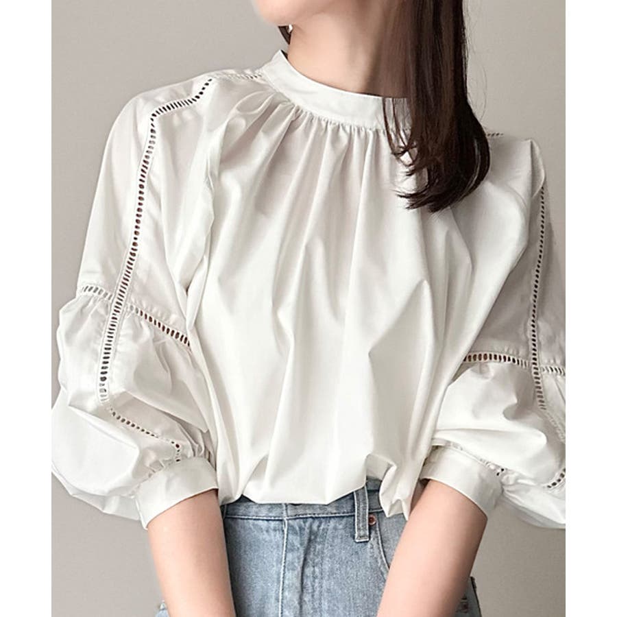 トレンド感のあるボリューム袖とレースのディテールが特徴の