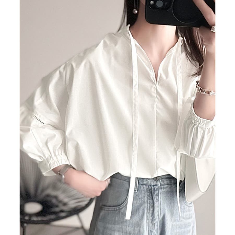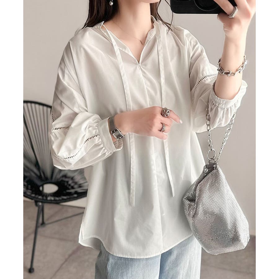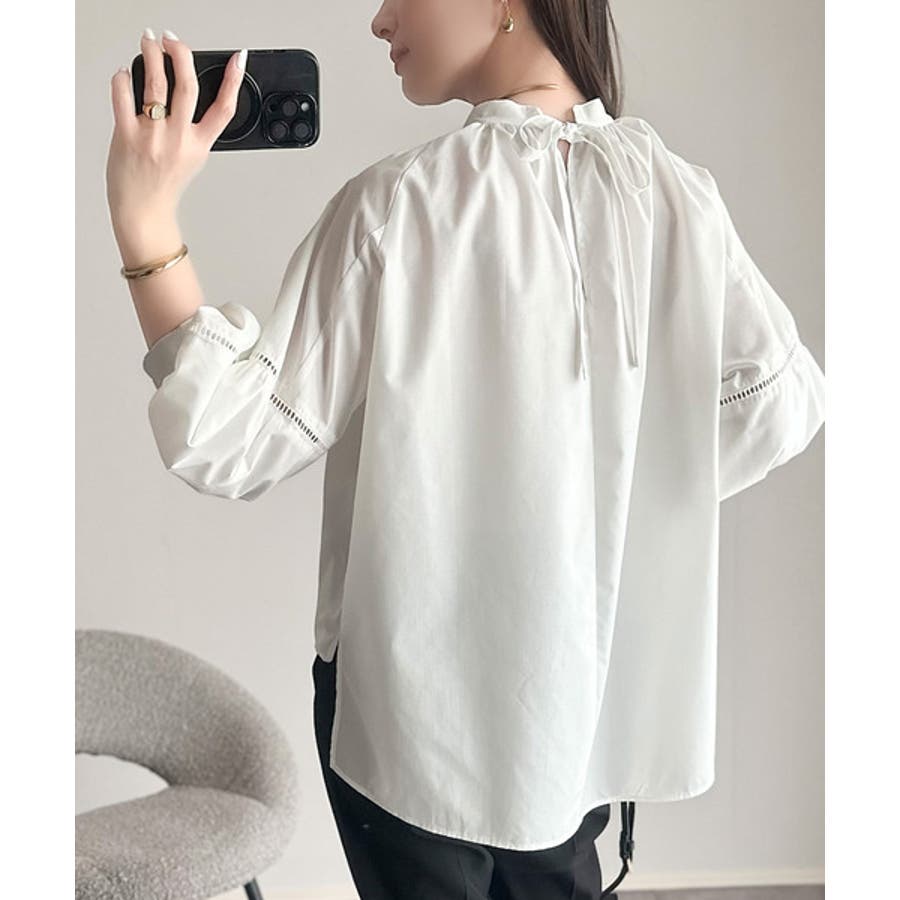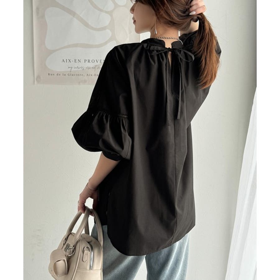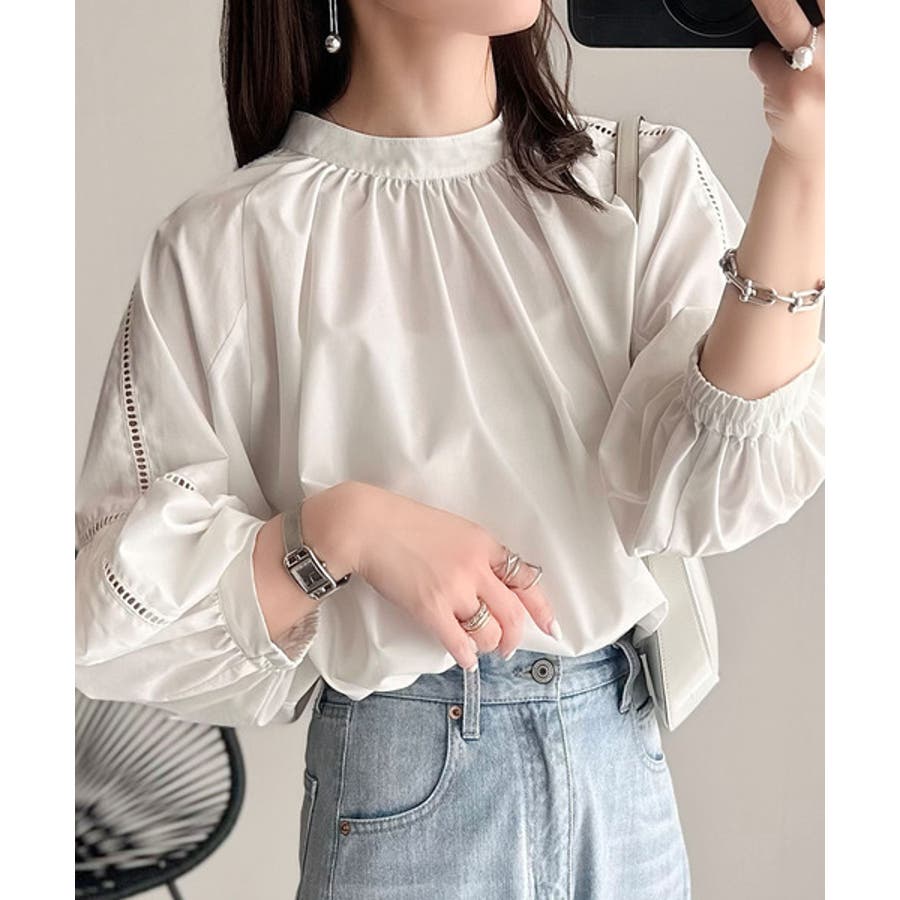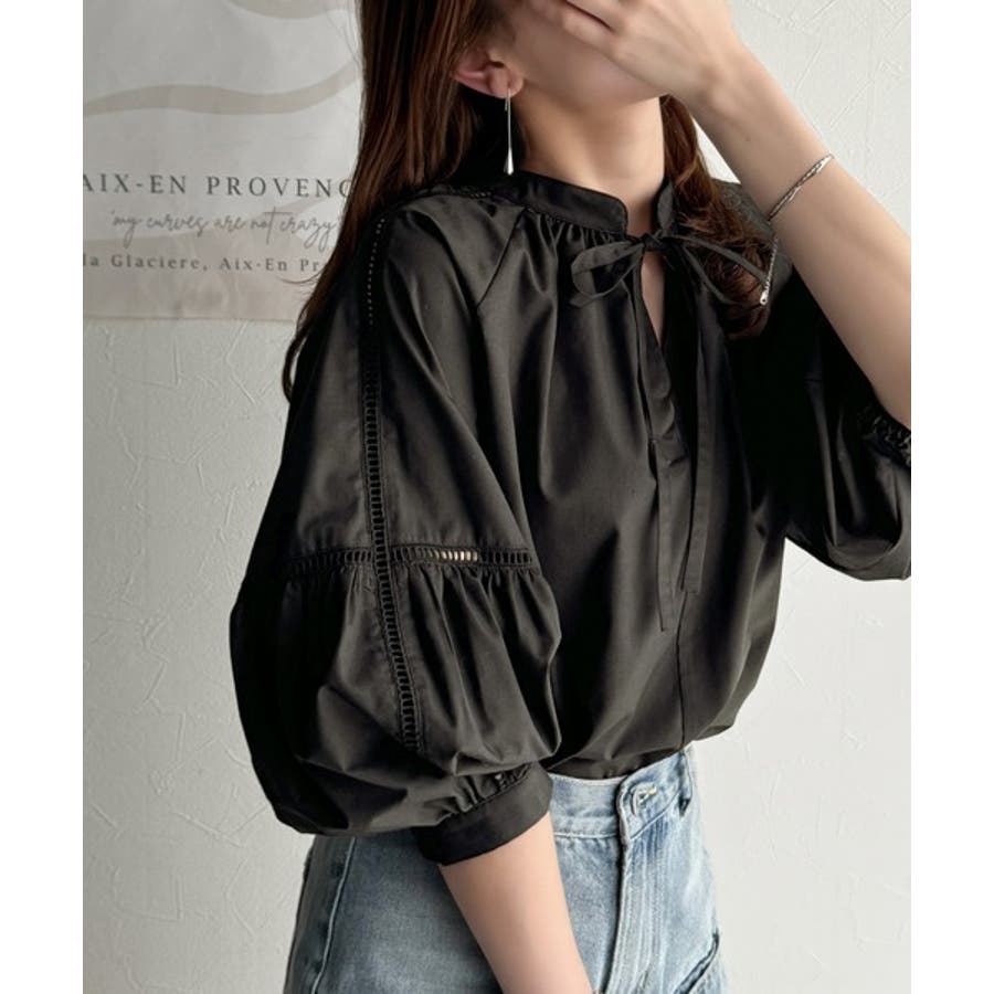 トレンド感のあるボリューム袖とレースのディテールが特徴の