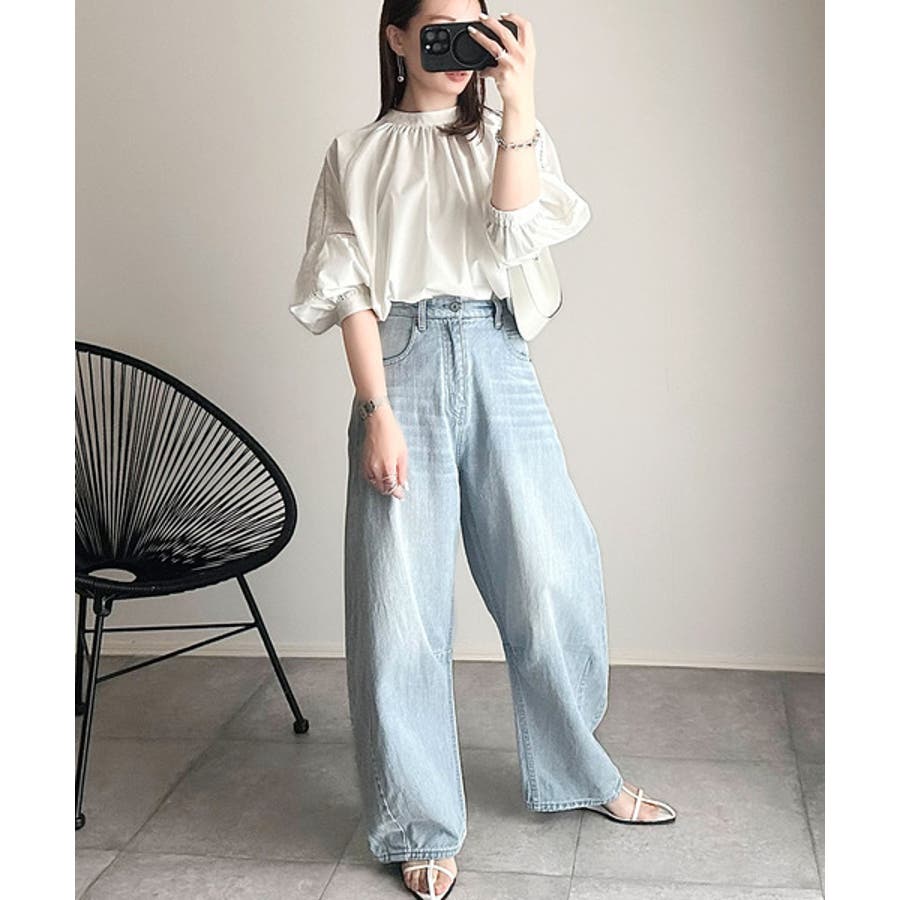 ボリューム袖はミニボトムスに合わせた時も華やかになります。
