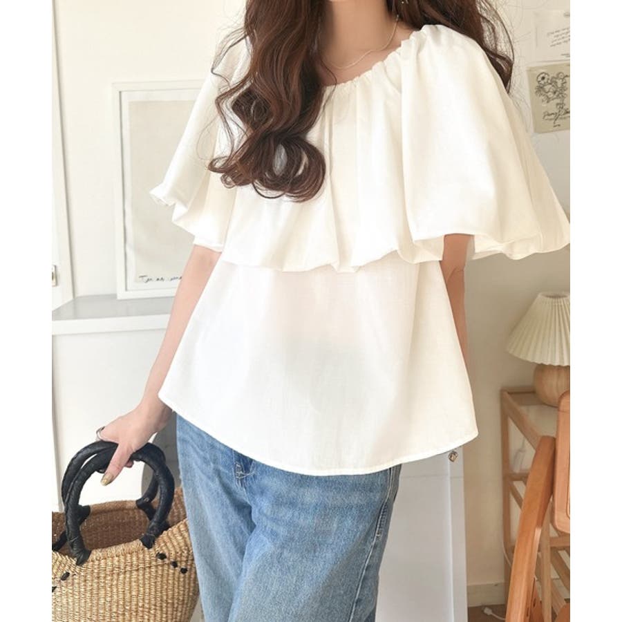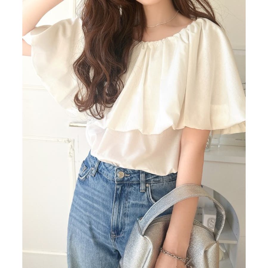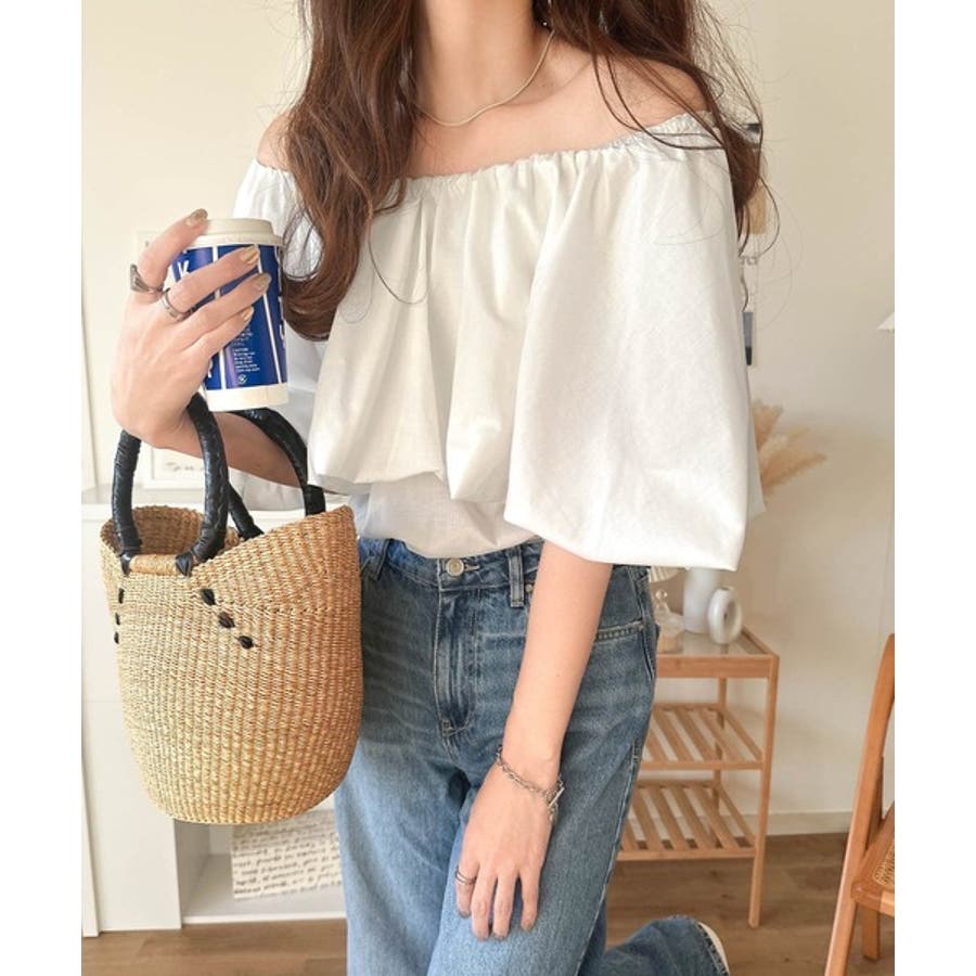 オフショルダーでも着用可能な2WAYデザインのブラウス。