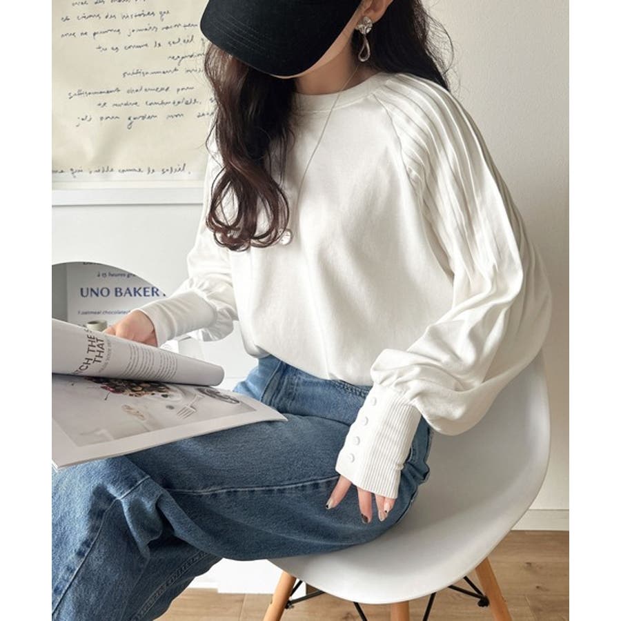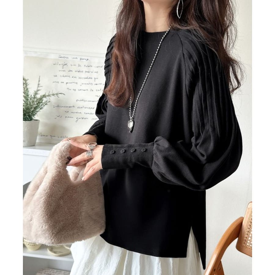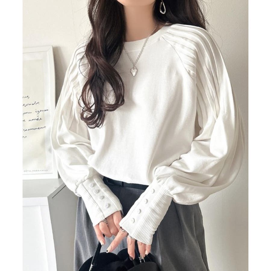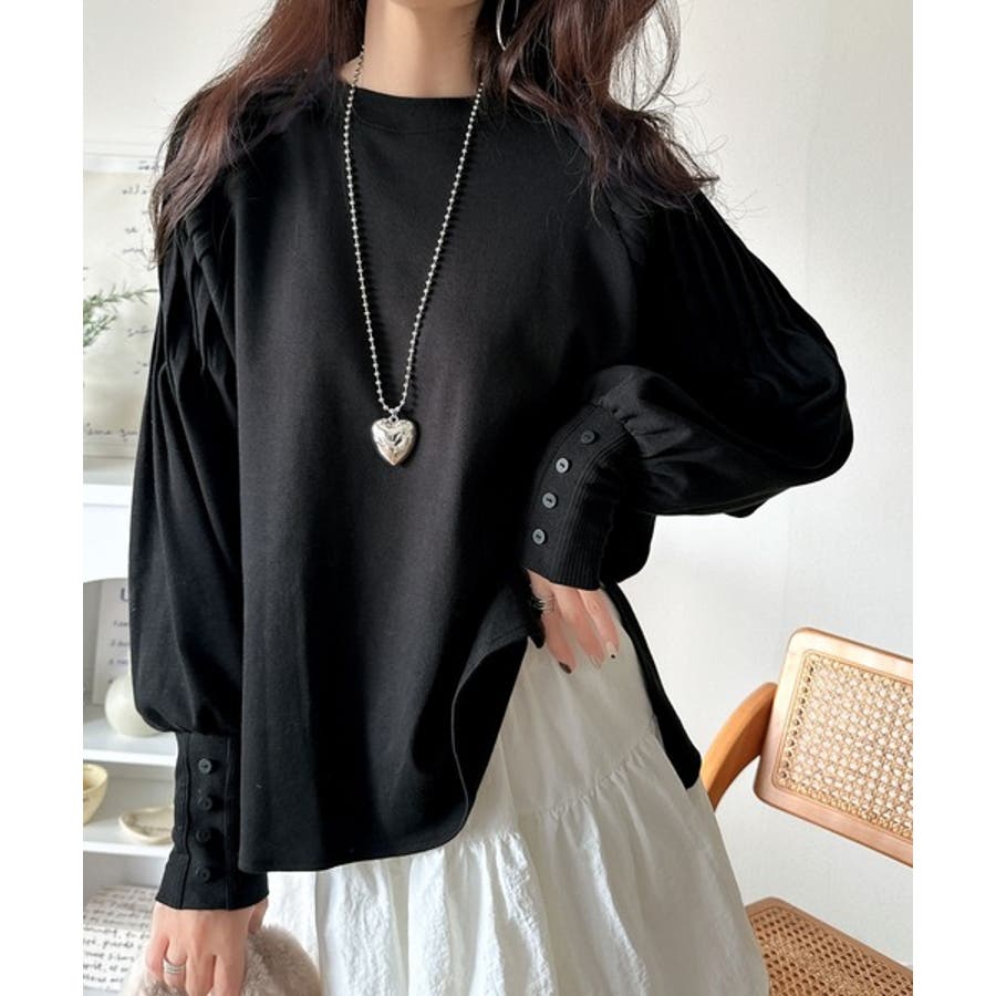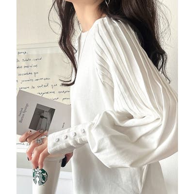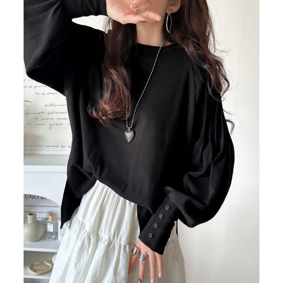 タックの入ったバルーンスリーブが特徴的なロングリブスリーブカットソー。