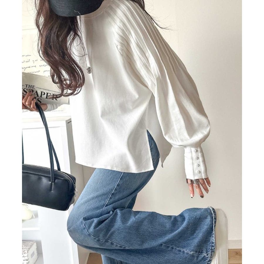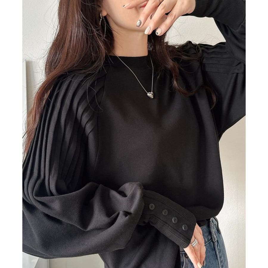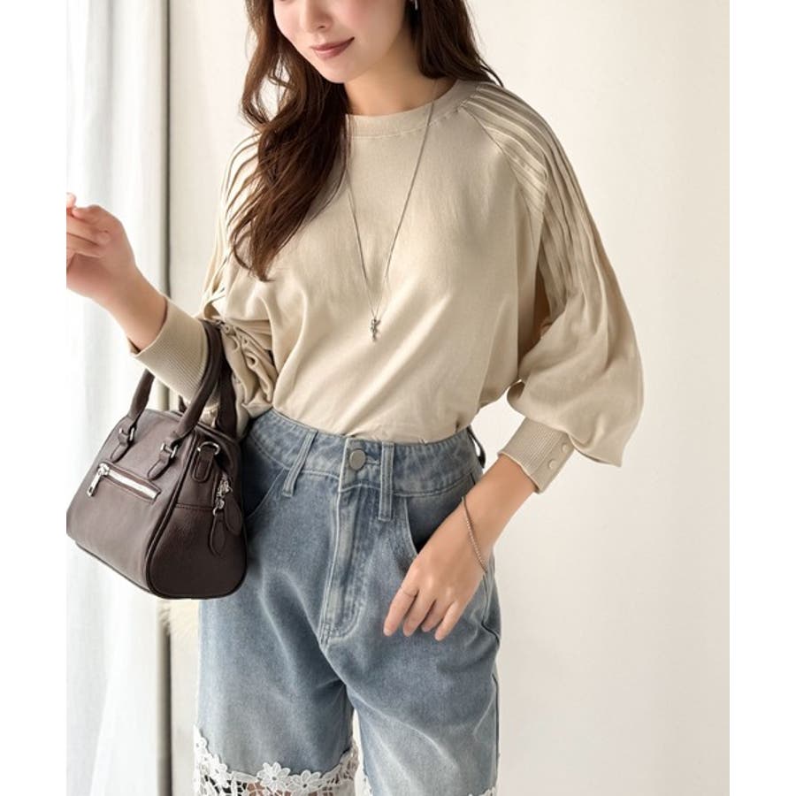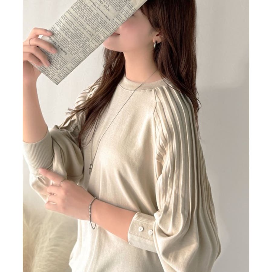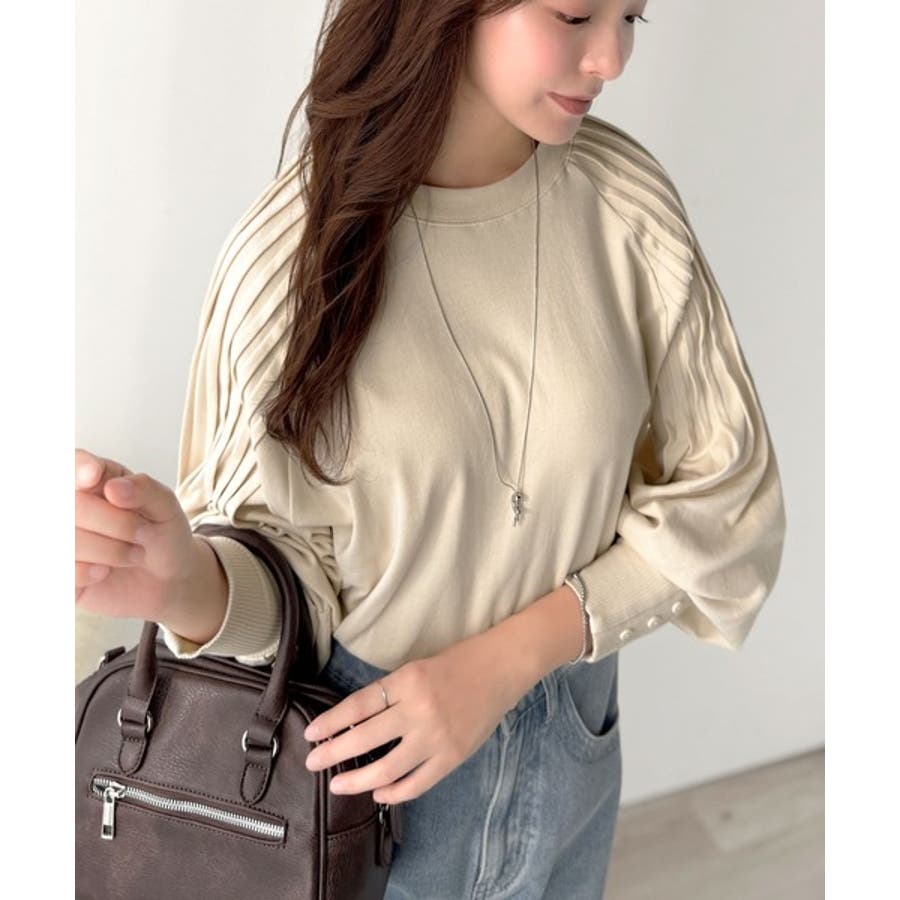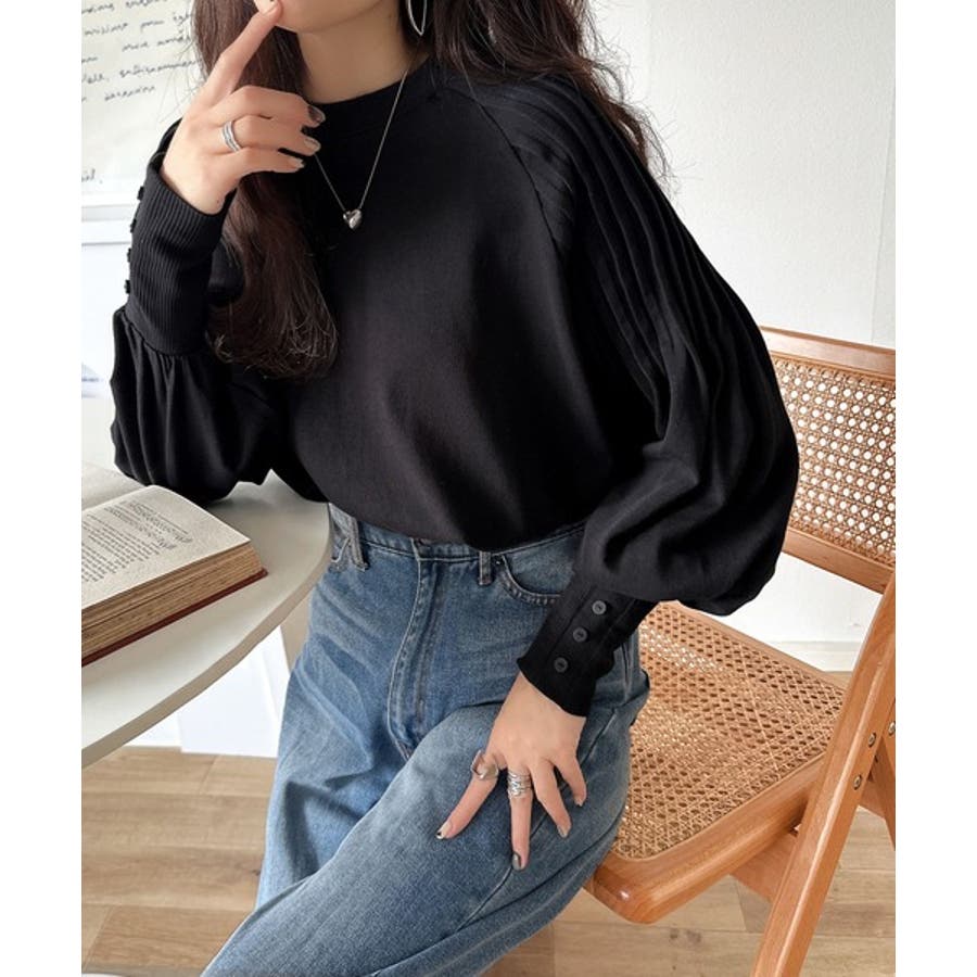 タックの入ったバルーンスリーブが特徴的なロングリブスリーブカットソー。