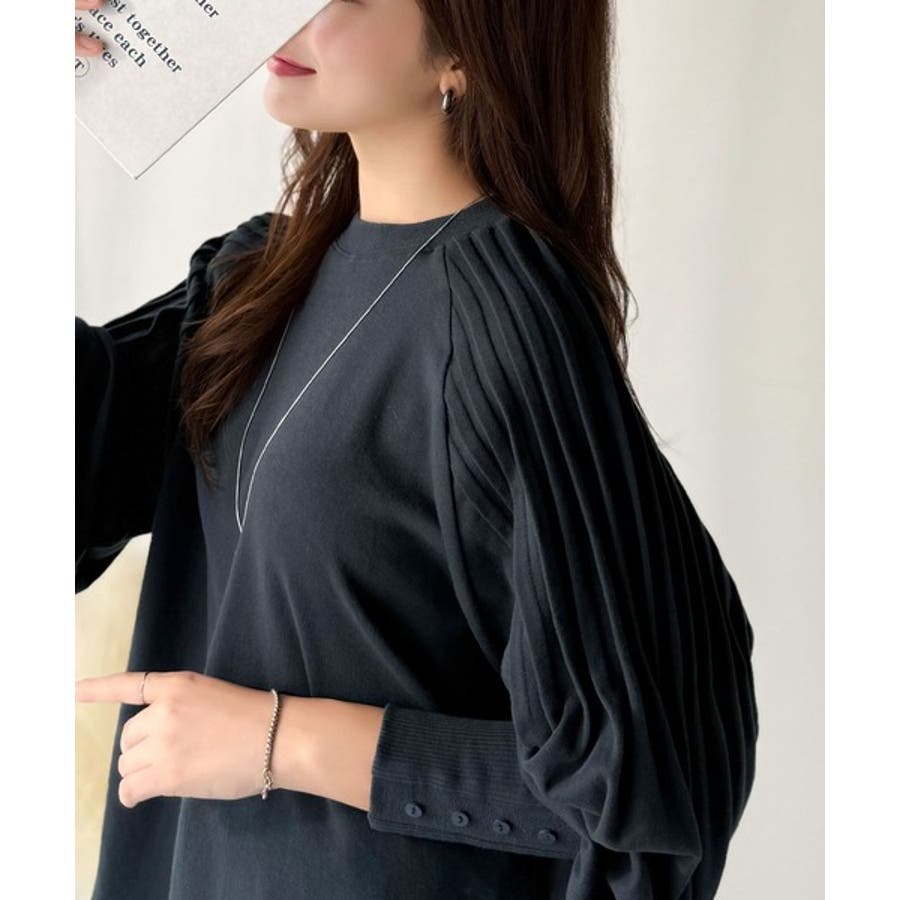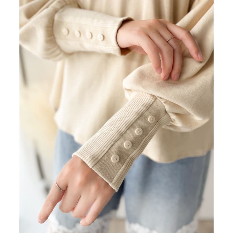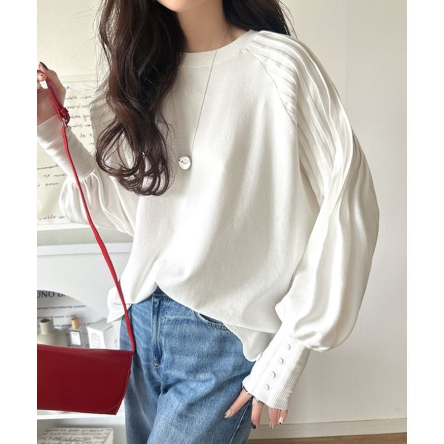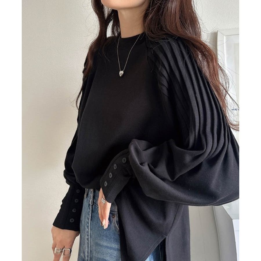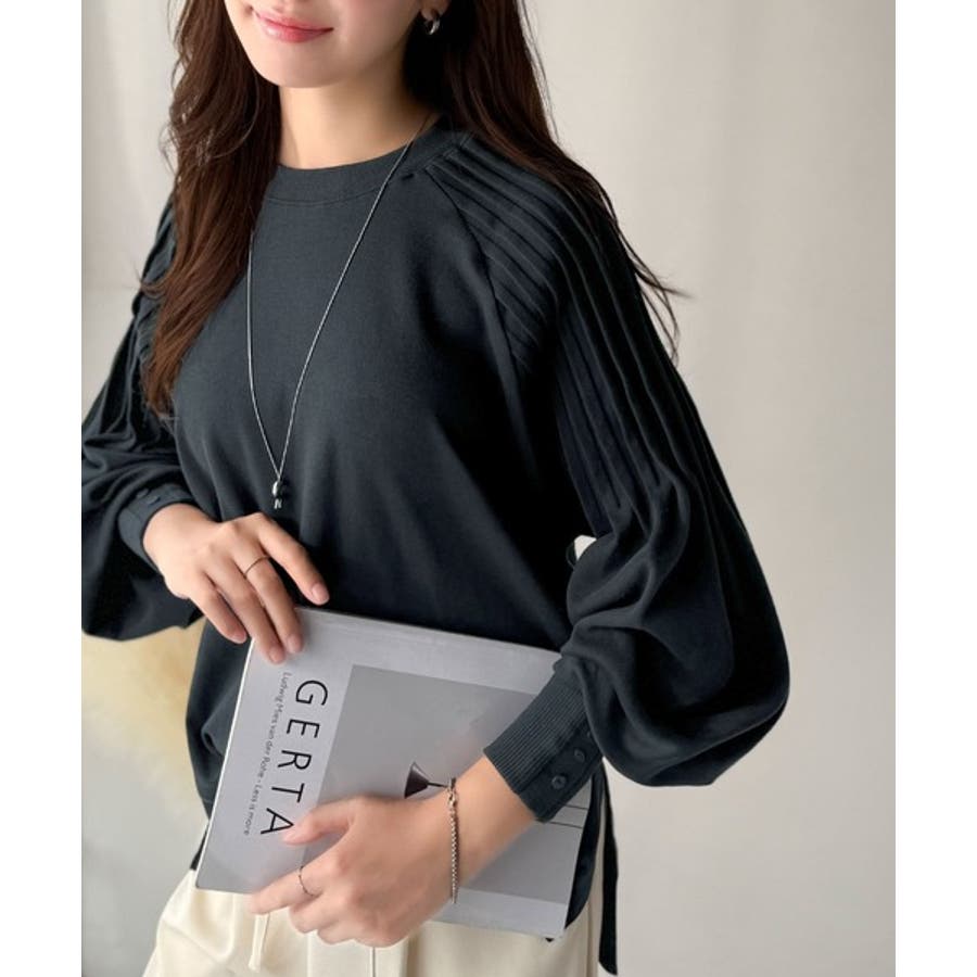 タックの入ったバルーンスリーブが特徴的なロングリブスリーブカットソー。