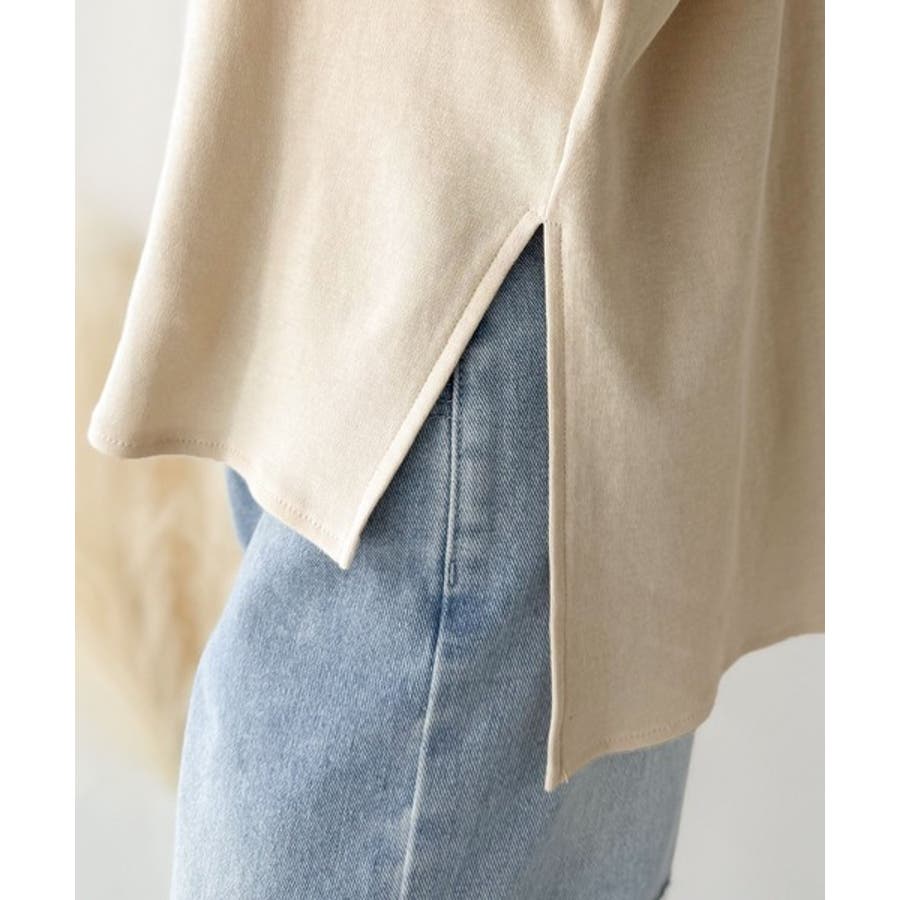 着丈は前後差をつけ、サイドにはスリットも入っているので、