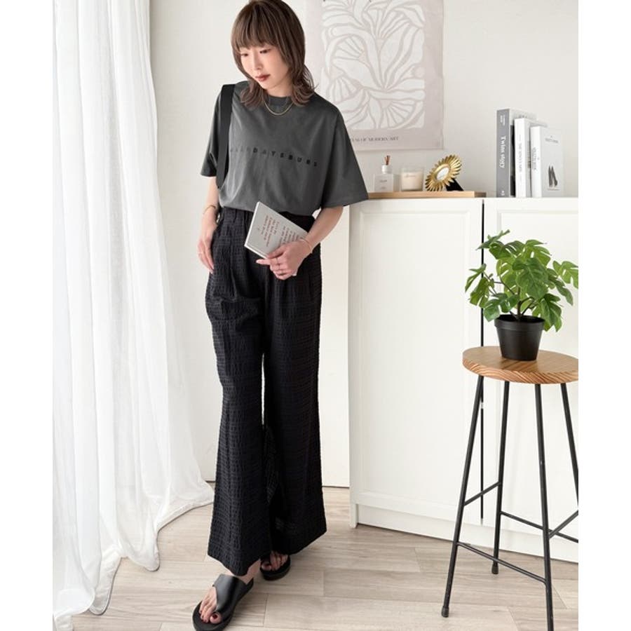 このシルケット風シンプル英字ロゴTシャツは、春夏シーズンのコーディネートに大活躍♪