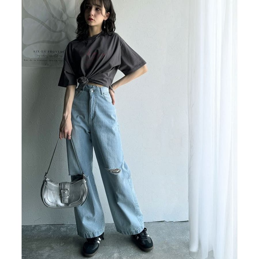 カジュアルコーデを楽しむなら、カーブデニムやフレアパンツを合わせるのがおすすめ!