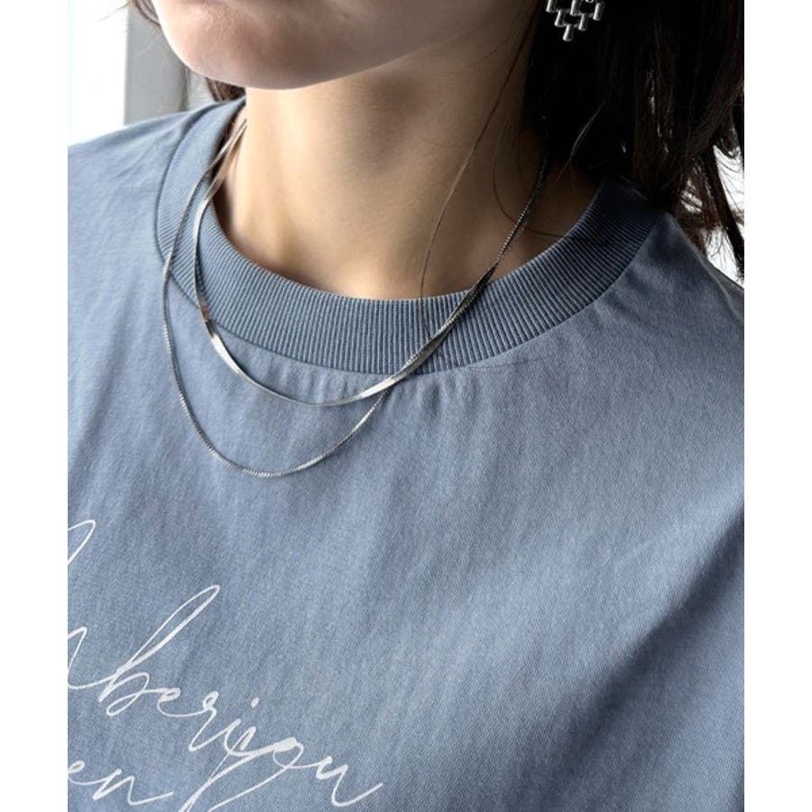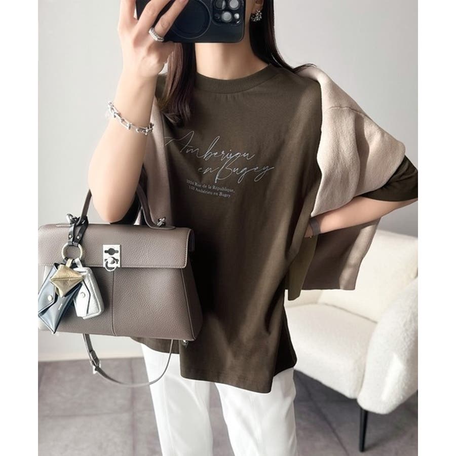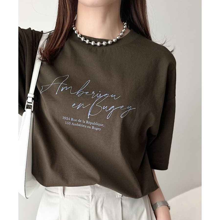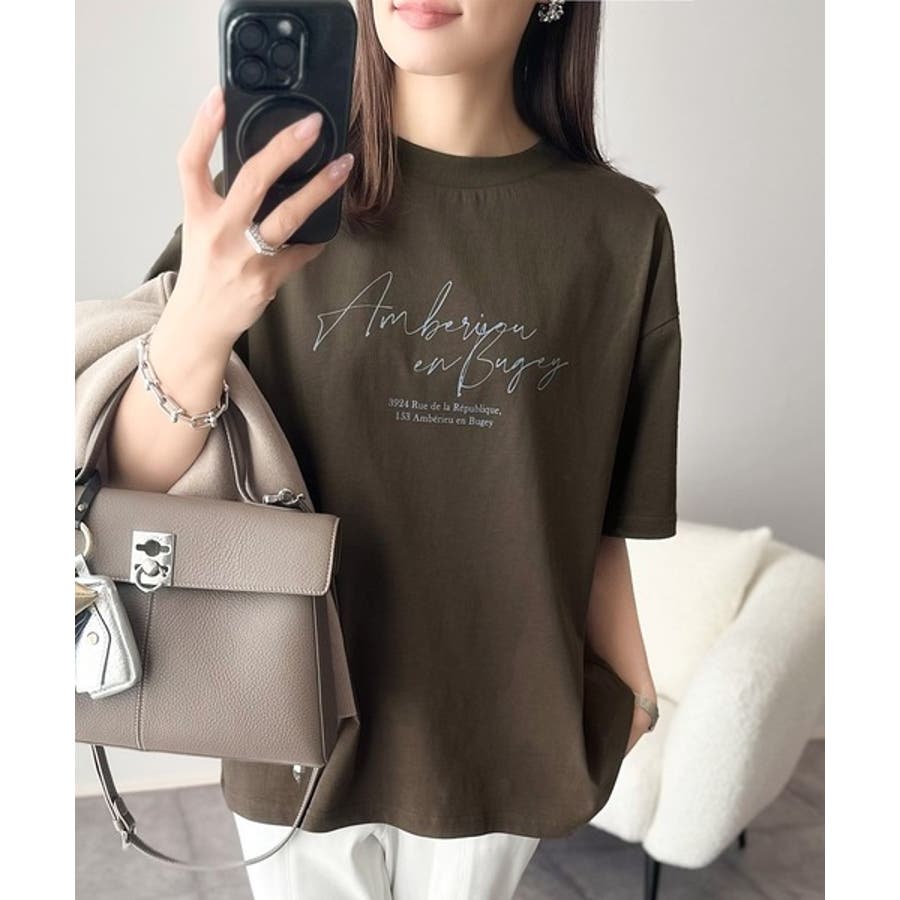 大人カジュアルに映える。綿100%胸元筆記体ロゴなめらかシルケット風Tシャツ(半…