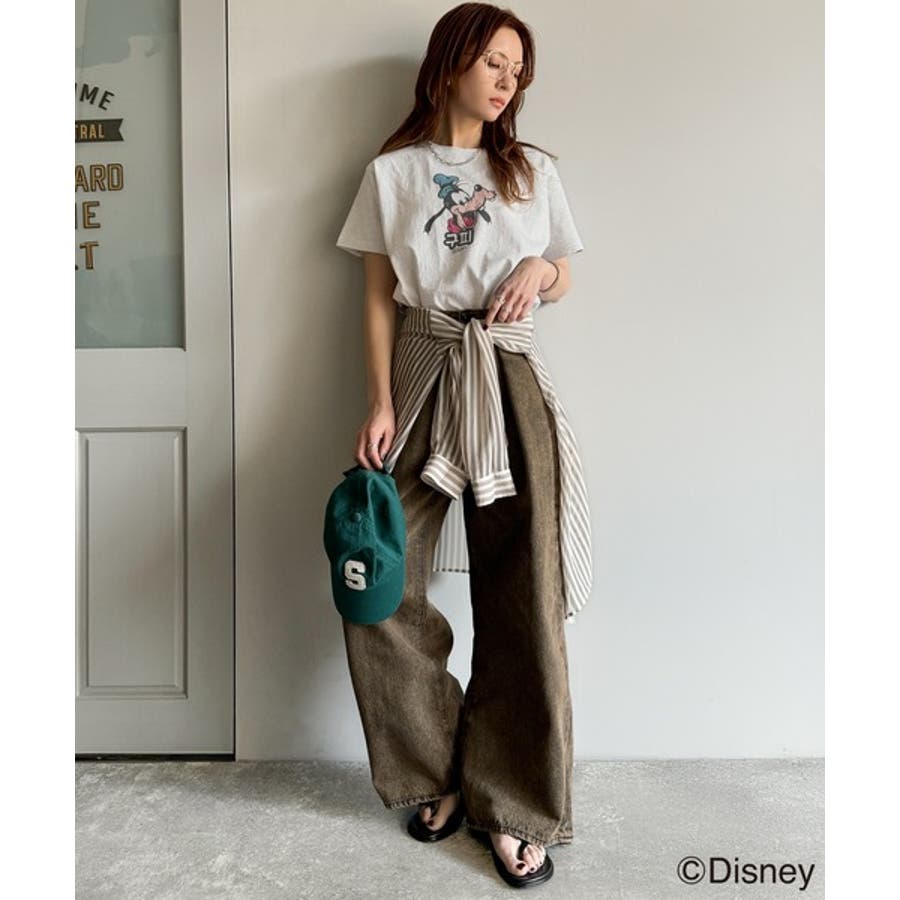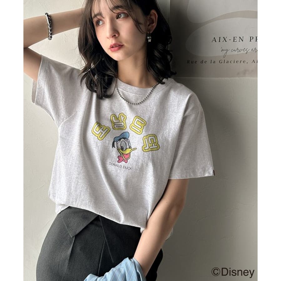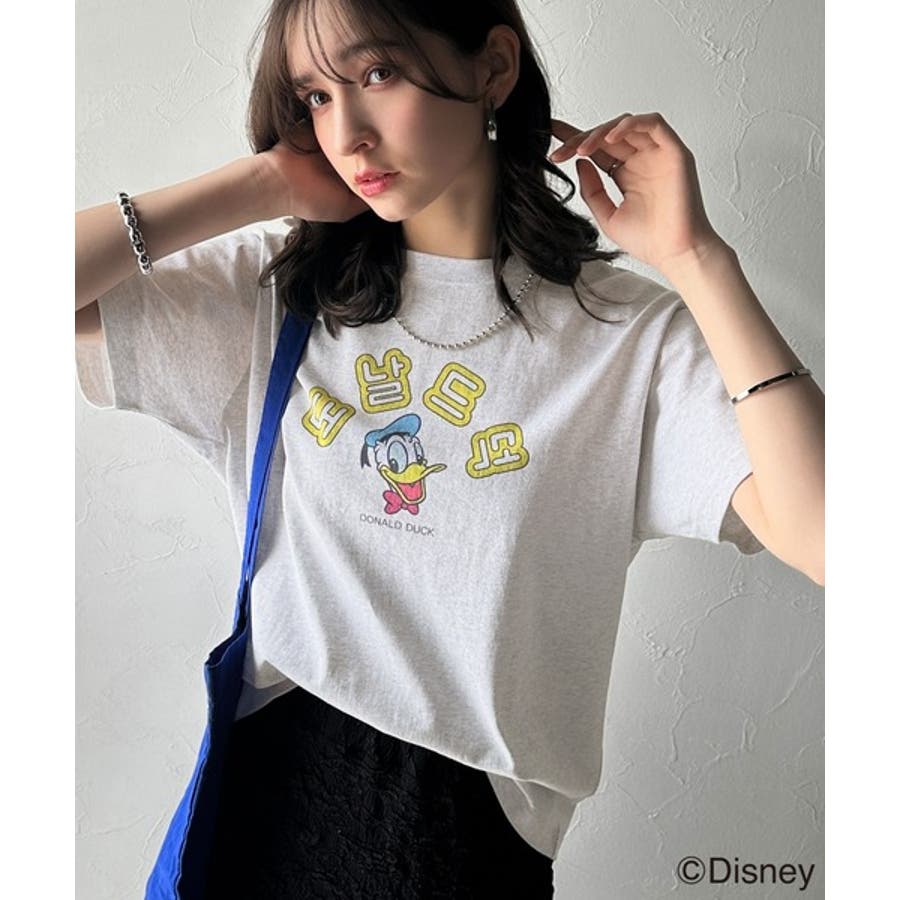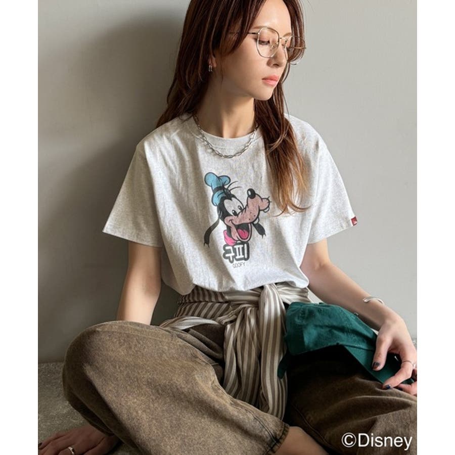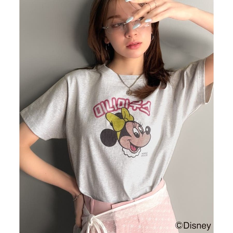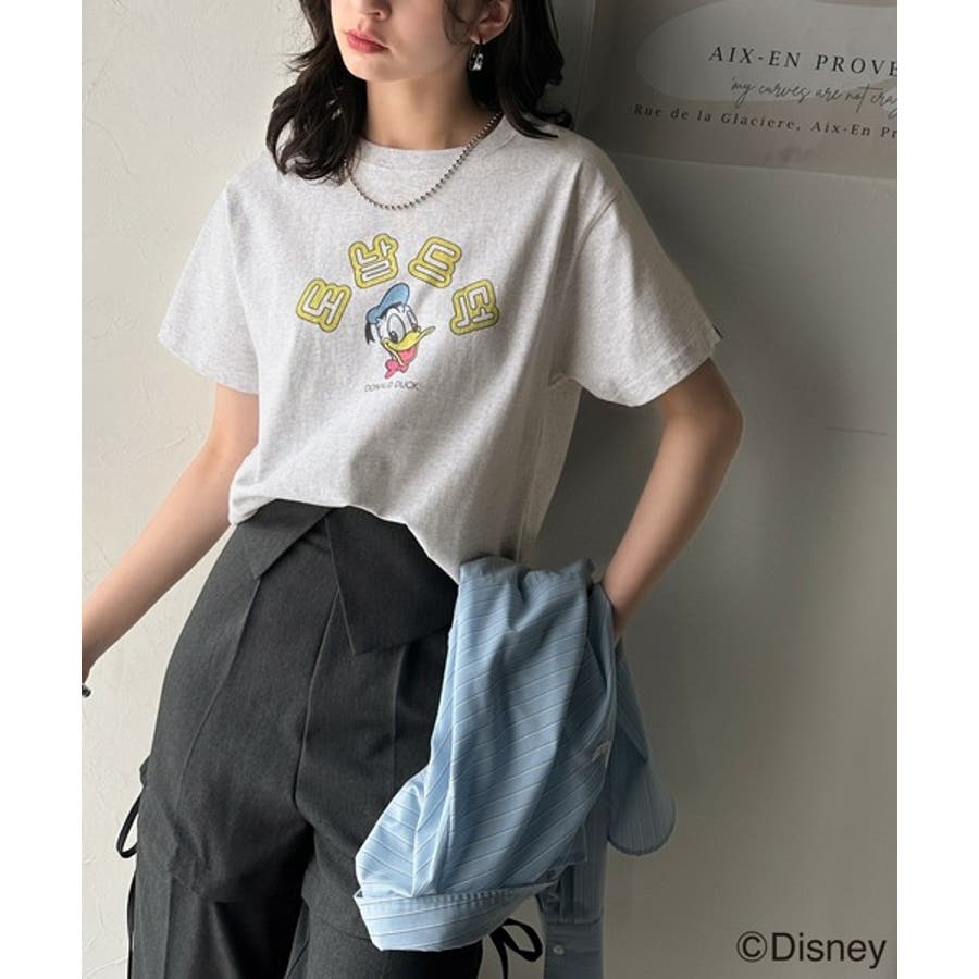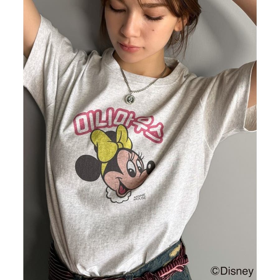 カジュアルから甘めまで、着回し自在の万能ディズニーキャラクタープリントTシャツ。