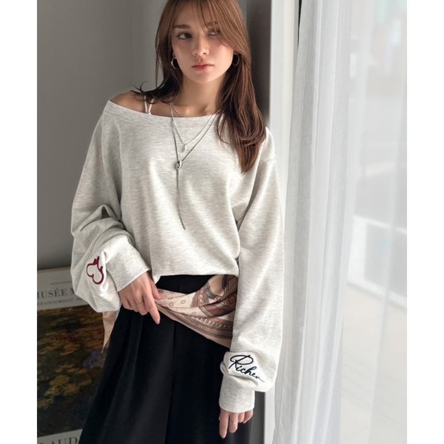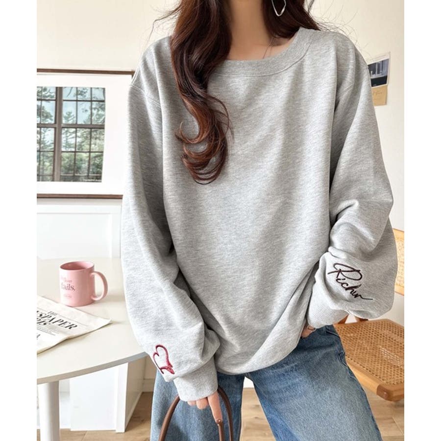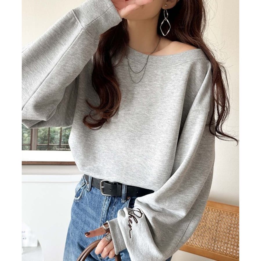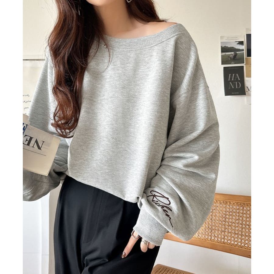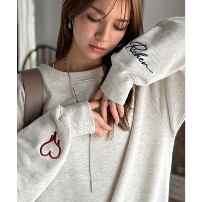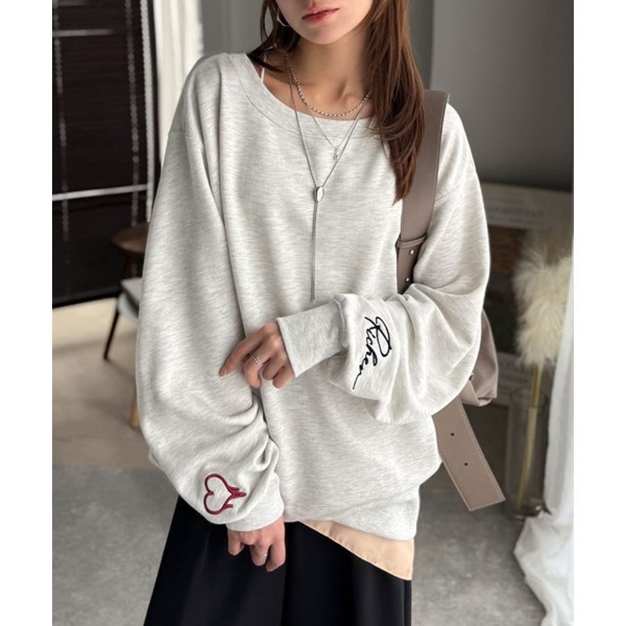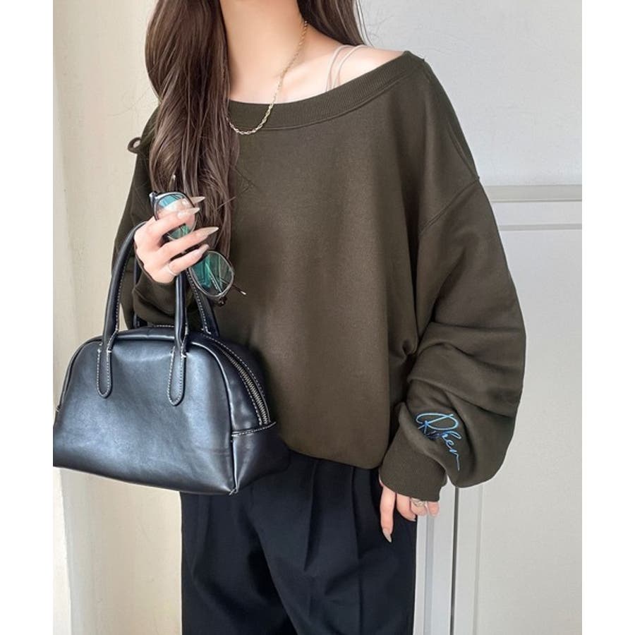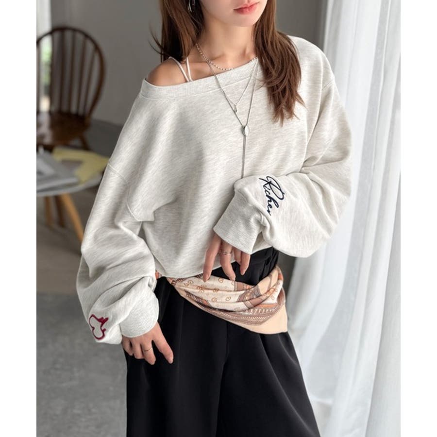 こなれた主役級の存在感♪袖ハート&手書き風ロゴ刺繍裏毛オフショルオーバーサイズス…