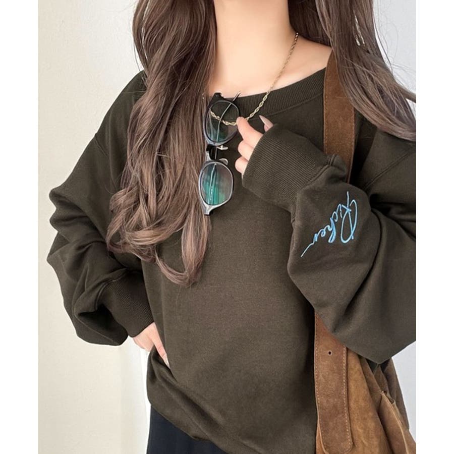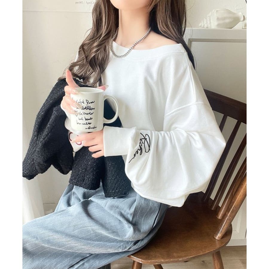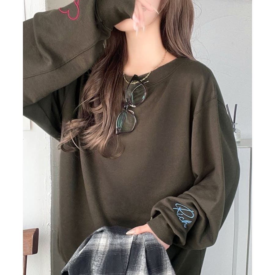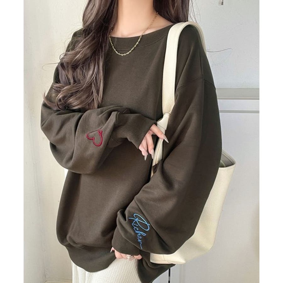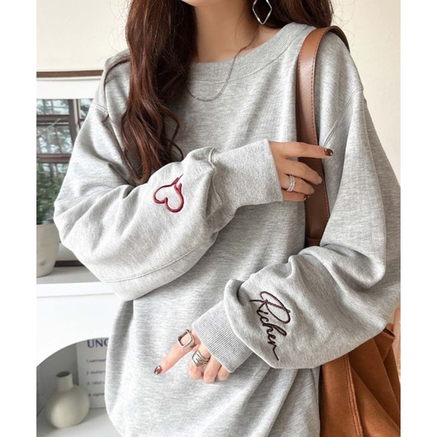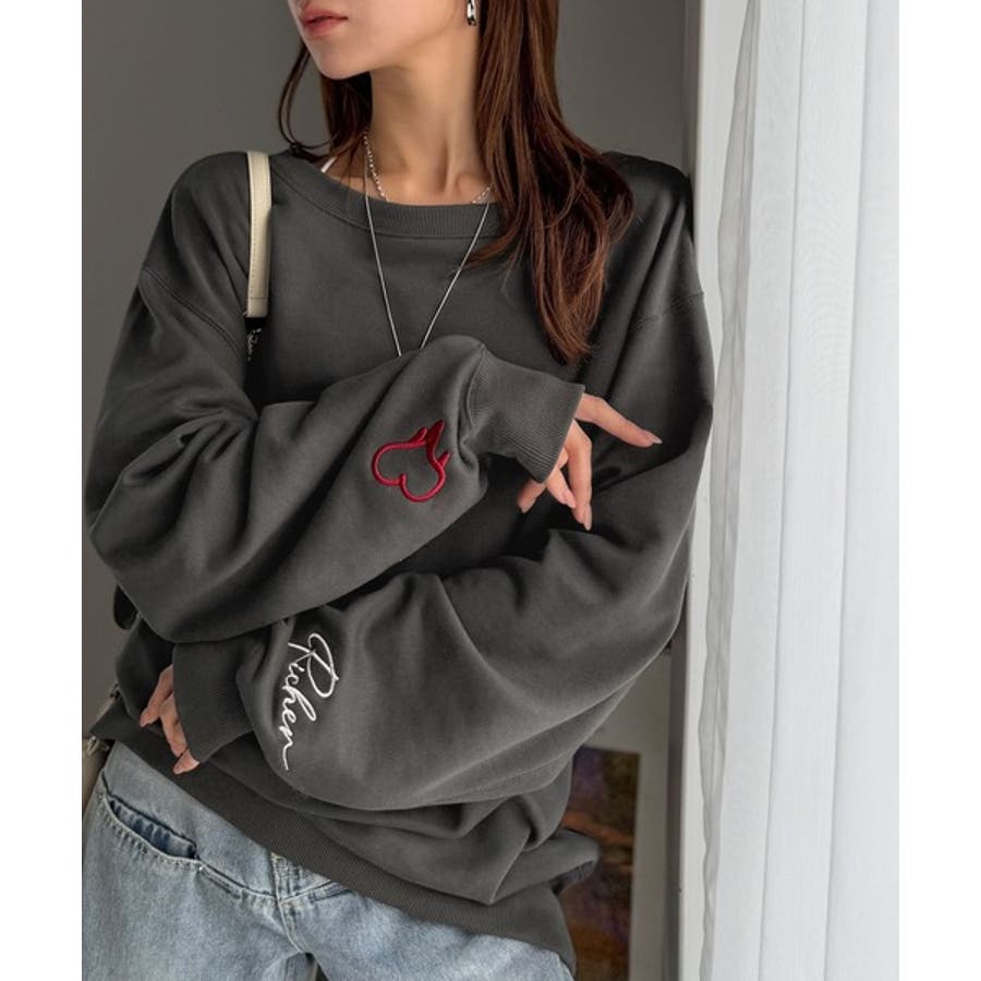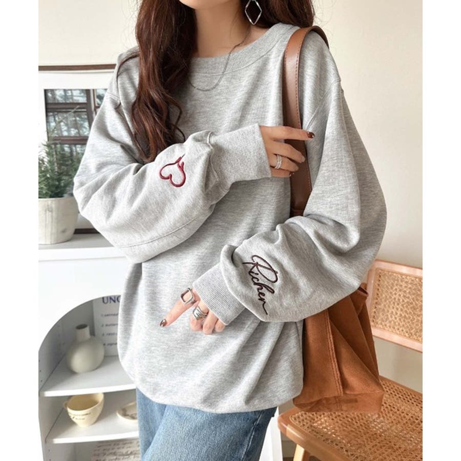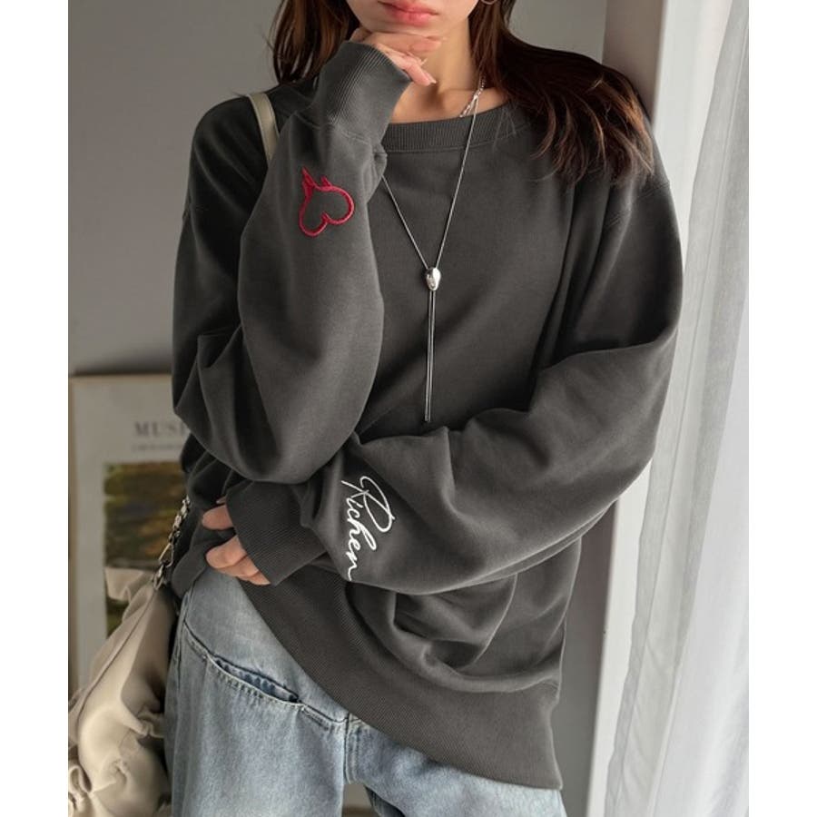 こなれた主役級の存在感♪袖ハート&手書き風ロゴ刺繍裏毛オフショルオーバーサイズス…