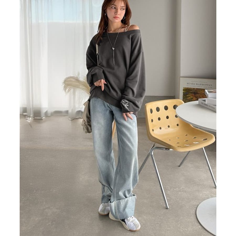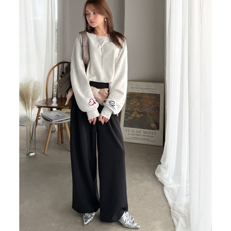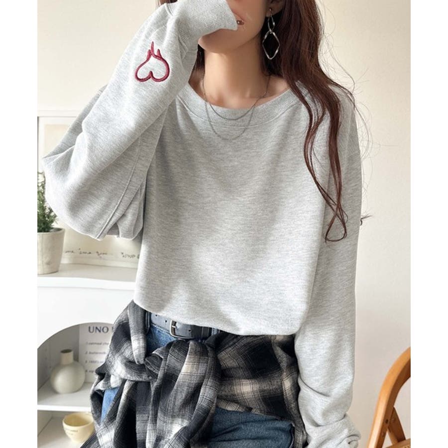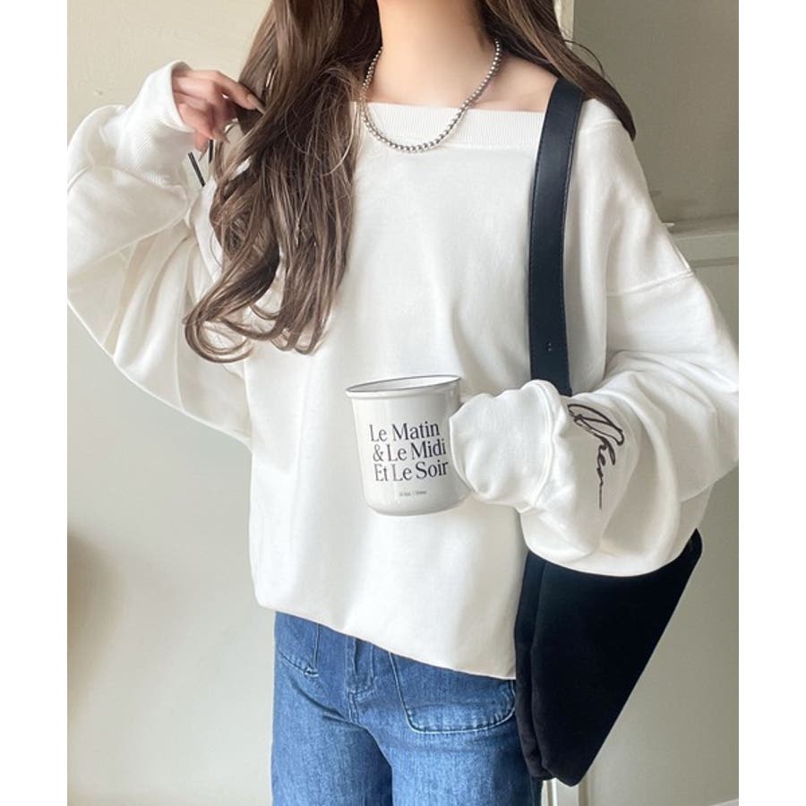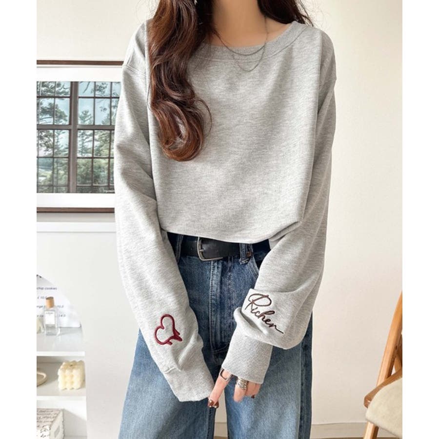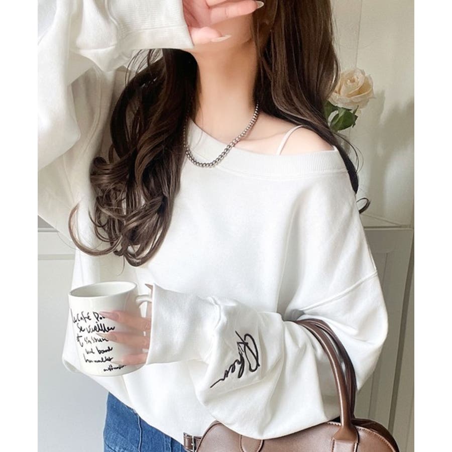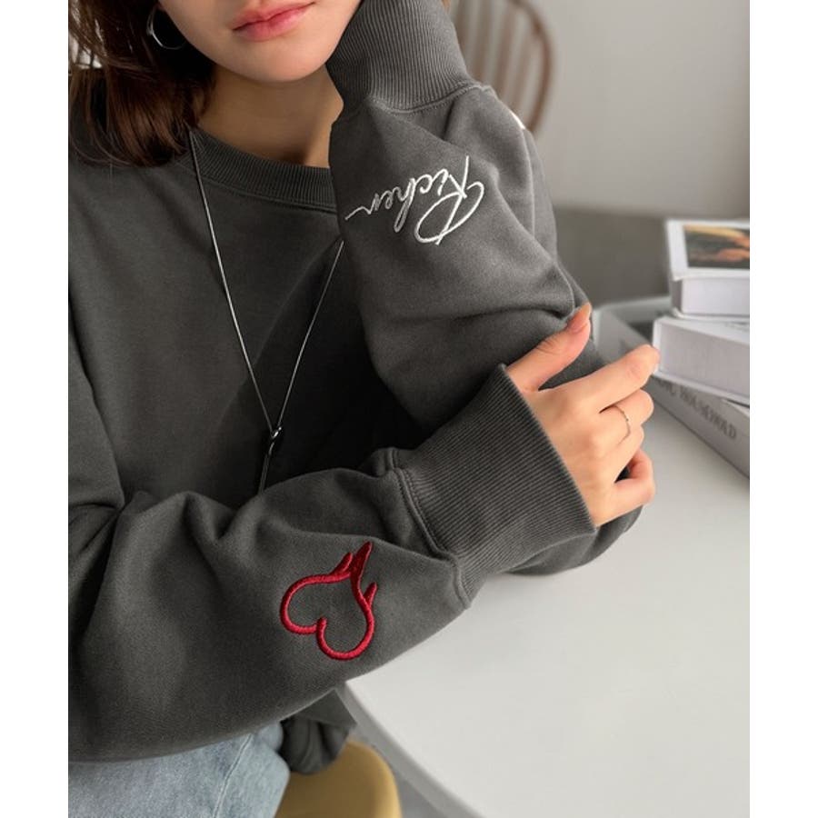 こなれた主役級の存在感♪袖ハート&手書き風ロゴ刺繍裏毛オフショルオーバーサイズス…