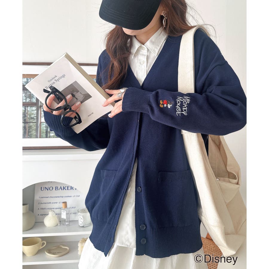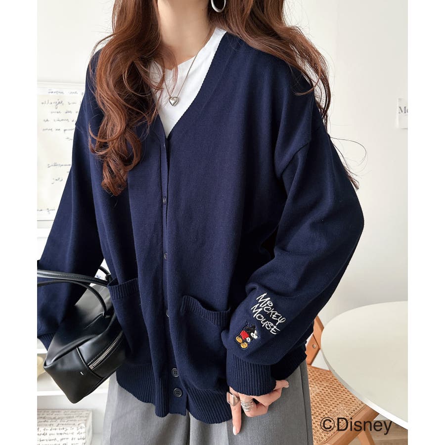 数量限定!リンクコーデも楽しめる♪綿100%「ディズニー」袖刺繍カーディガン