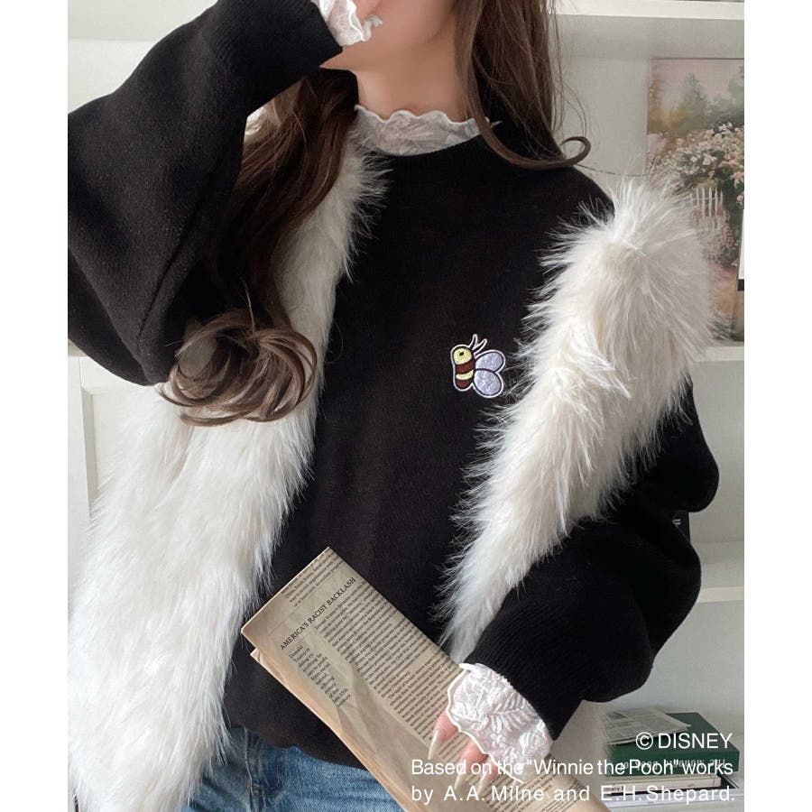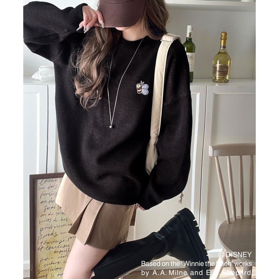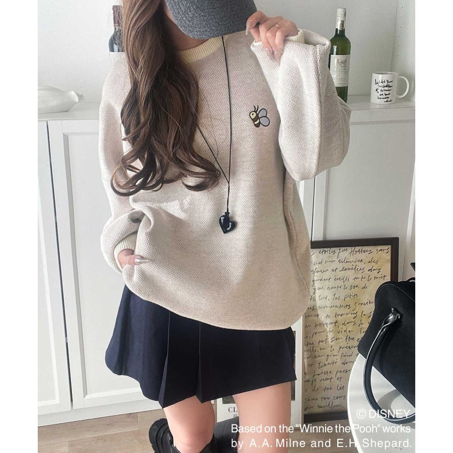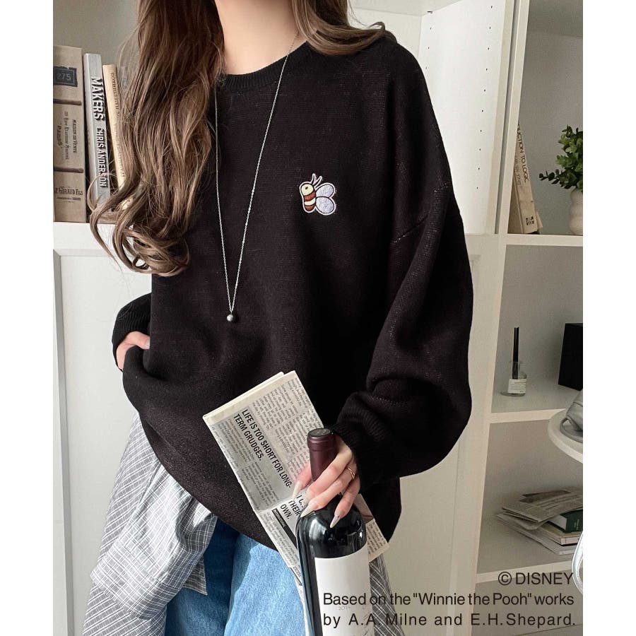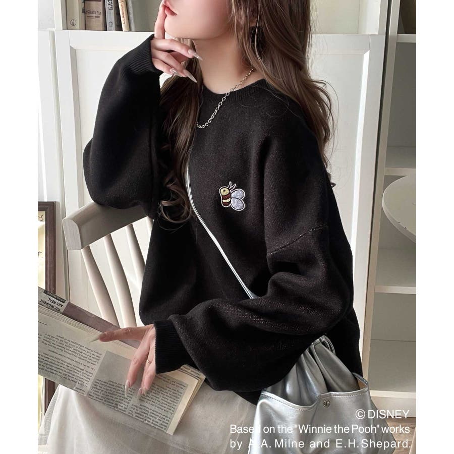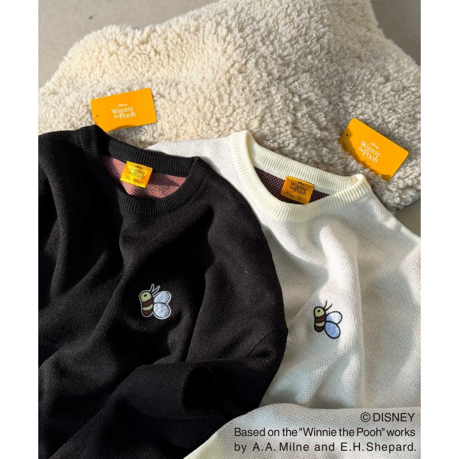 フロントの小さなハチ刺繍ワッペンと、バックの大きな「プー」デザインが後ろ姿まで存在感を演出♪