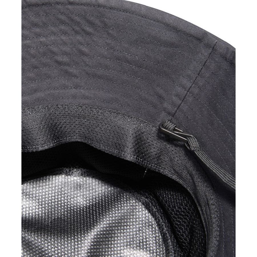 帽子のつばは上げ下げ可能で、顔まわりをしっかりカバーしつつ、