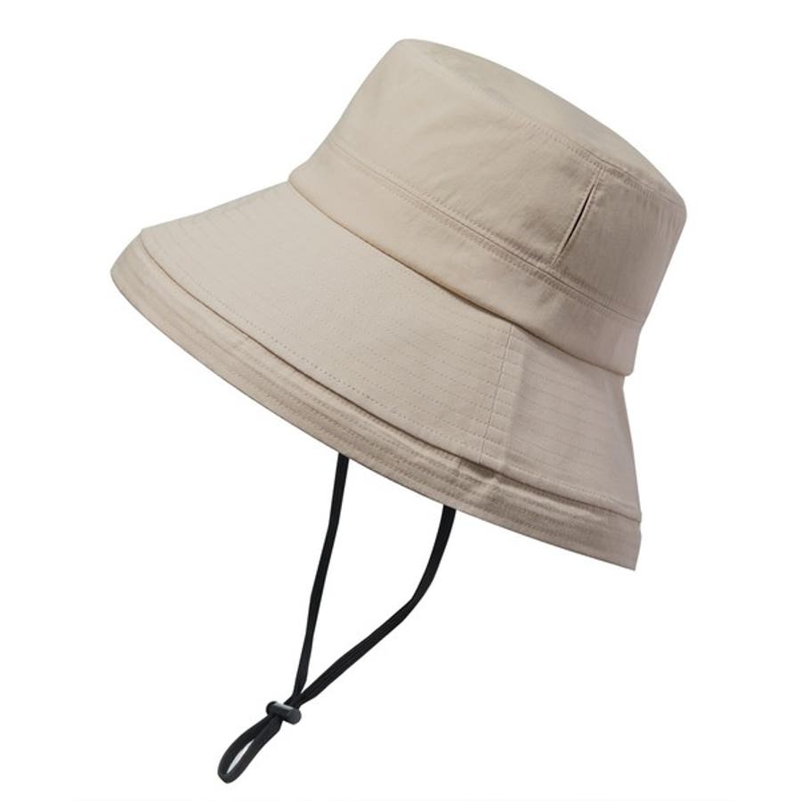 UVカットによる日差しからしっかり肌を守りつつ、取り外せるあご紐付きで安定感もバッチリ。