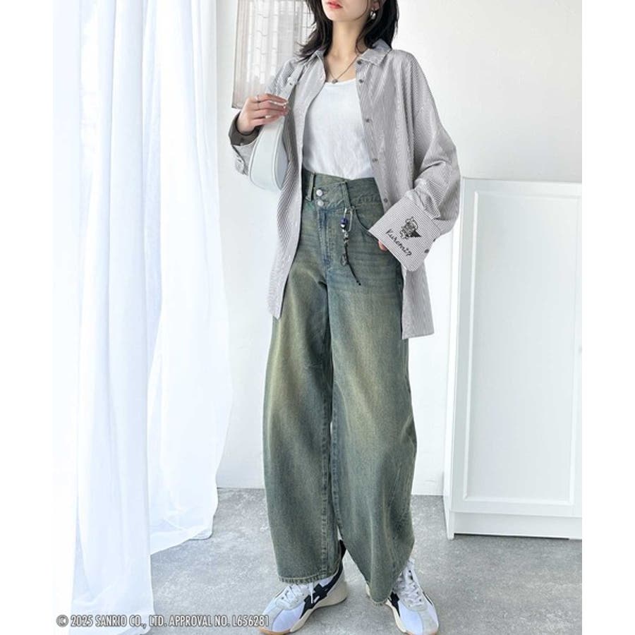 ゆったりシルエットのシャツは、前を開けてカーディガン感覚で羽織るのもオススメ。