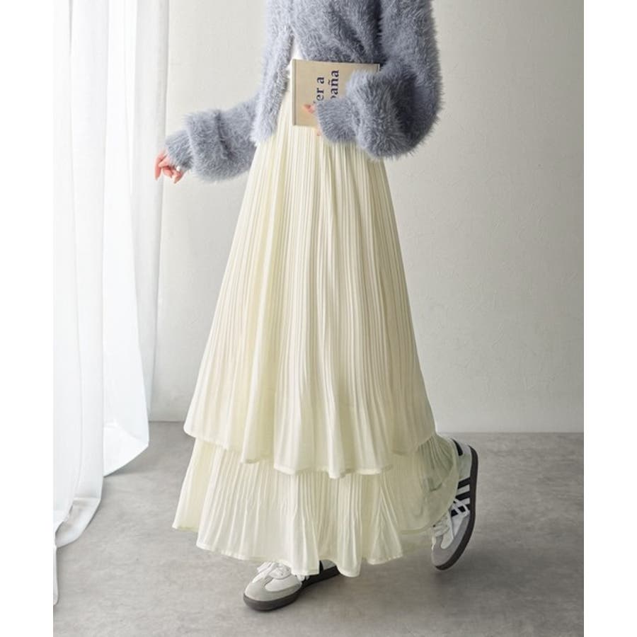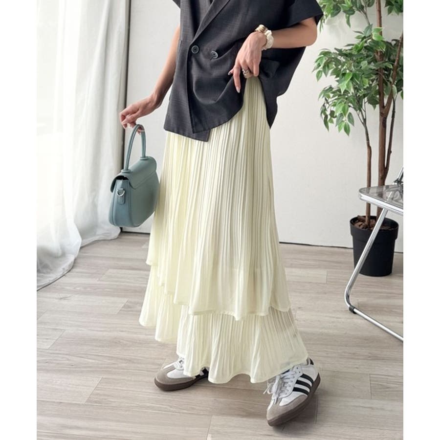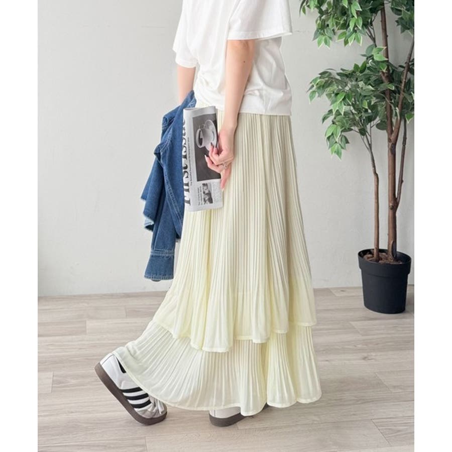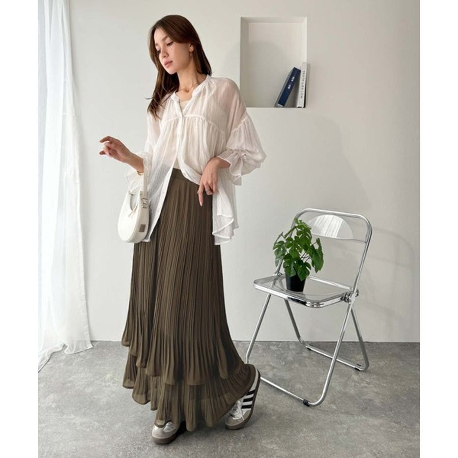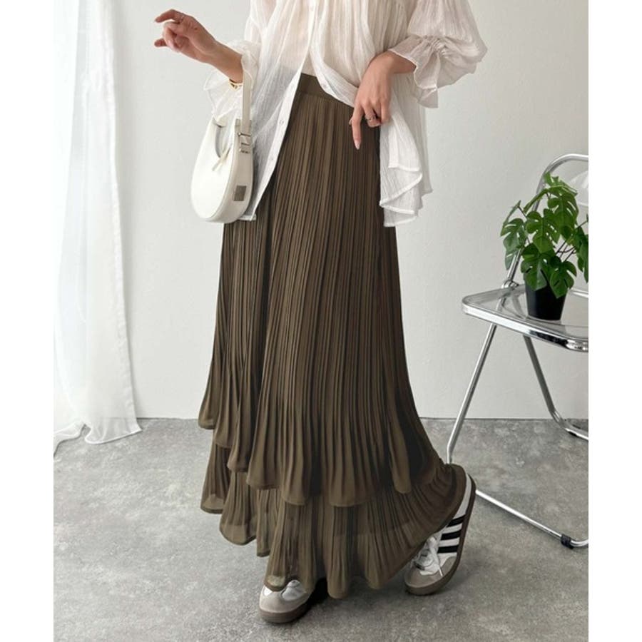 歩くたびにふわっと揺れるシアーな質感が目を惹く、プリーツシアーティアードスカート。