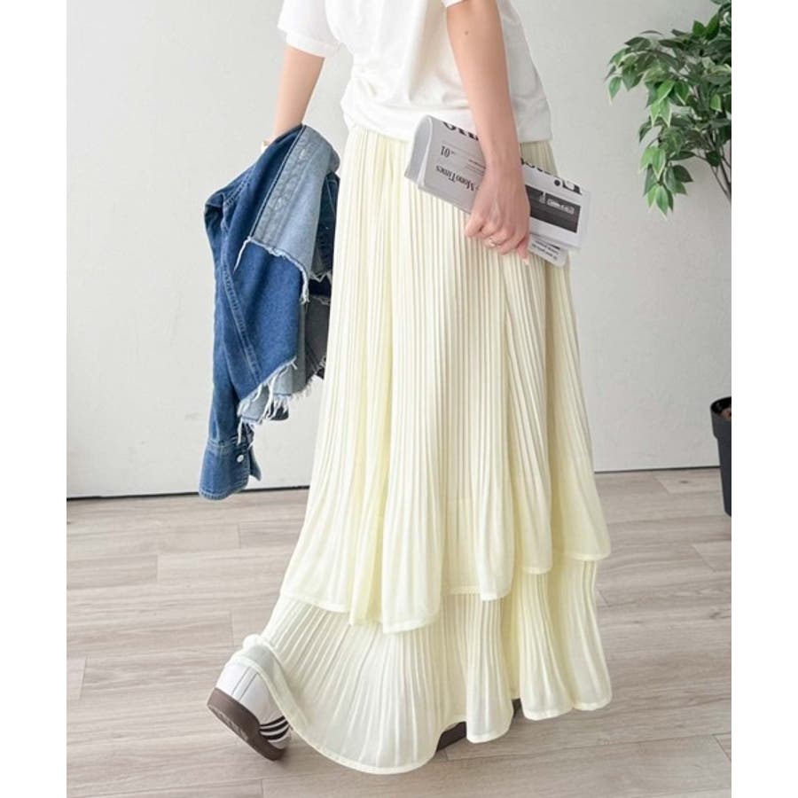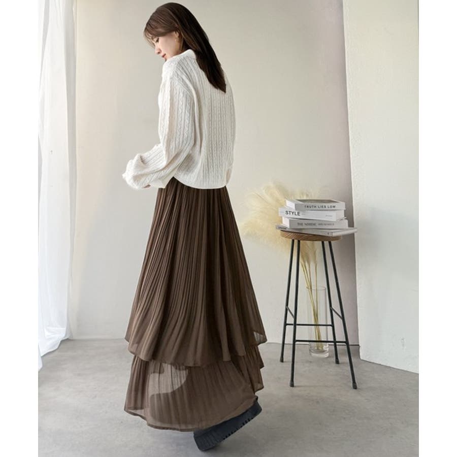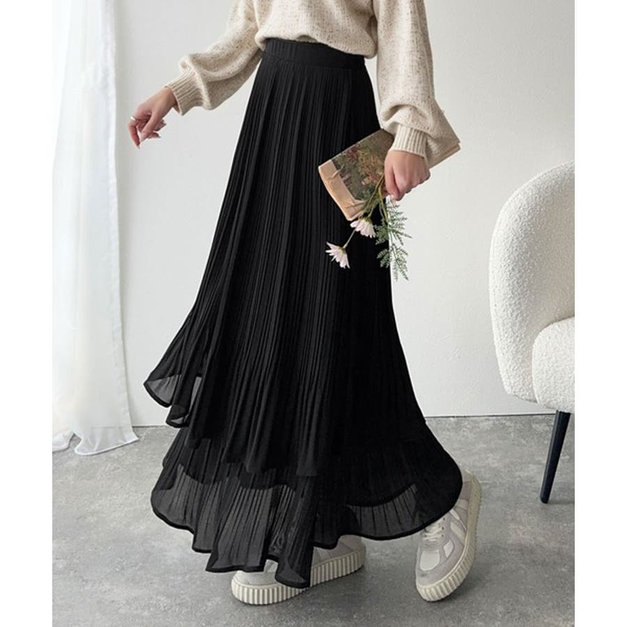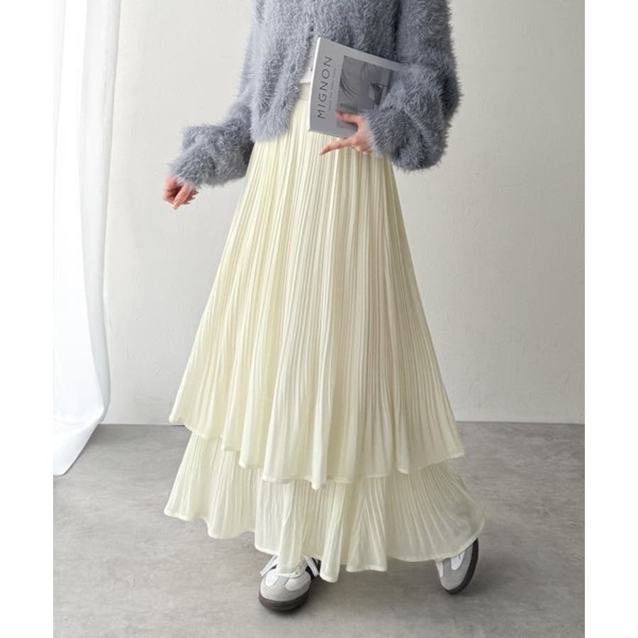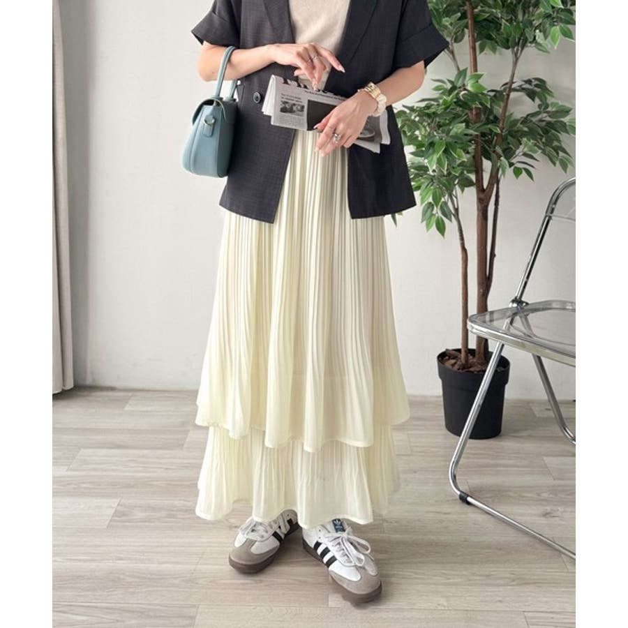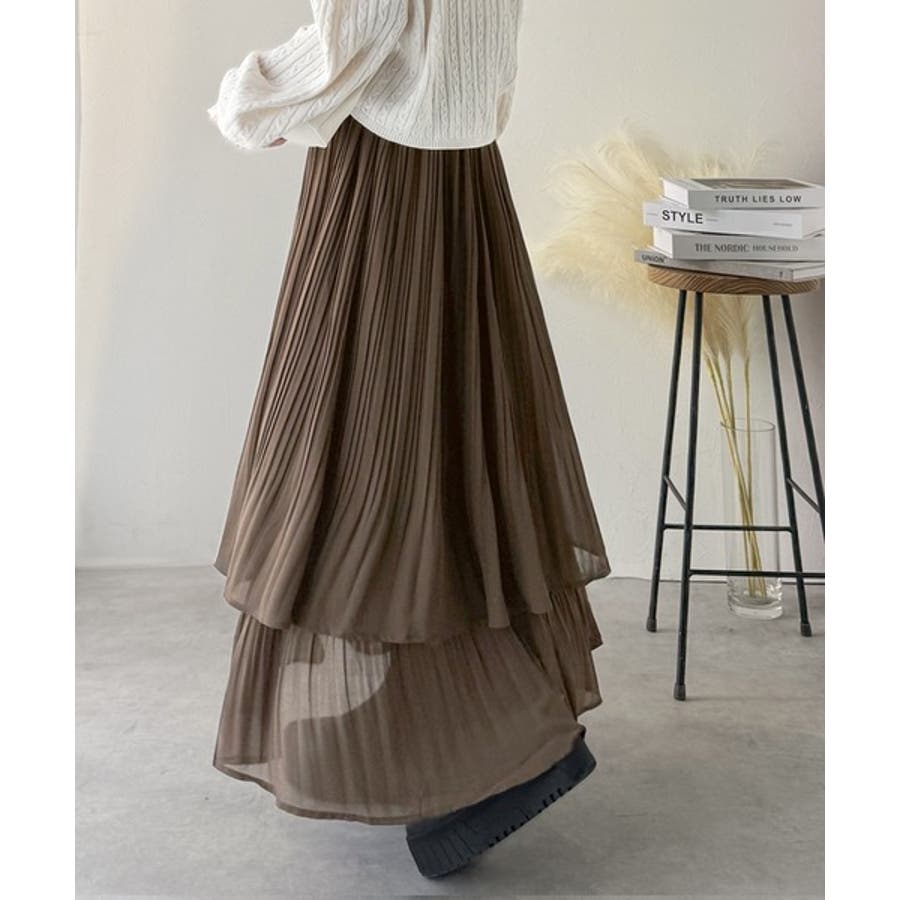 歩くたびにふわっと揺れるシアーな質感が目を惹く、プリーツシアーティアードスカート。
