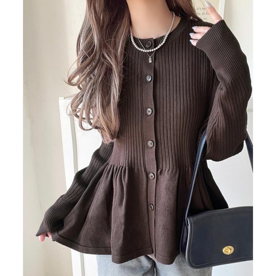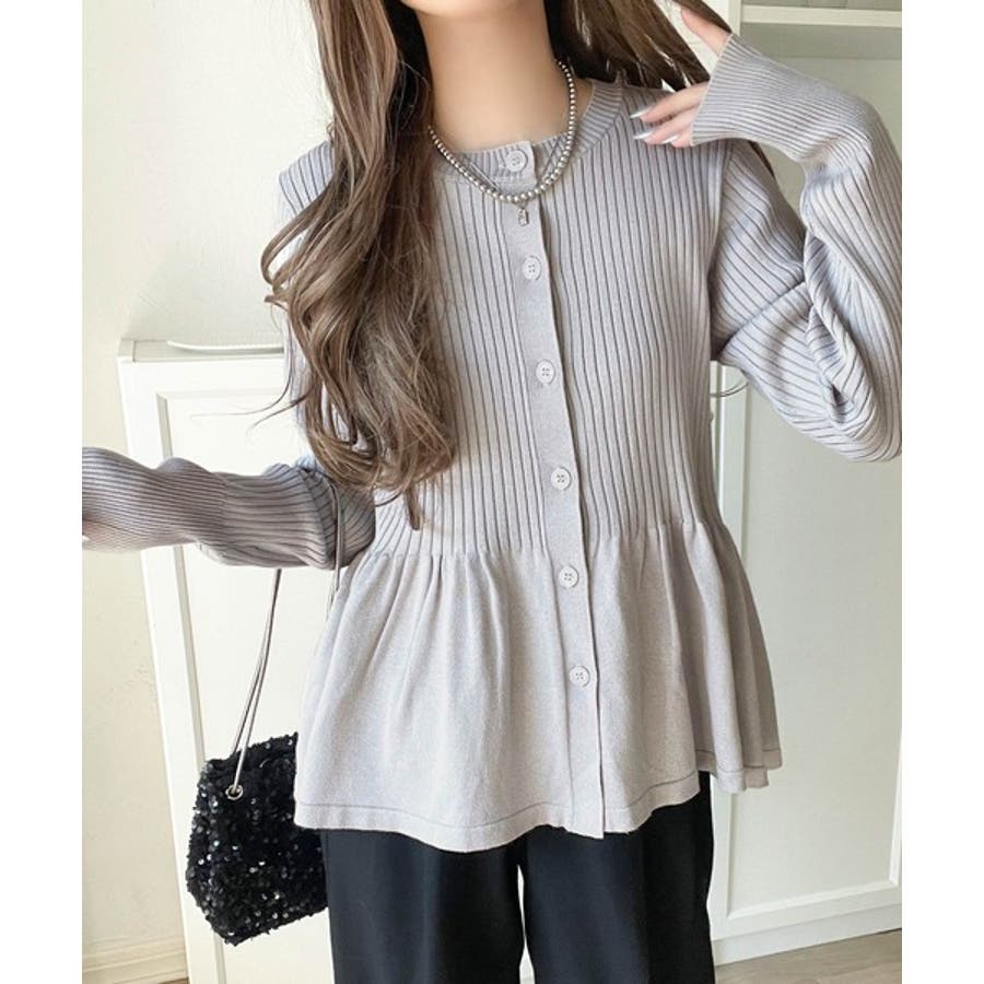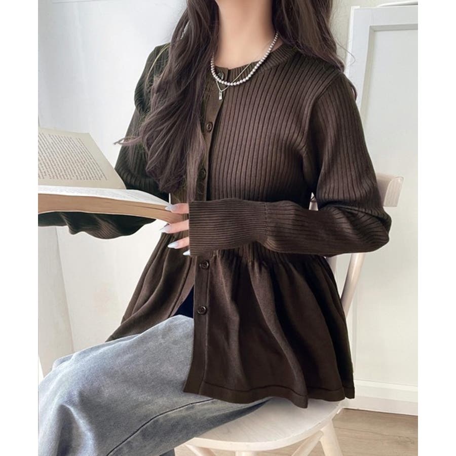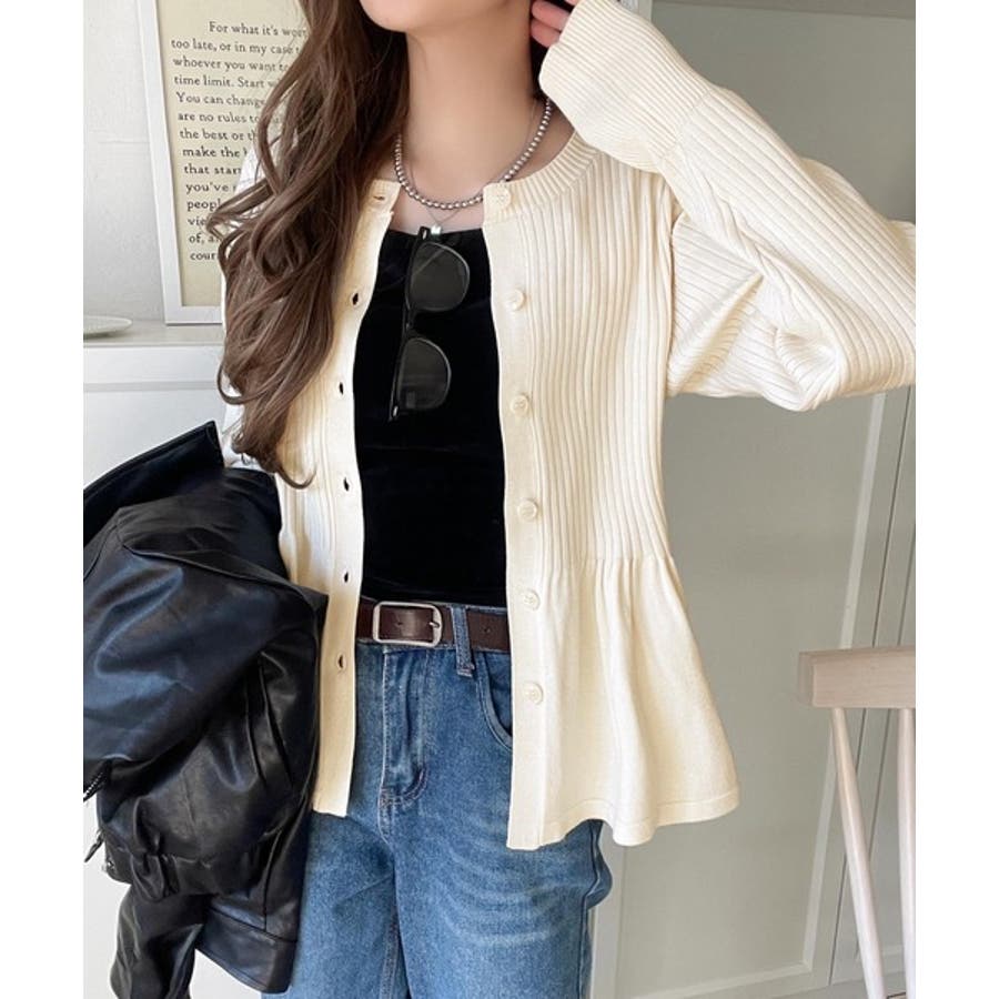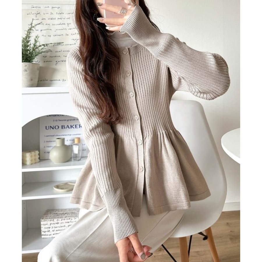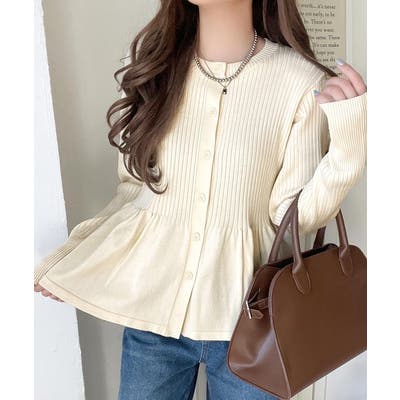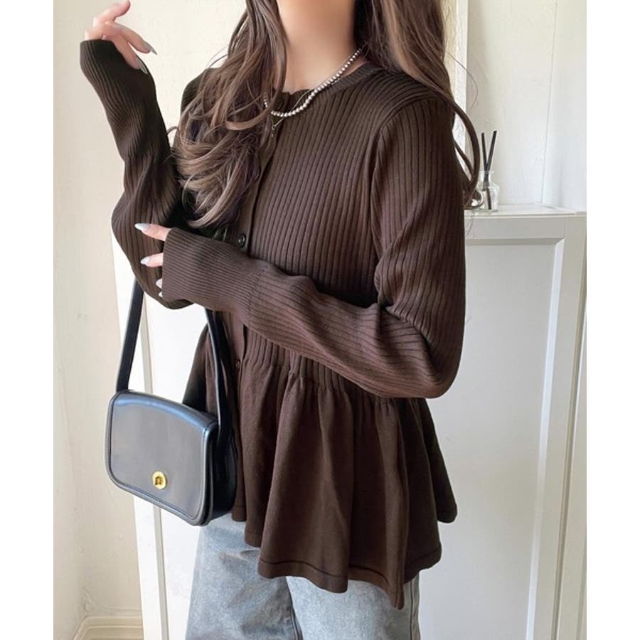 "メリハリ"シルエットで即きれい見え◎リブフリルペプラムカーデトップス(長袖)