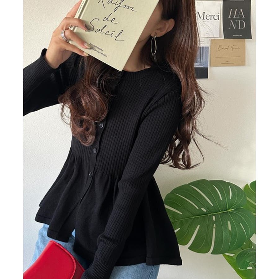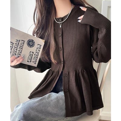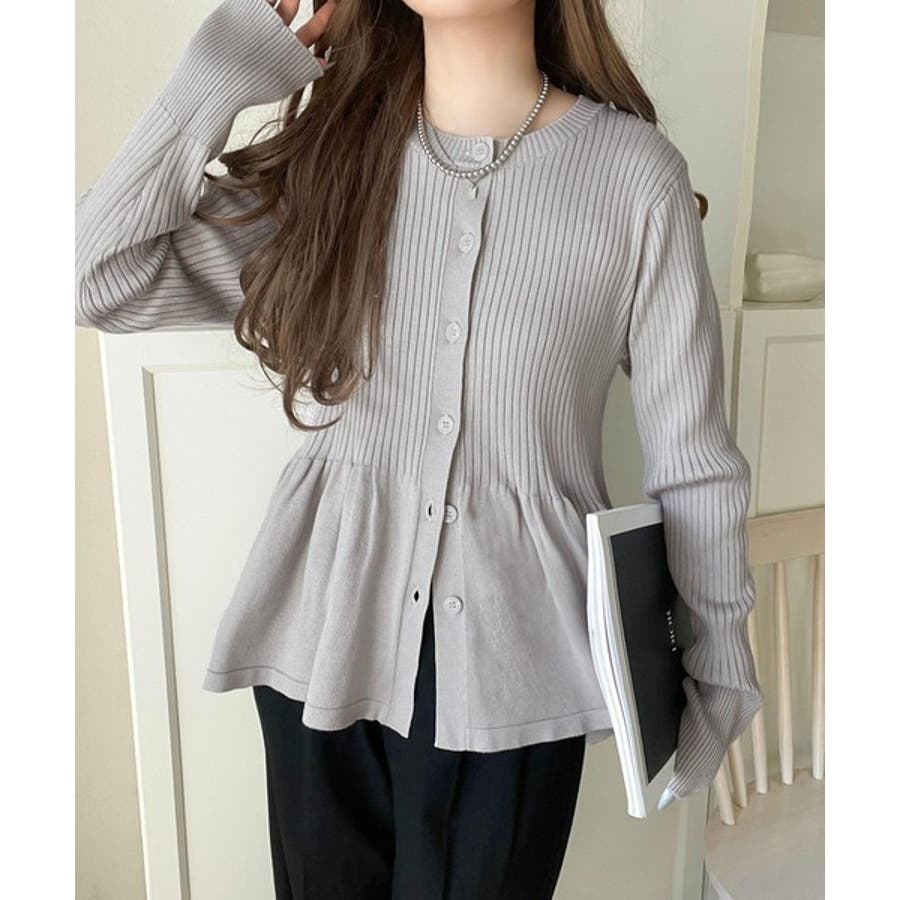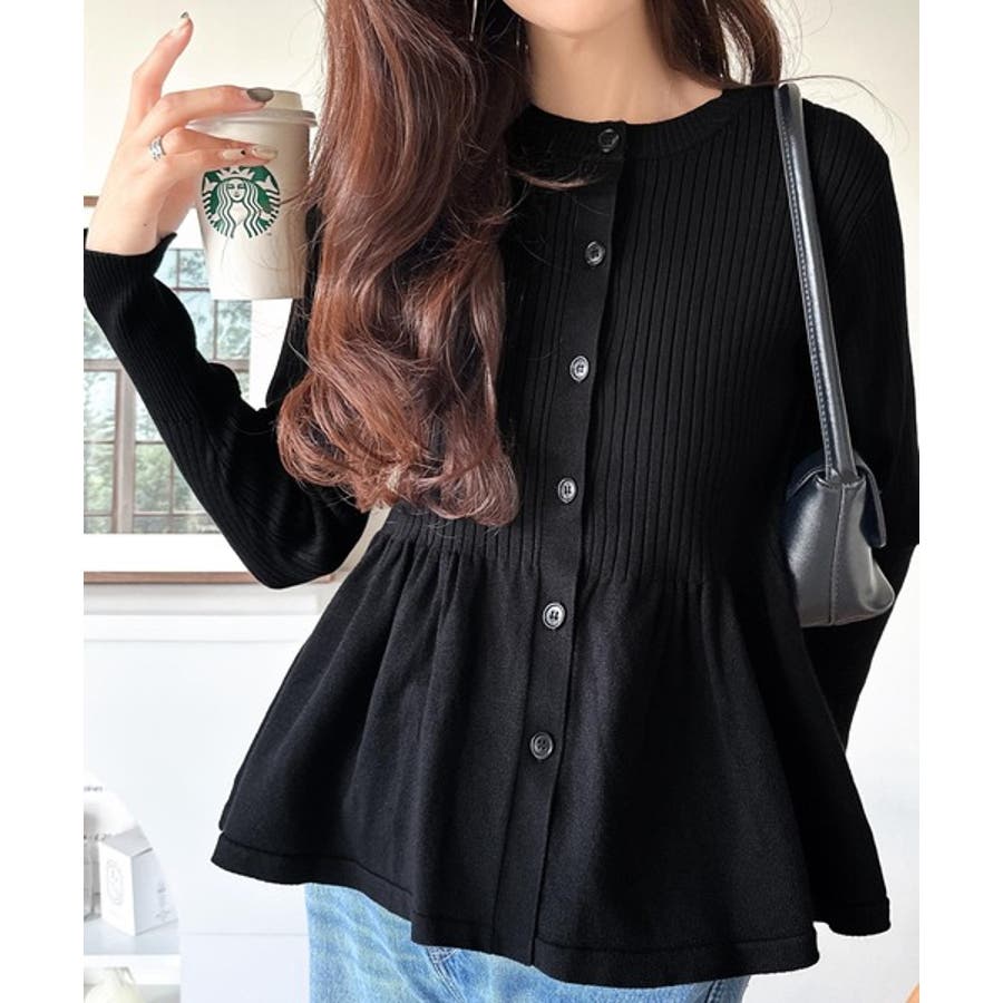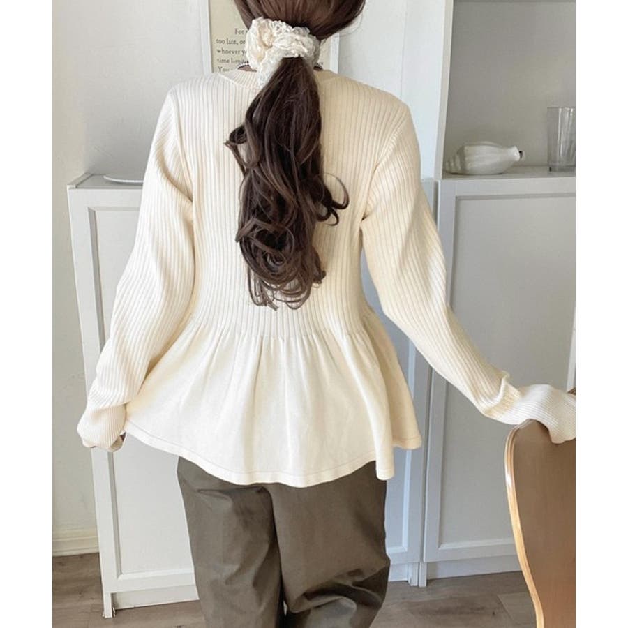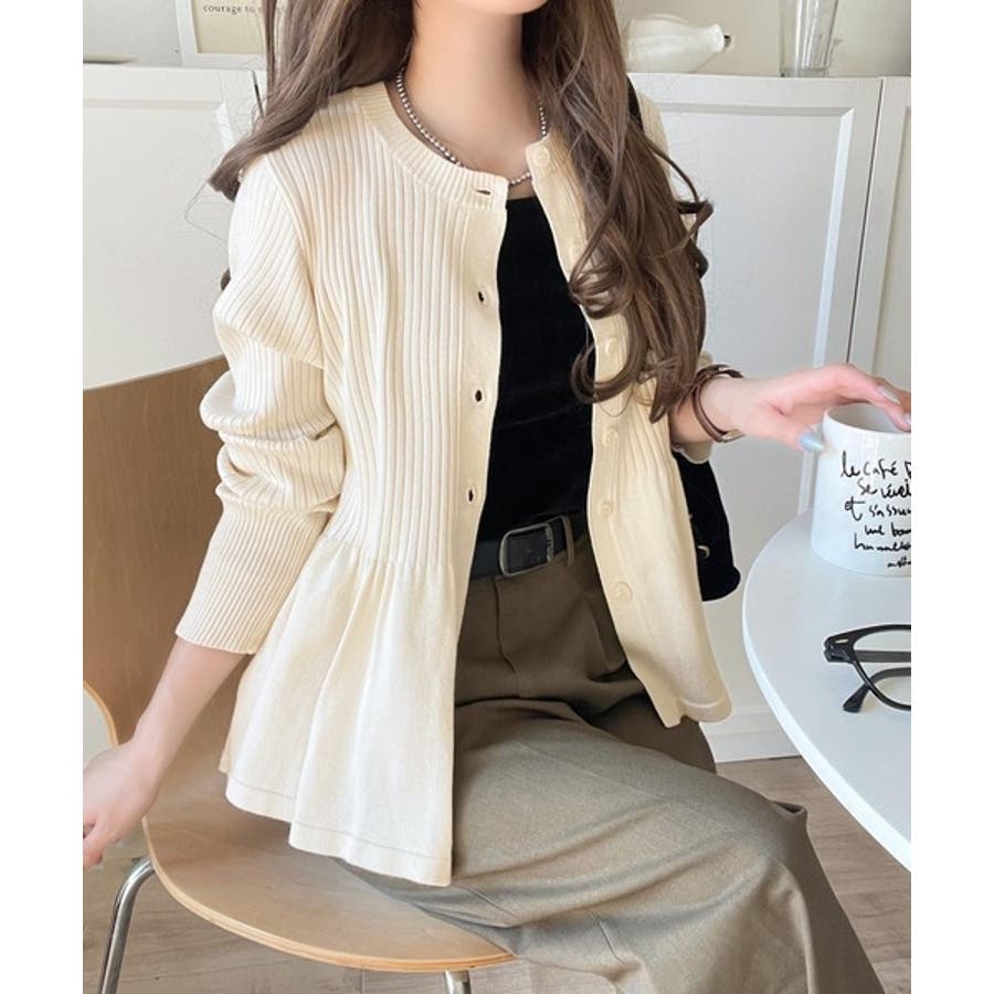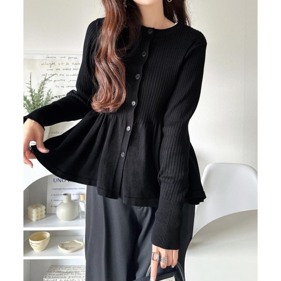 "メリハリ"シルエットで即きれい見え◎リブフリルペプラムカーデトップス(長袖)